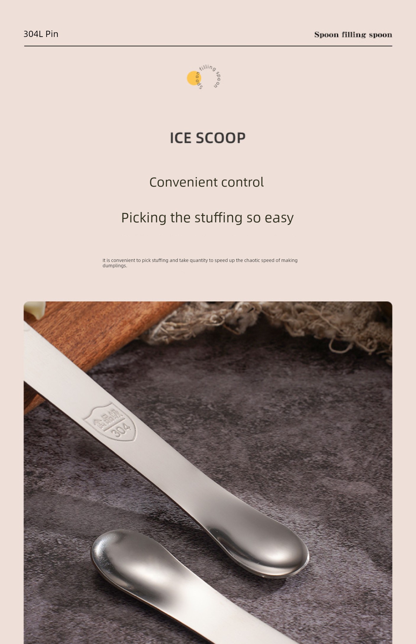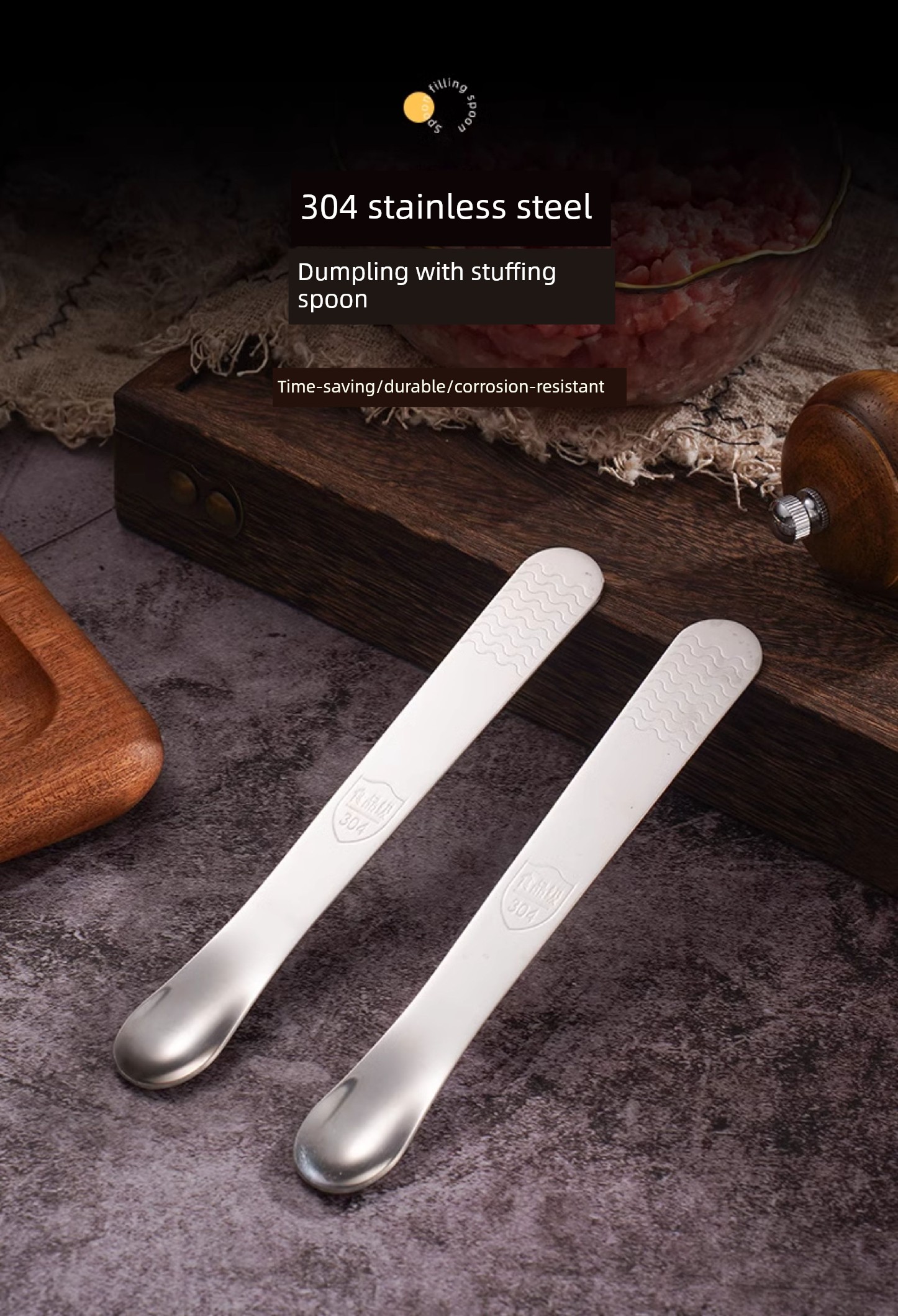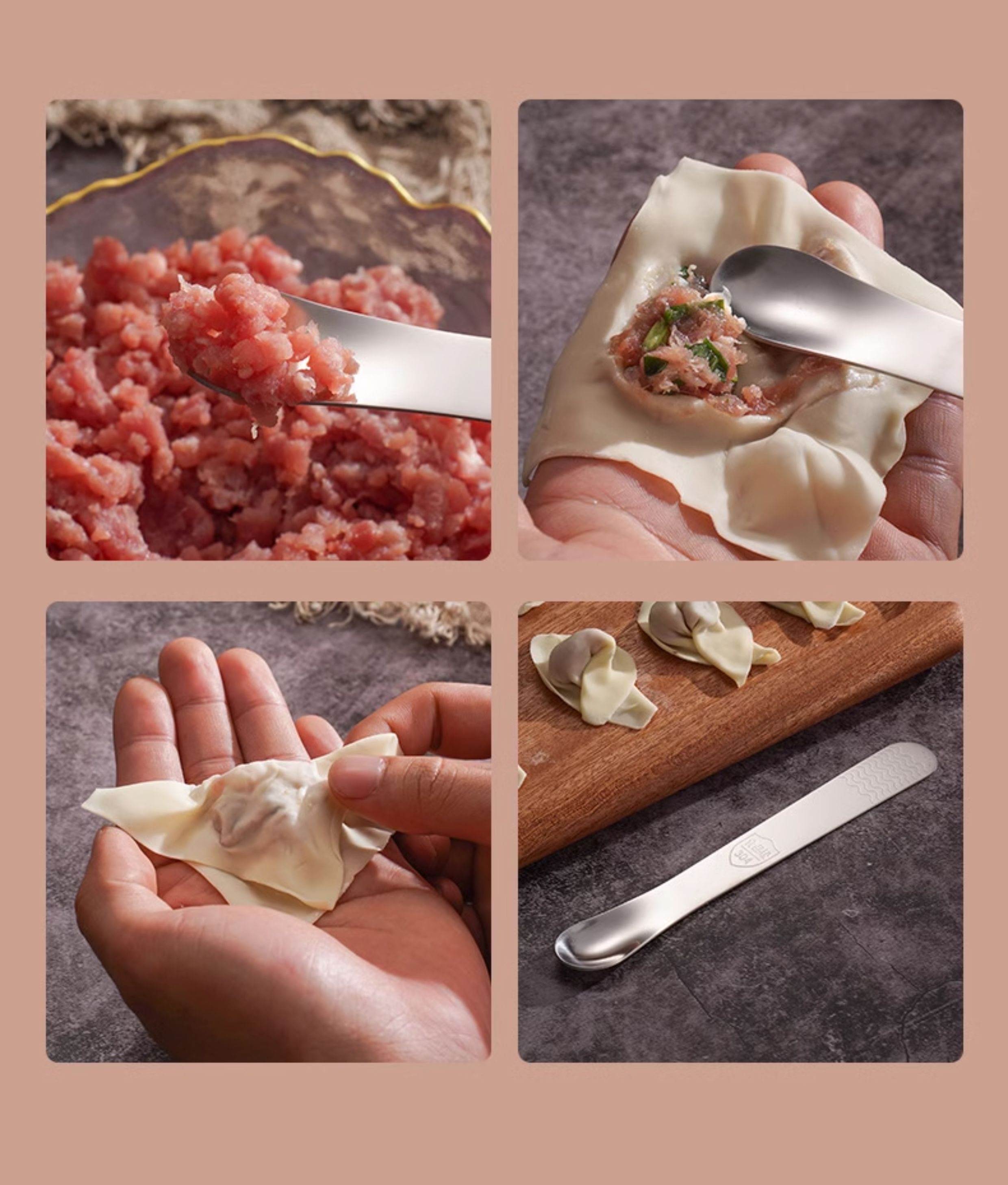 Jujiajia Stainless Steel Dumpling Spoon Dual-Use Stuffing Digging Mixer Stuffing Spoon For Home Dumpling Wonton Spoon Tool