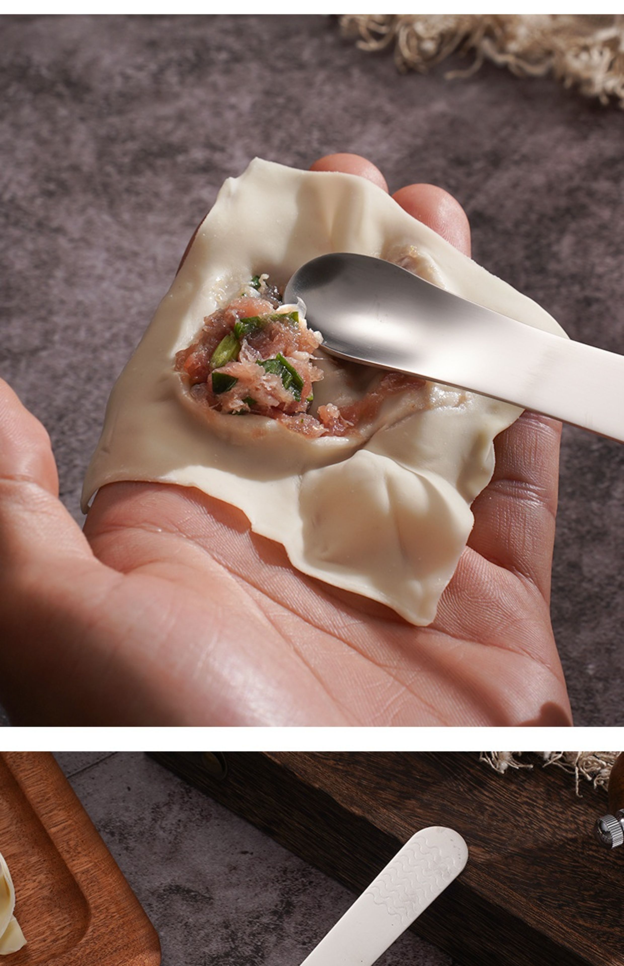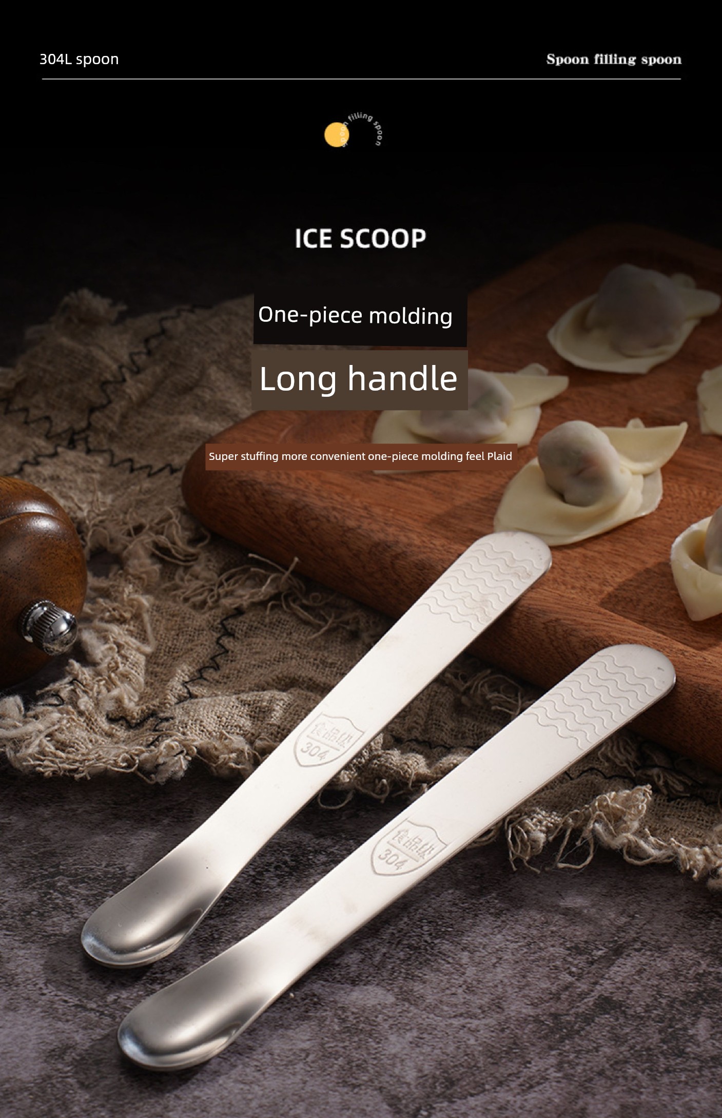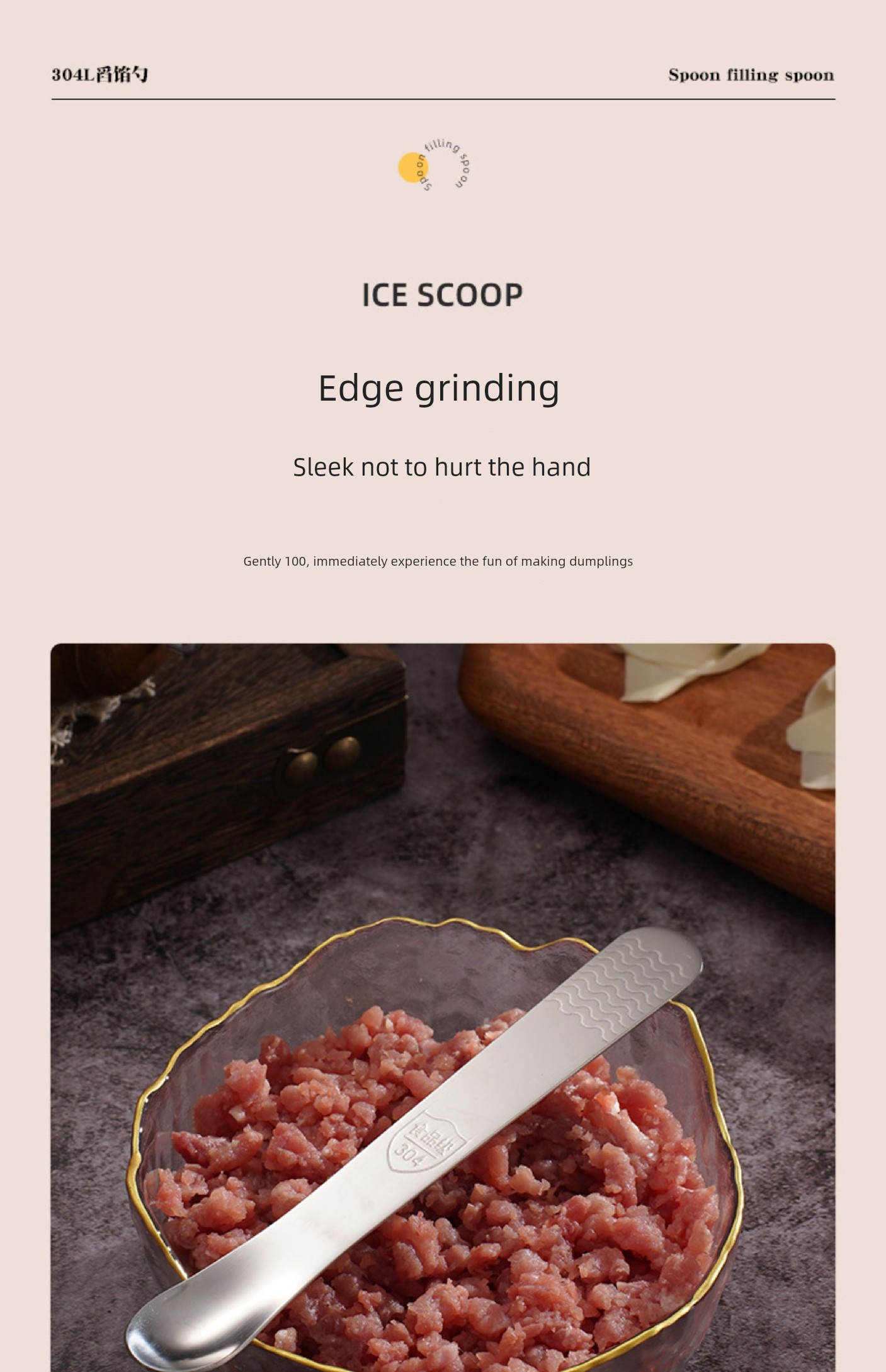 Jujiajia Stainless Steel Dumpling Spoon Dual-Use Stuffing Digging Mixer Stuffing Spoon For Home Dumpling Wonton Spoon Tool