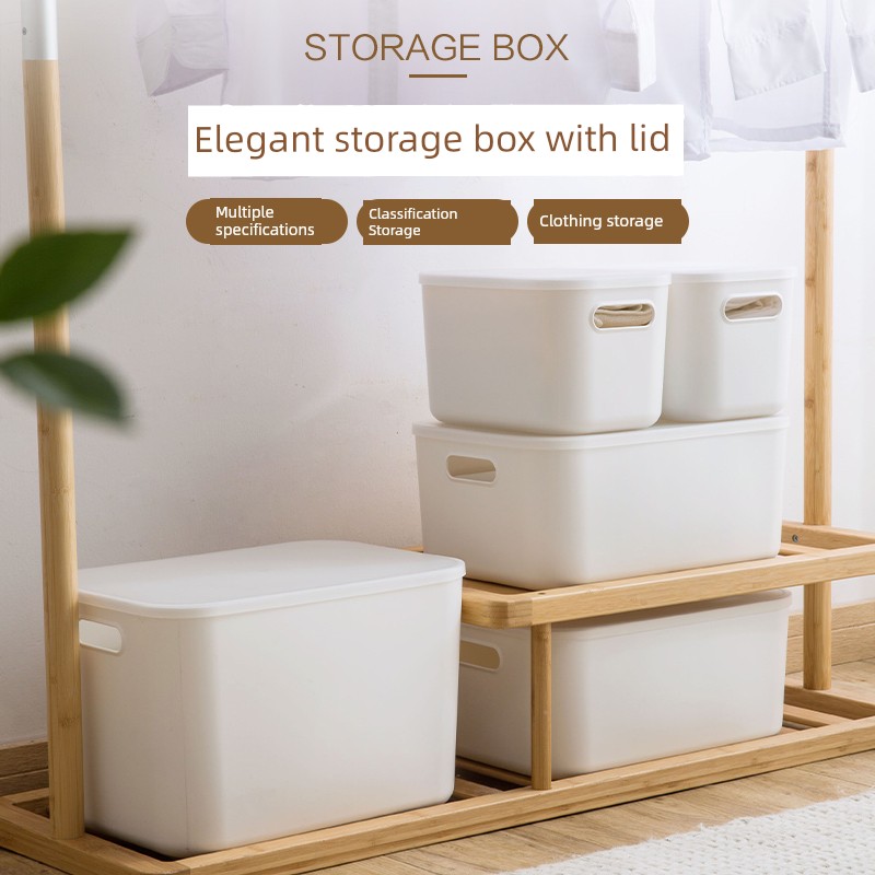 Jujiajia Storage Box Household Sundries Desktop Storage Box Plastic Square Stackable Moisture-Proof Dustproof Storage Box