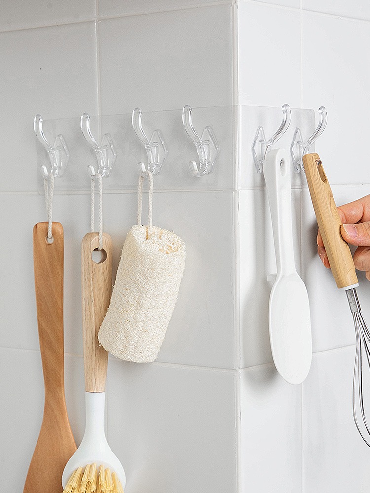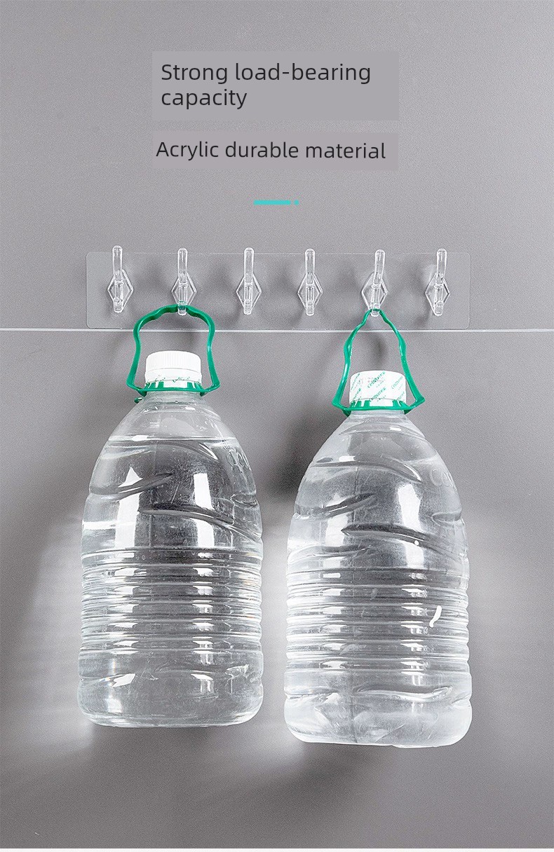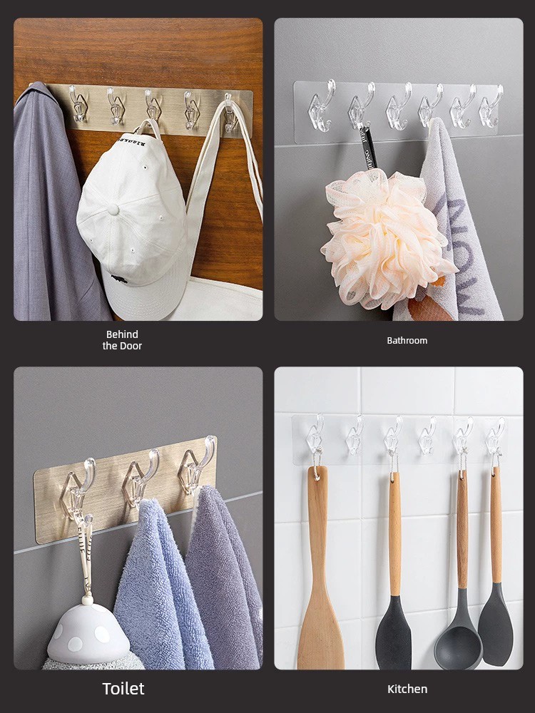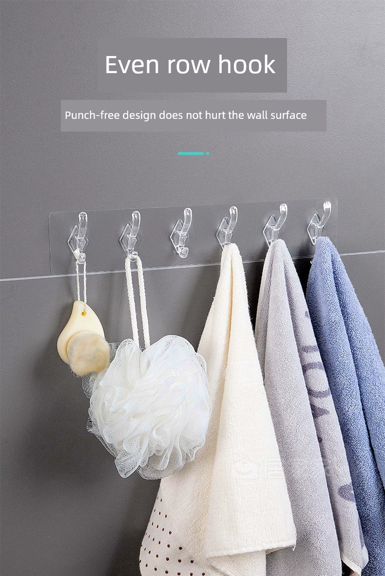 Jujiajia Transparent Hook with Row Six-Piece Hanging Strong Adhesive Non-Drop Wall Hanging Seamless Punch-Free Hook behind the Door