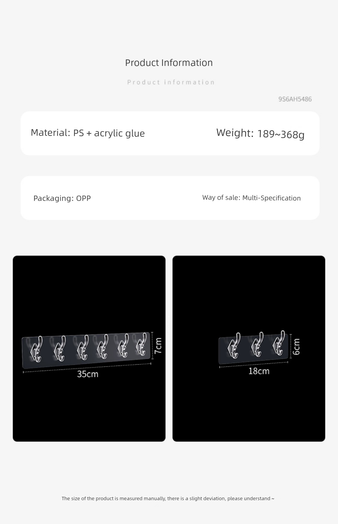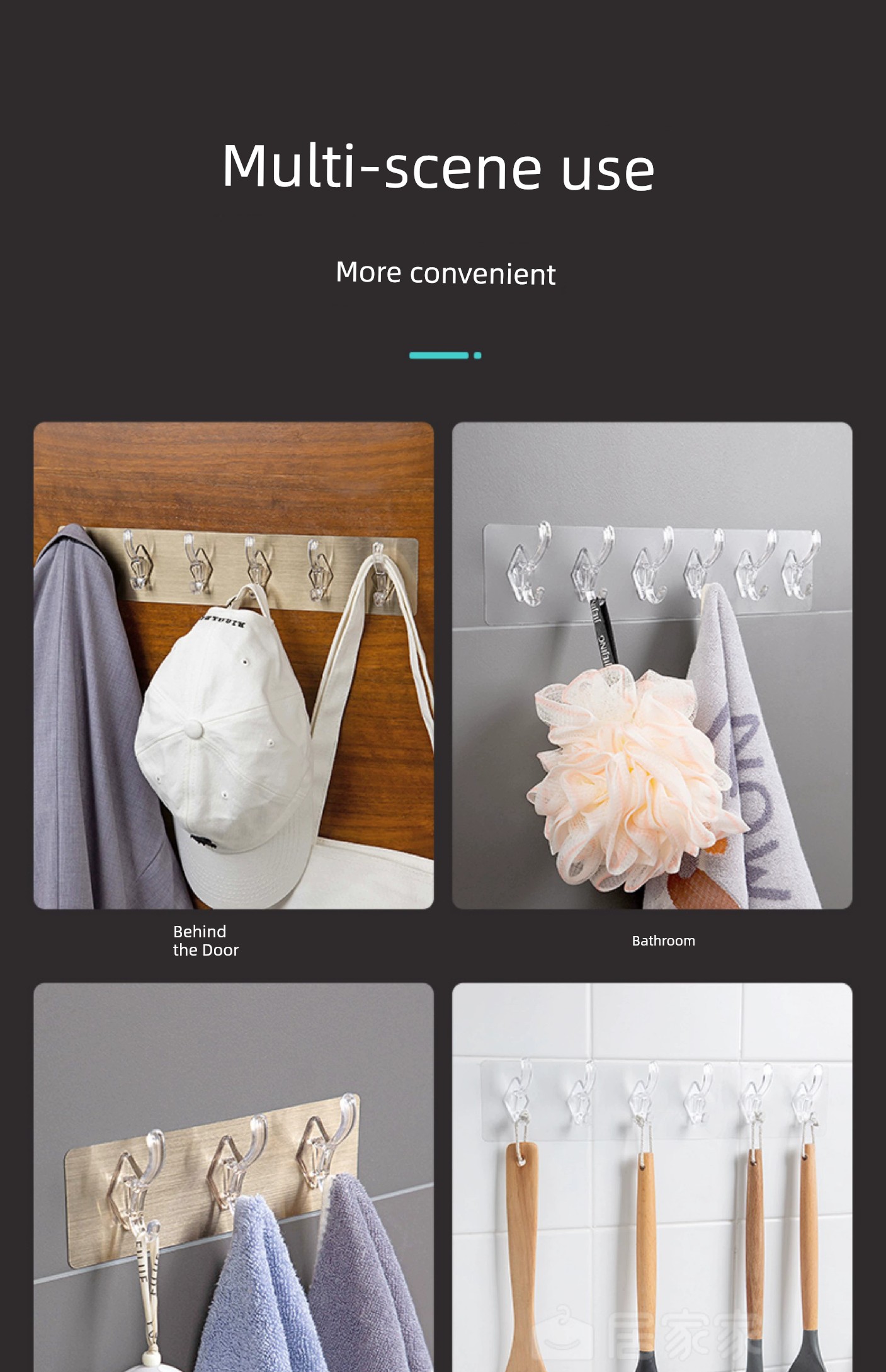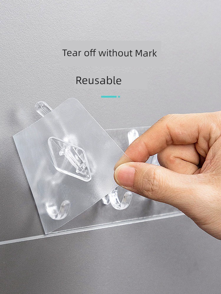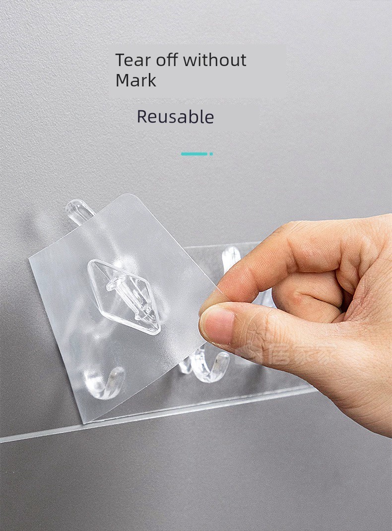Jujiajia Transparent Hook with Row Six-Piece Hanging Strong Adhesive Non-Drop Wall Hanging Seamless Punch-Free Hook behind the Door