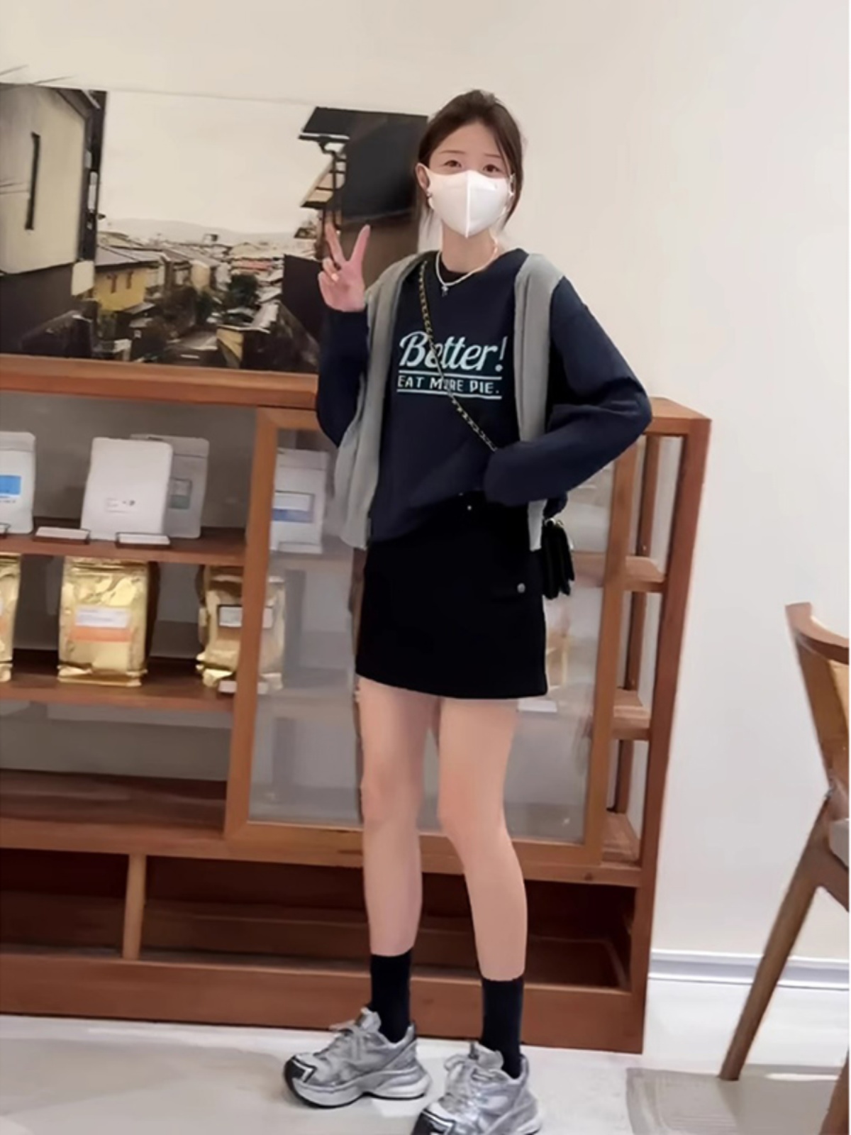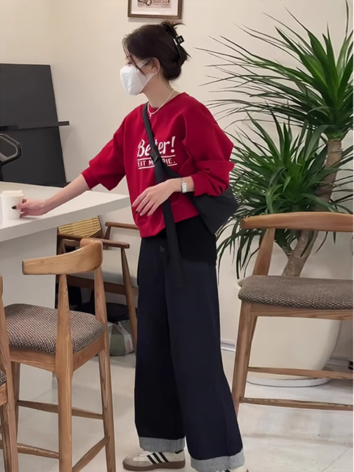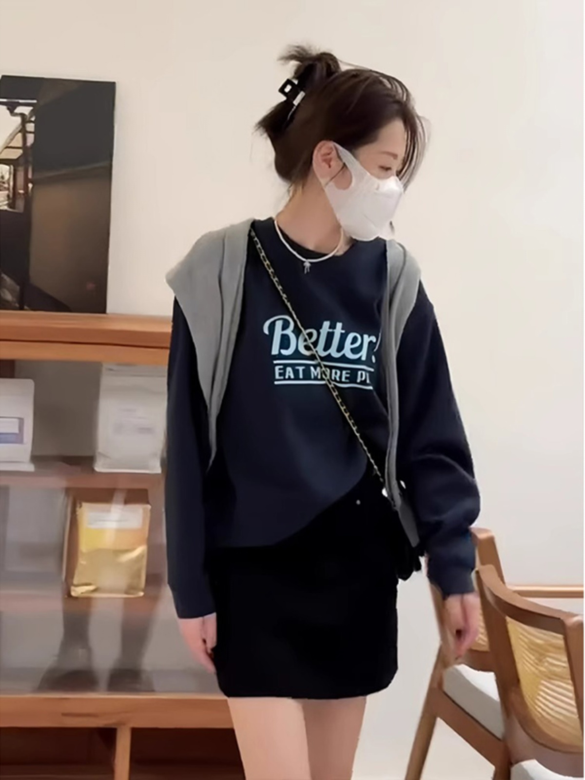 K-style Casual round Neck Letter Print Long Sleeves Sweatshirt 2025 Fall New Arrival Easiest for Match Loose Slim Looking Short Top for Women