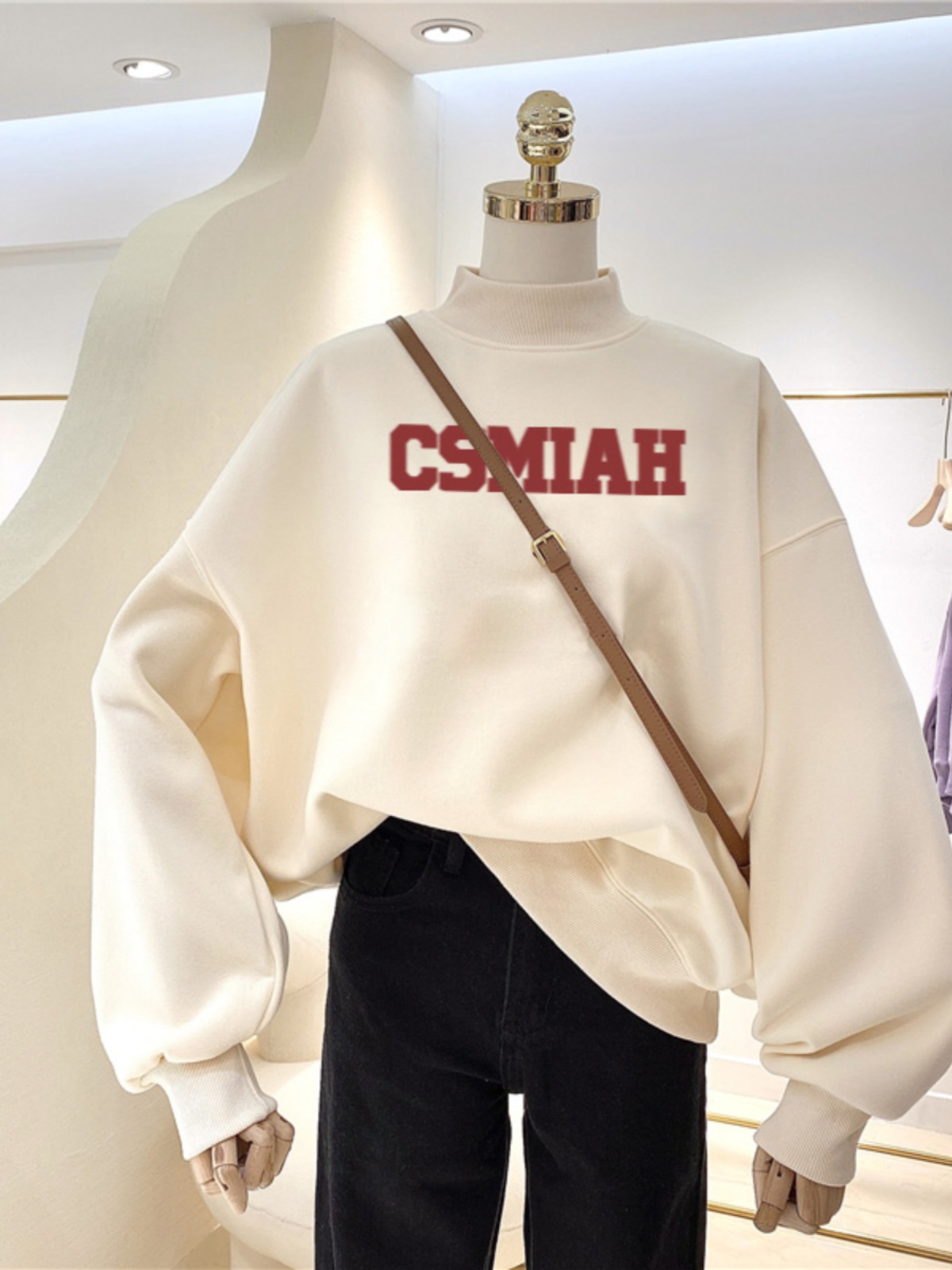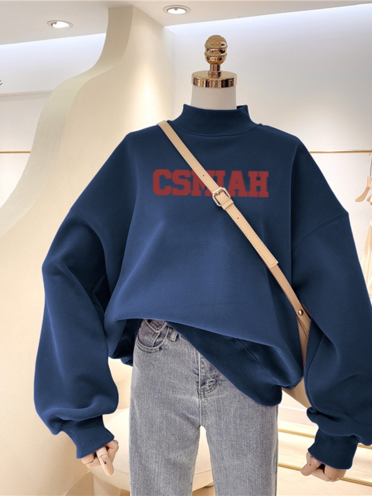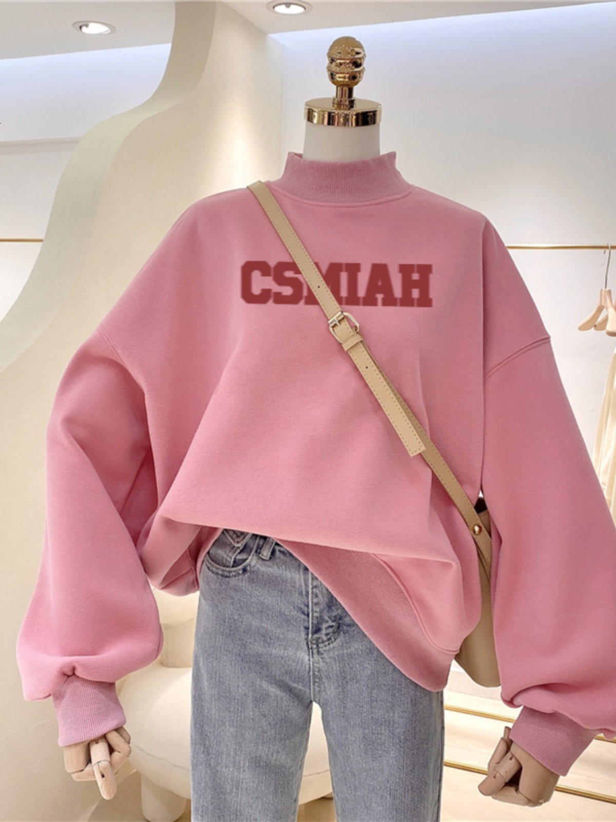 K-style Chic Casual Plus Size Mock Neck Hoodie Female Winter Fleece-lined Heattech Ins Tide Fancy Coat Top