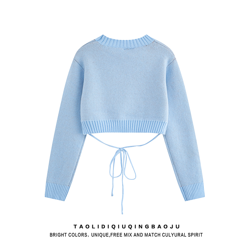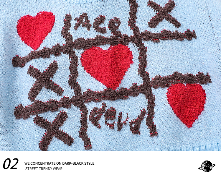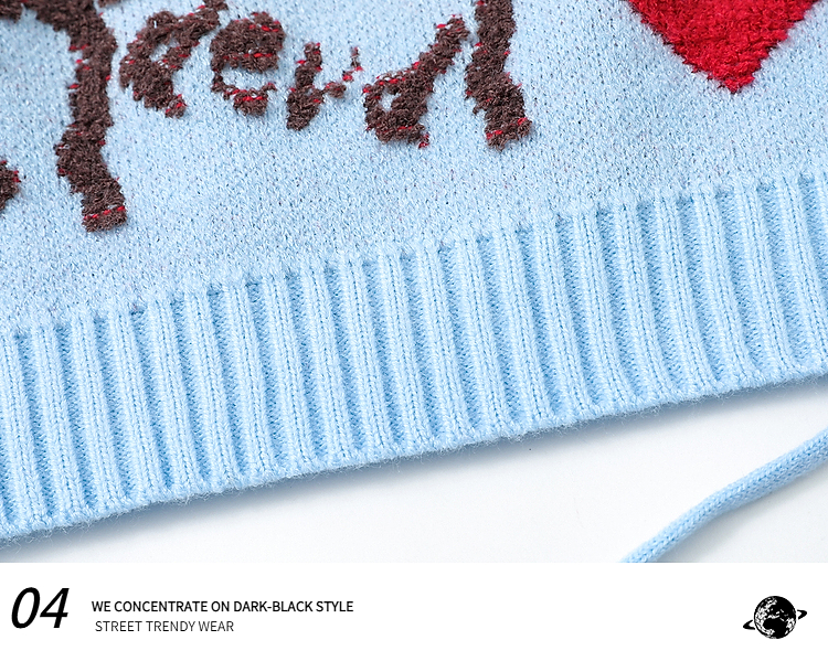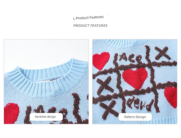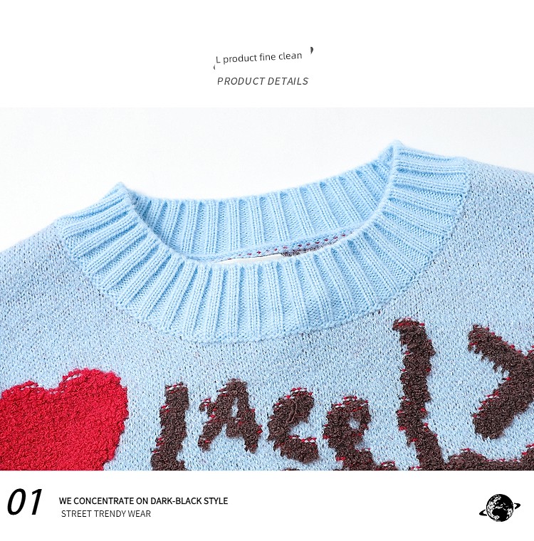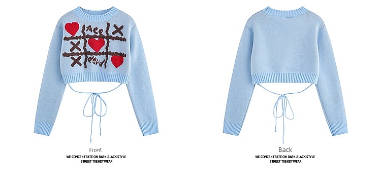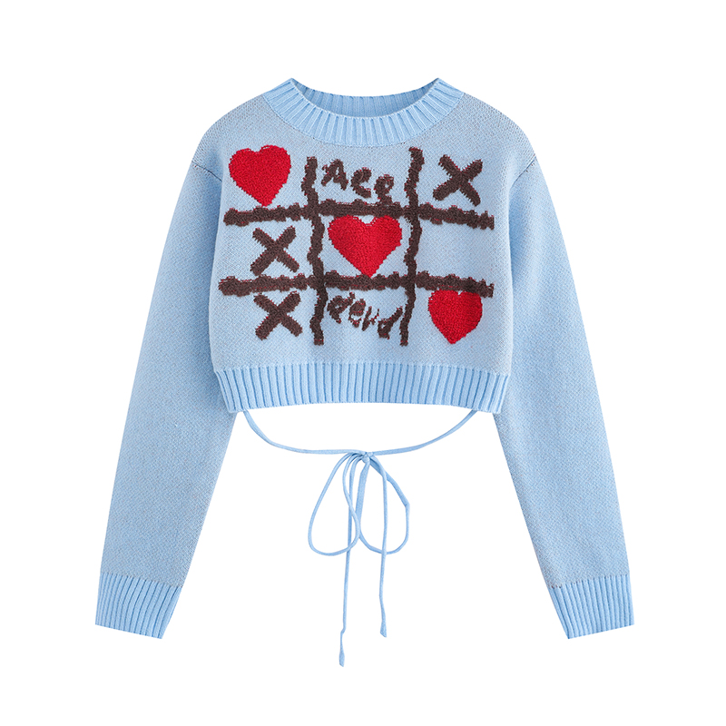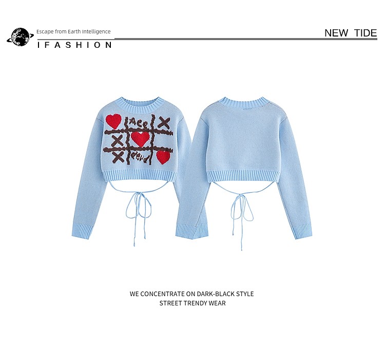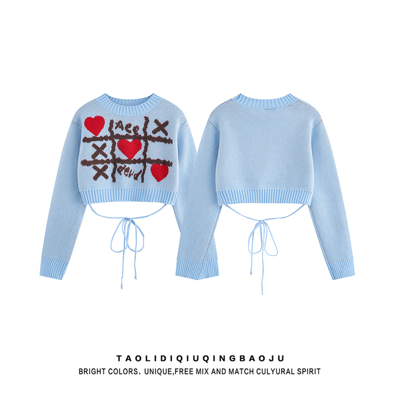 K-style Heart Letter Jacquard round Neck Sweater Women's 2025 New Arrival Small Slim Looking All-Matching Short Knitwear