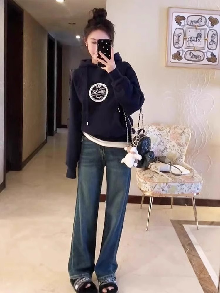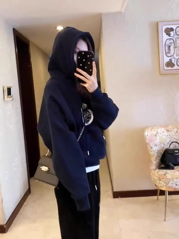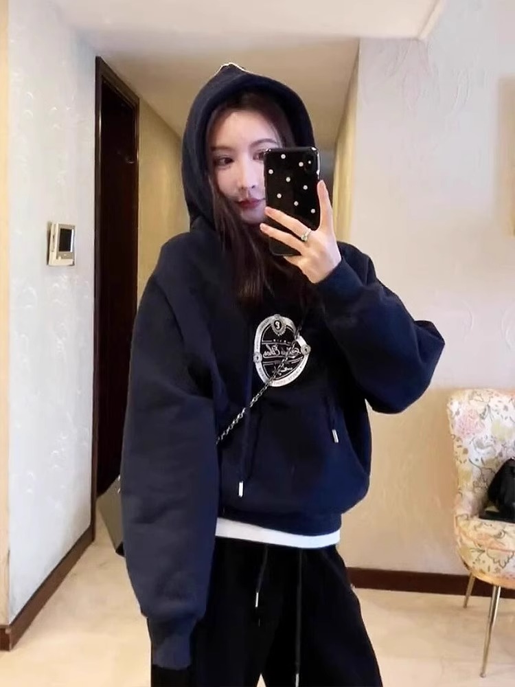 K-style Younger Fashion Printed Hoodie Women's Spring and Autumn Small Western Style Leisure Versatile Slimming Top Fashion