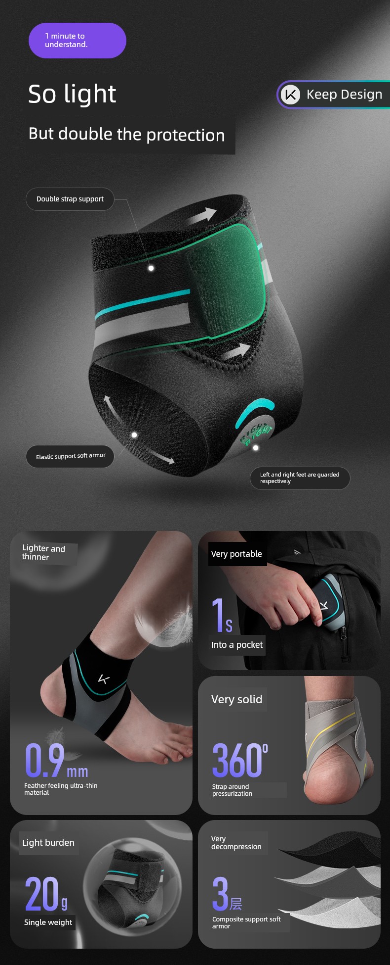 Keep Ankle Support Anti-Twist Ankle Protector Sprain Recovery Professional Fixed Joint Thin Protective Cover Running Sports Men and Women