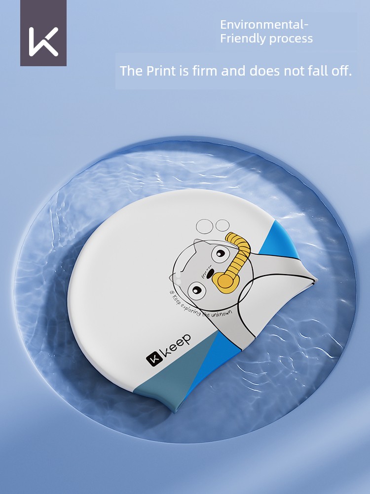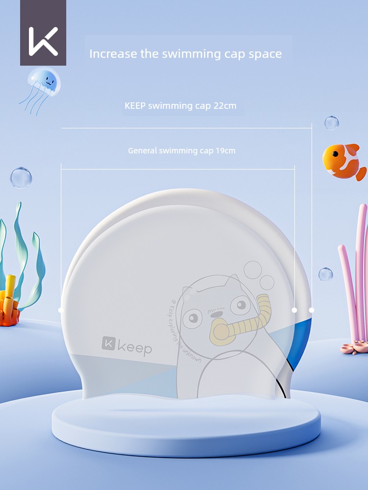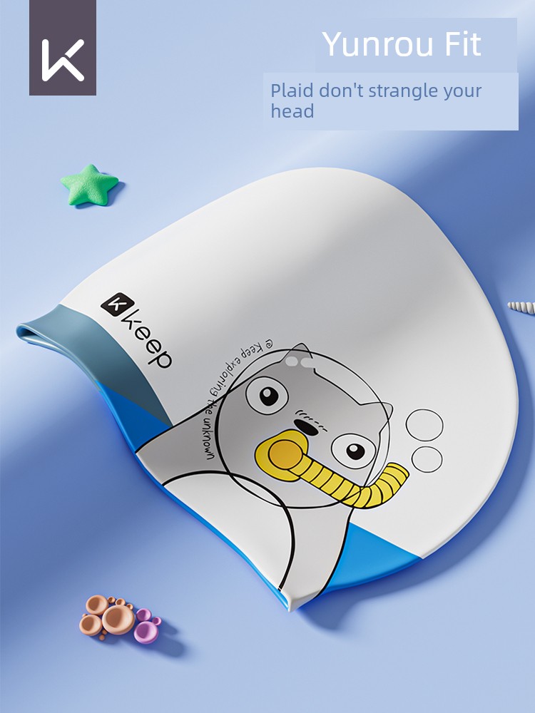 Keep Kids Swimming Cap Boys Girl Not-Too-Tight Professional Waterproof and Sun Protection Cartoon Baby Ear Protection Silicone Swimming Cap
