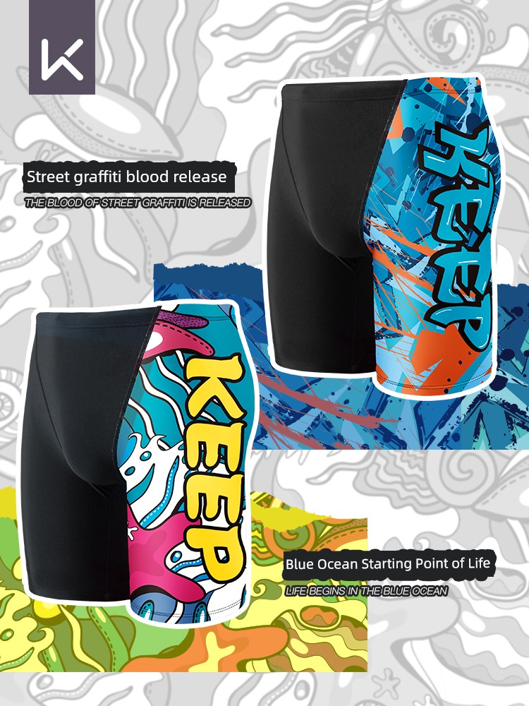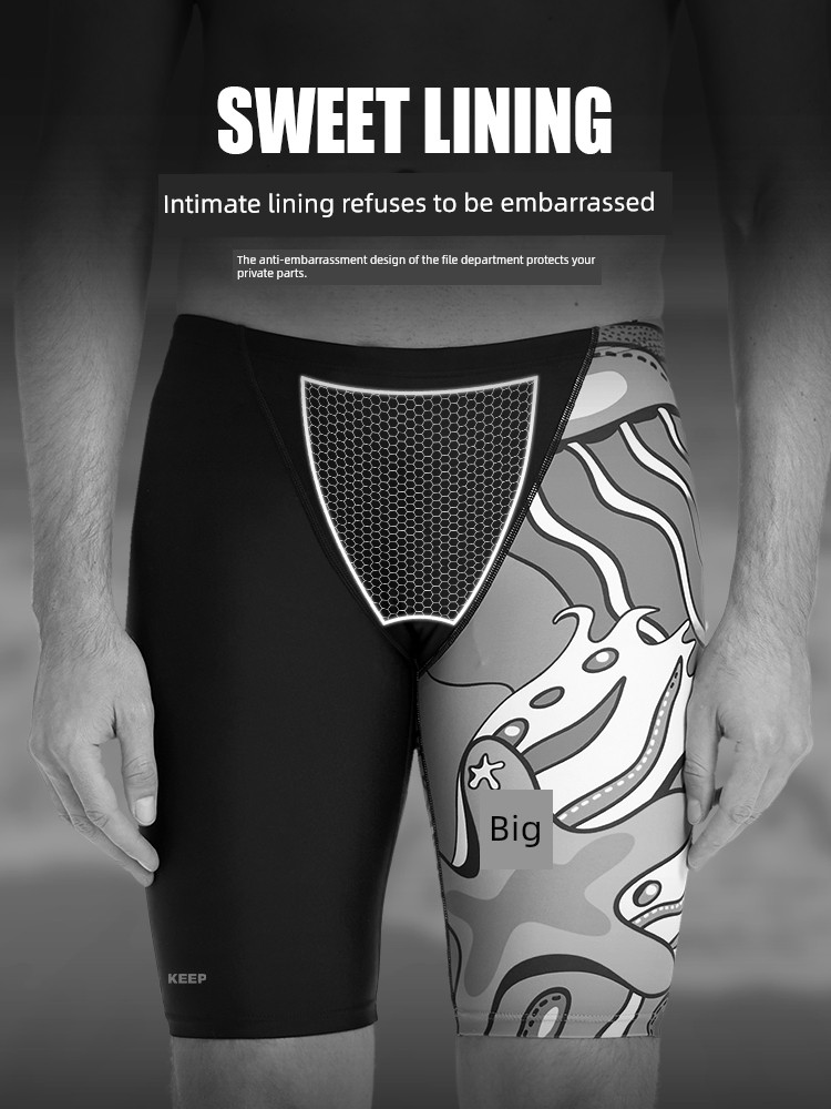 Keep Swimming Trunks Men Anti-Embarrassment Knee-Length Pants Boxer Swimming Trunks 2025 New Arrival Quick-Drying Plus Size Summer Professional Swimwear