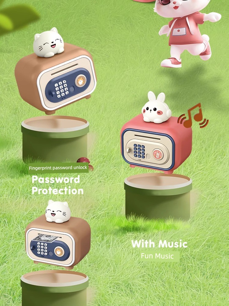 Kids Cartoon Cute Pet Coin Bank Multi-Function Automatic Money-Rolling Safe Box Password Suitcase Large Capacity Savings Bank Toys
