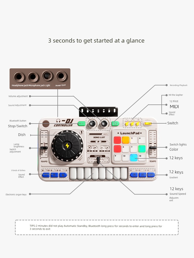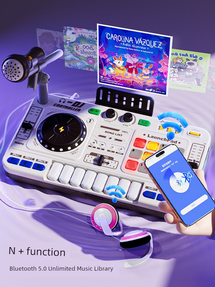 Kids DJ Disk Recorder All-in-One Music Toy Electronic Organ Musical Instrument DJ Table Baby Girl Birthday Gift for Boy