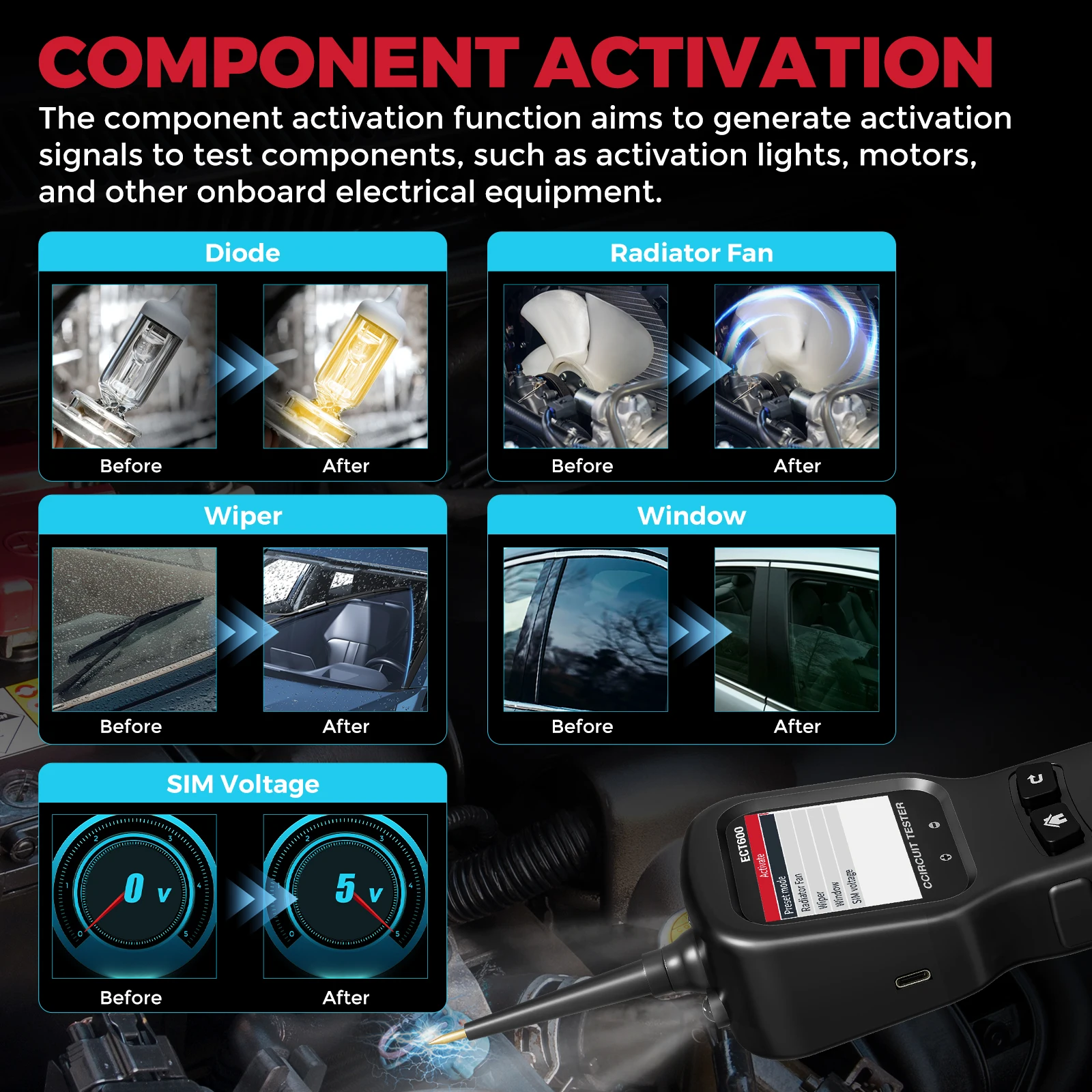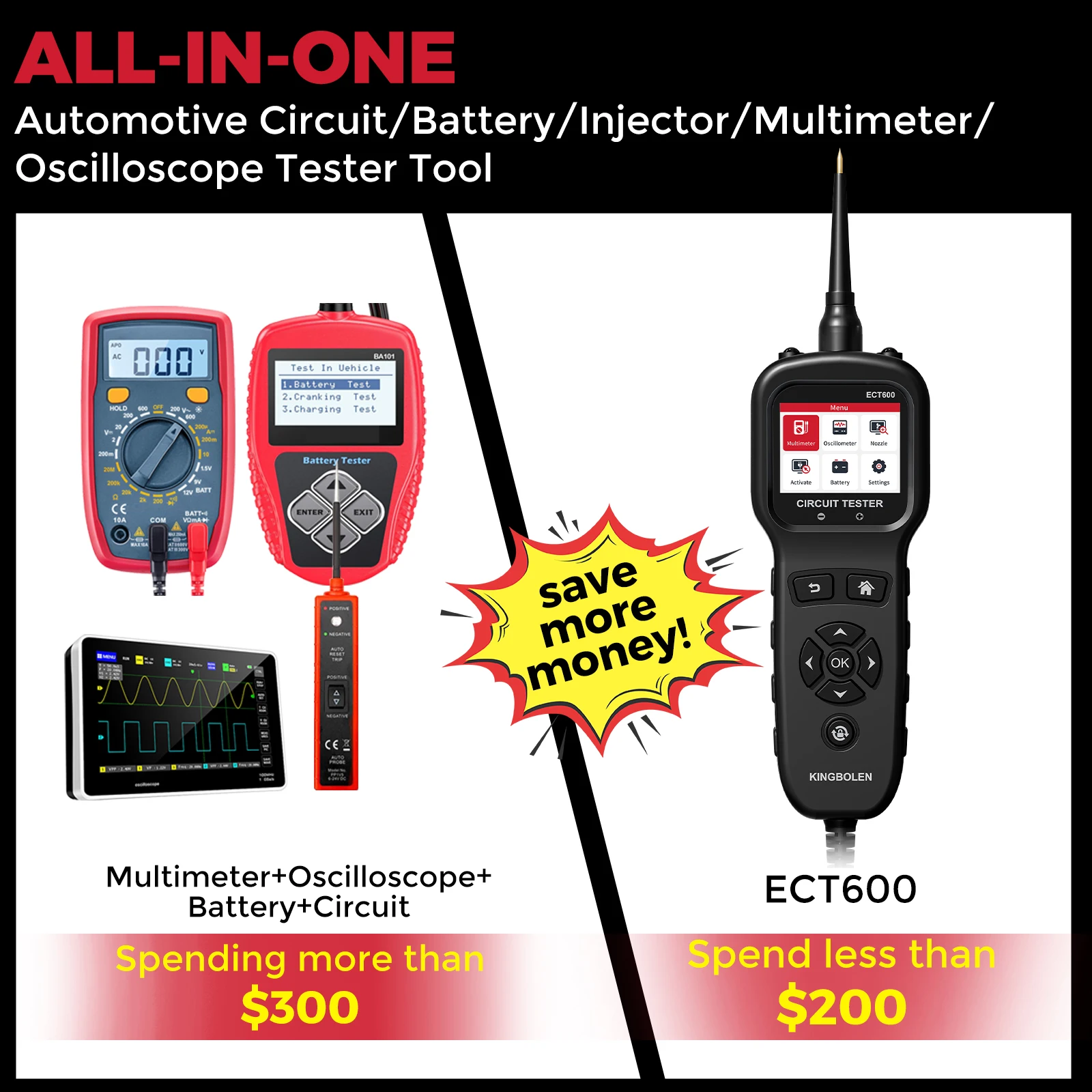 Kingbolen New ECT600 Auto Circuit Tester 12V/24V Car Battery Tester With Clean Function Electric Power Auto Scanner
