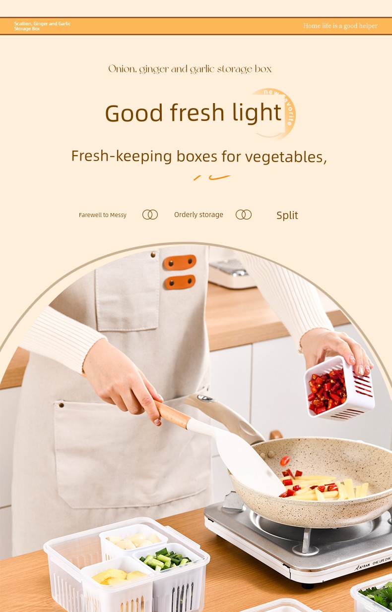 Kitchen Cooking Box for One Week Divided Onion, Ginger and Garlic Storage Box Food Grade Refrigerator Frozen Crisper Separately Packed Case Handy Gadget