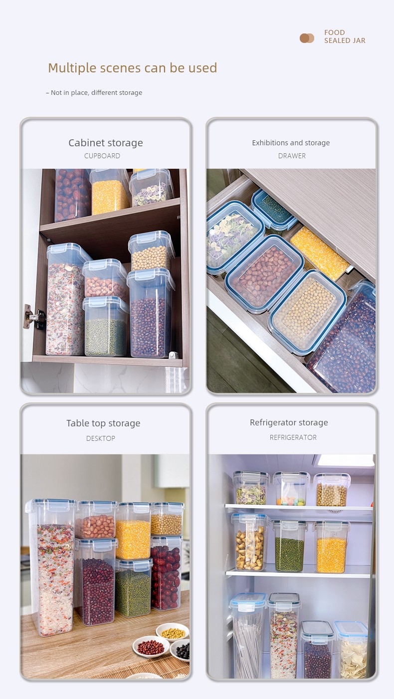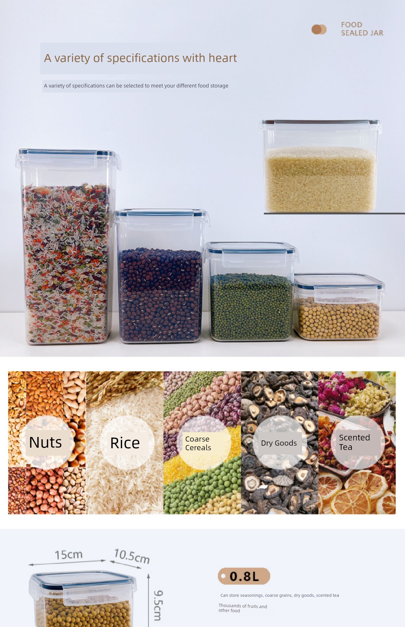 Kitchen Food Storage Box Sealed Cans Long Bar Refrigerator Storage Box Food Grade Transparent Cans Snack Storage Cans