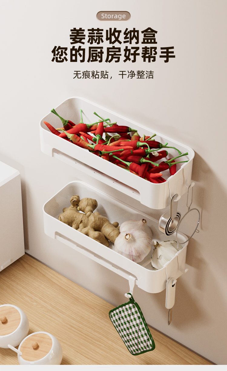 Kitchen Garlic Ginger Storage Box Onion Ginger Garlic Storage Basket Wall-Mounted Storage Rack Seasoning Wall-Mounted Garlic Head Ginger Storage