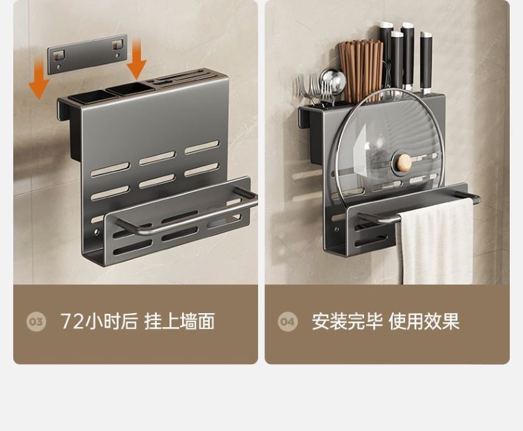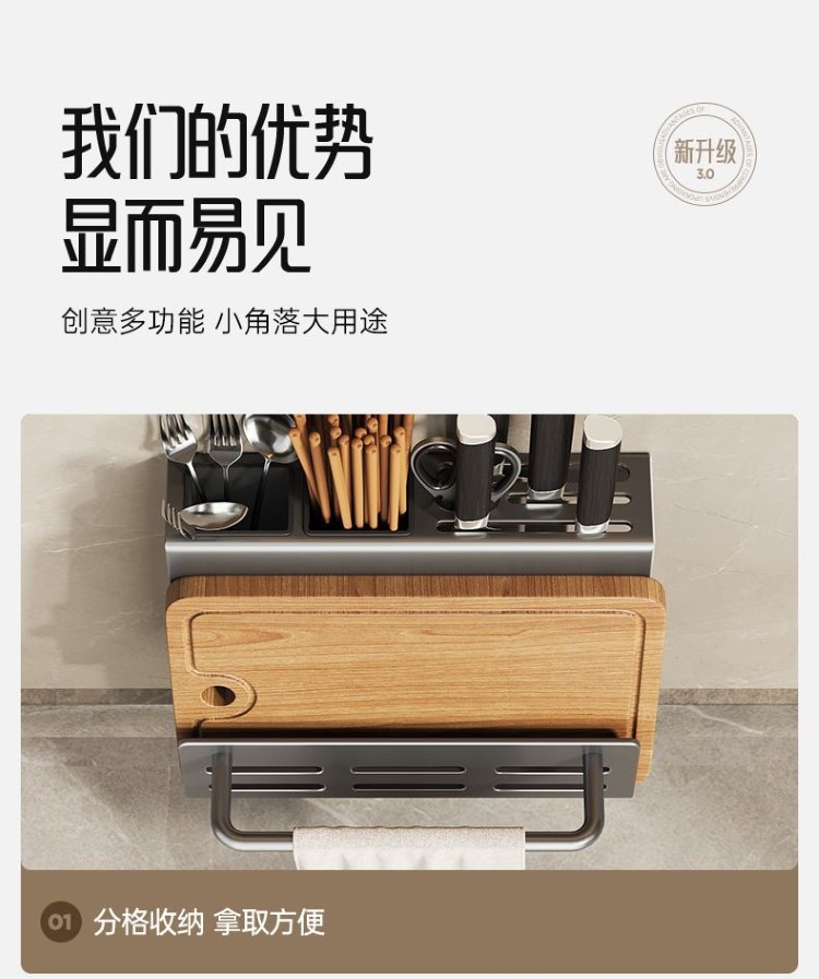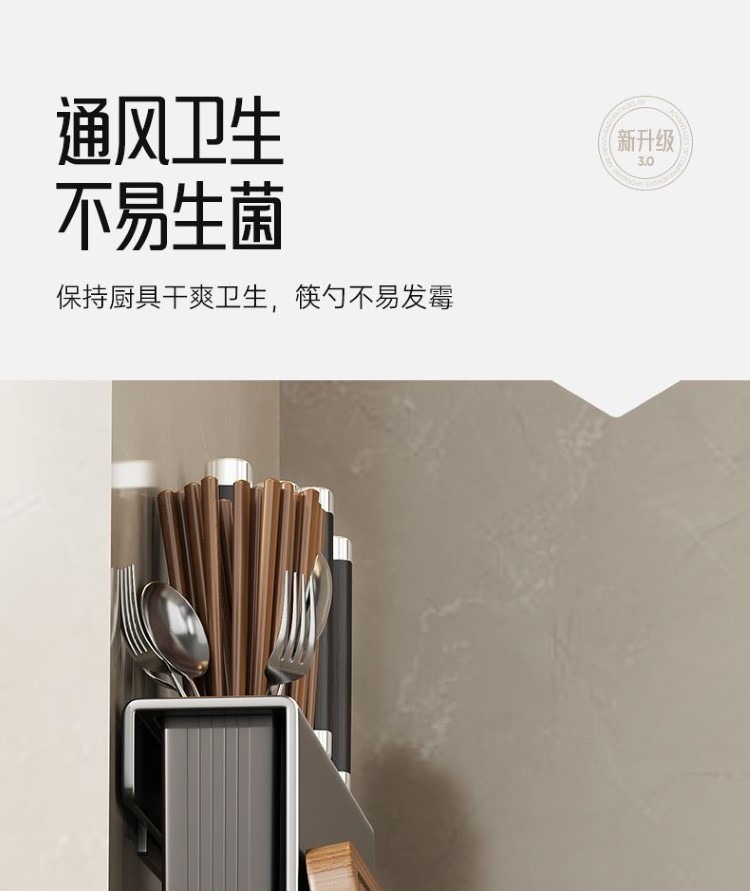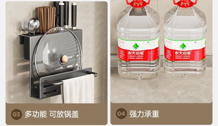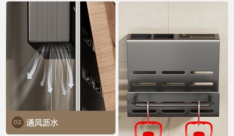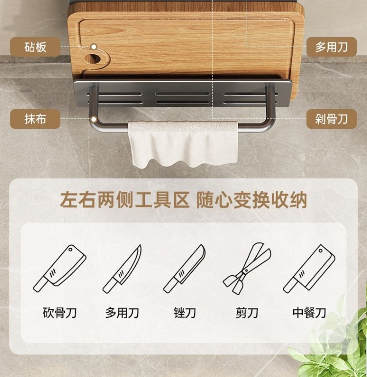 Kitchen Knife Rack Storage Rack Multi-Functional Wall-Mounted Knife Storage Rack Kitchen Knife Cutting Board Integrated Shelf Chopsticks Holder