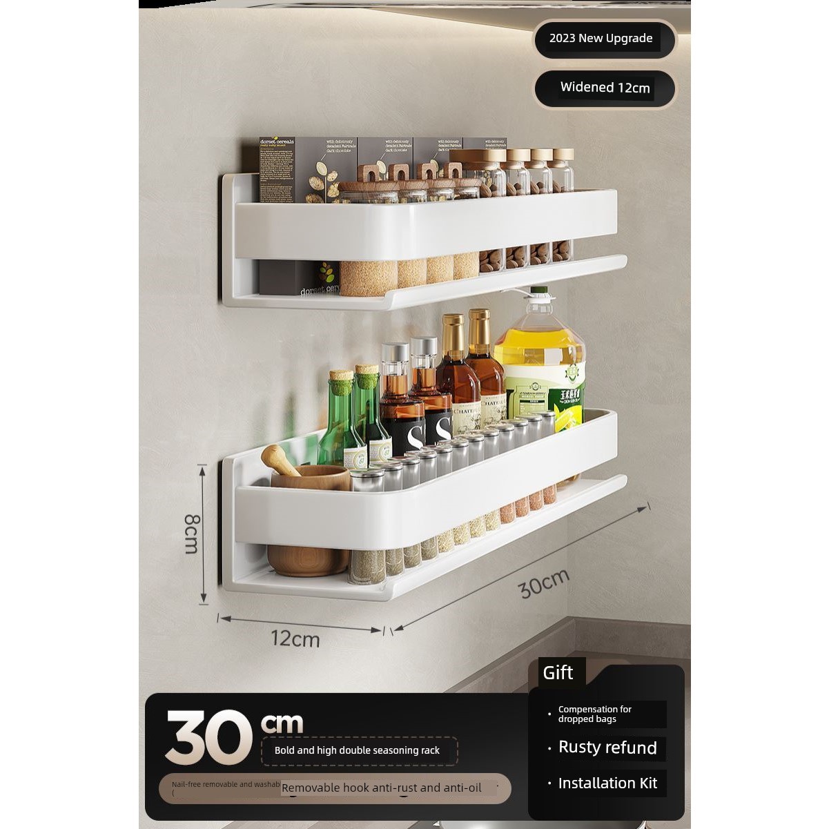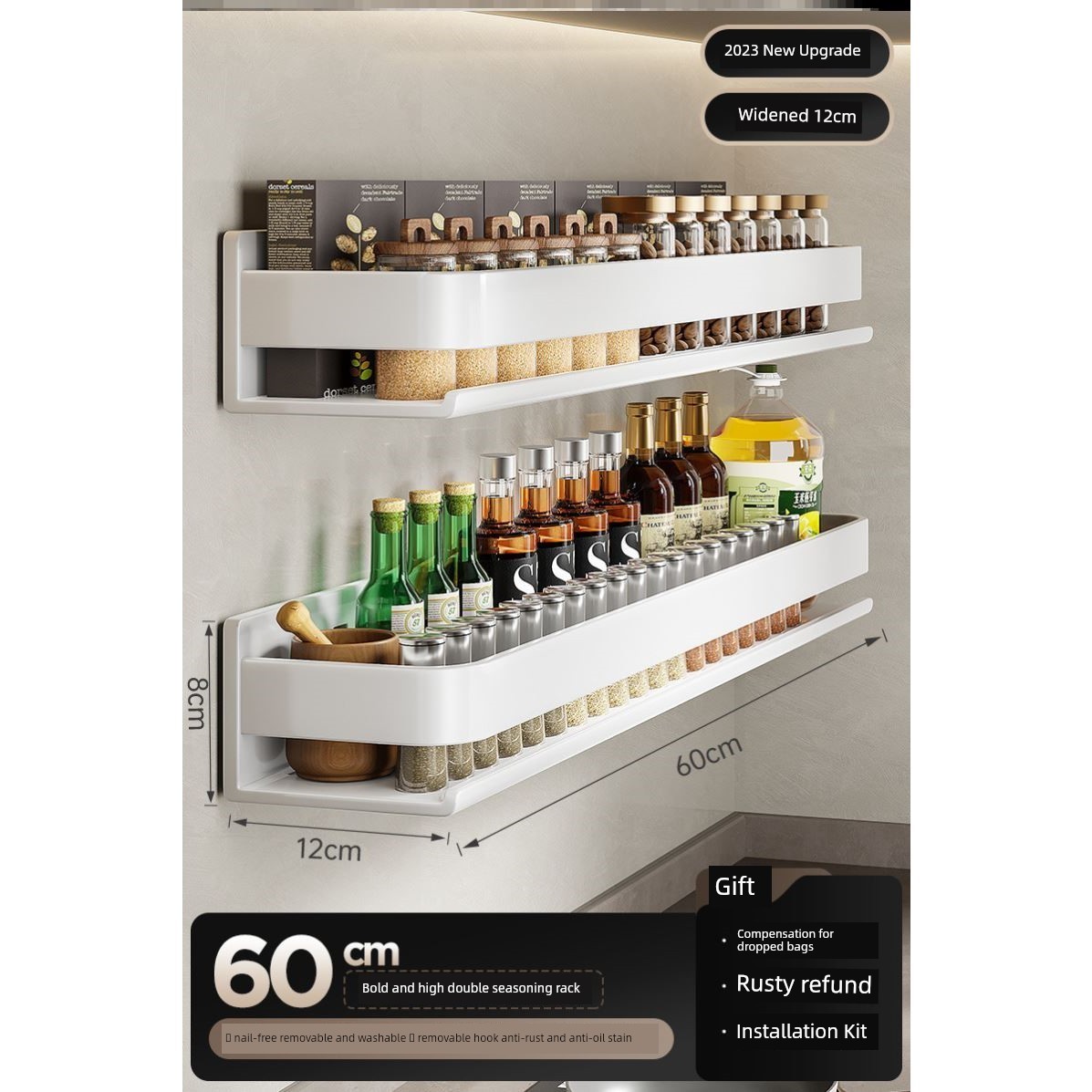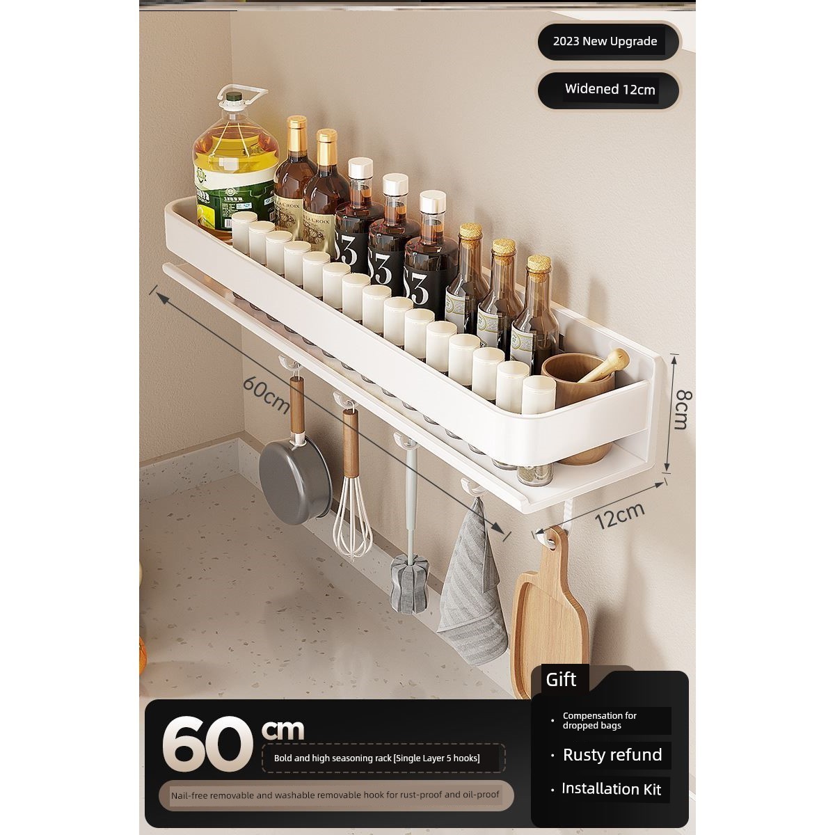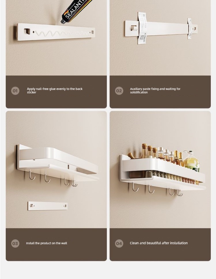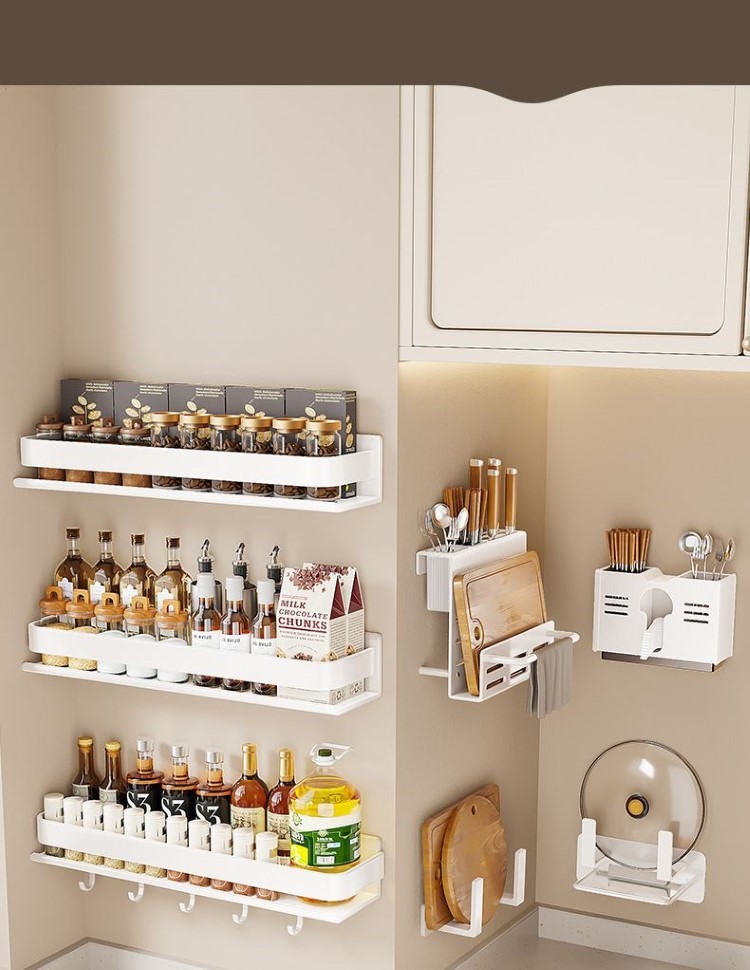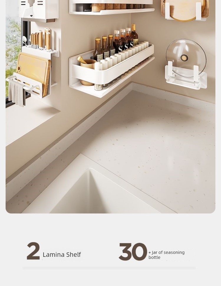 Kitchen Rack Seasoning Jar Storage Rack Wall-Mounted Punching-Free Wall-Mounted For Home Multi-Functional Seasoning Rack