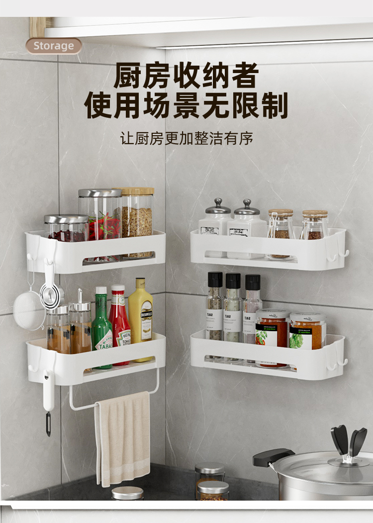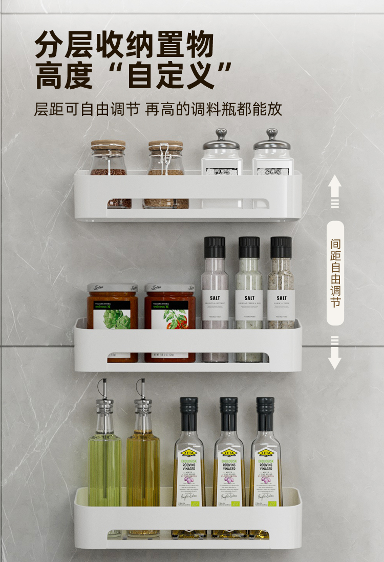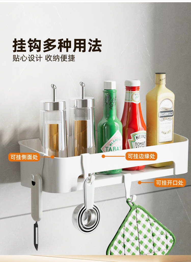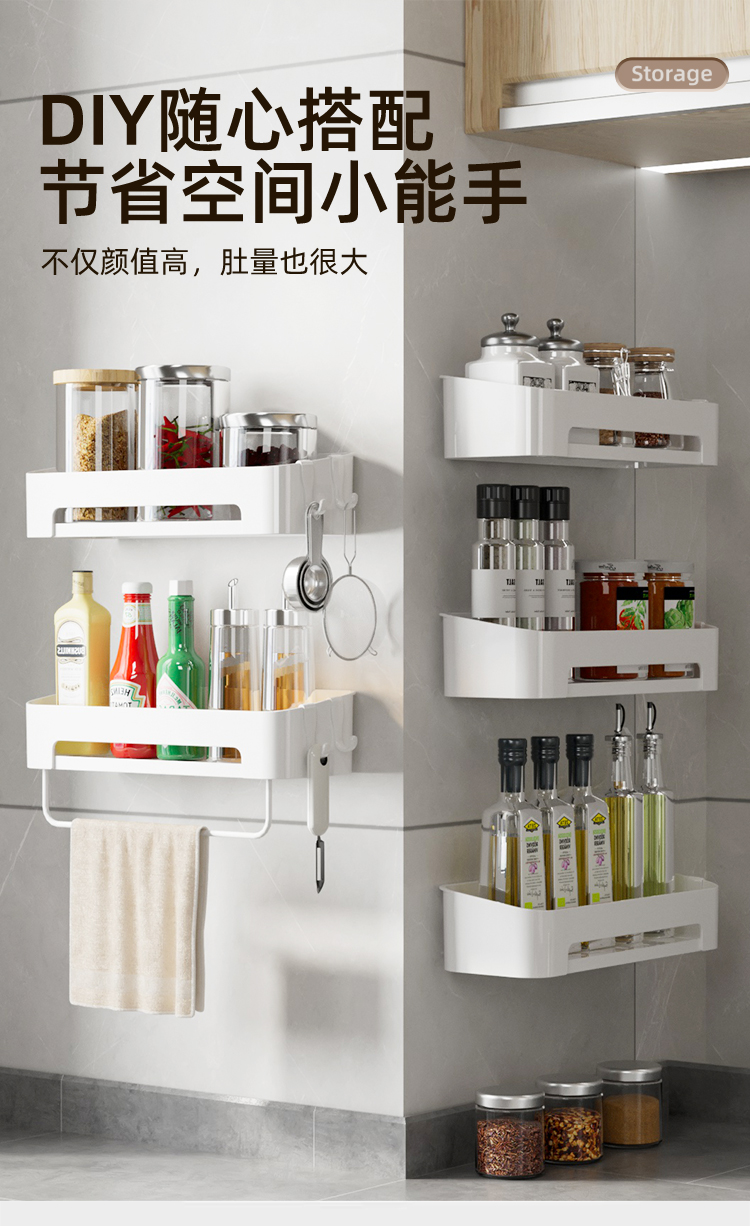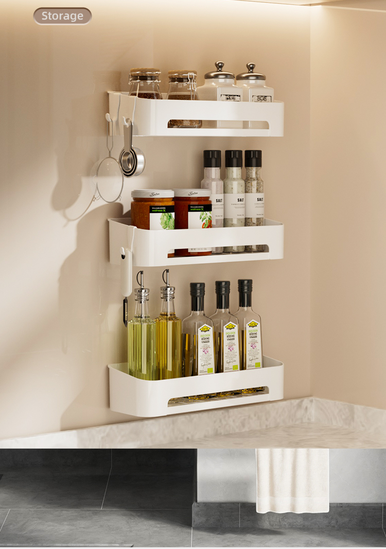 Kitchen Rack Seasoning Rack Punch-Free Wall-Mounted Seasoning Jar Multi-Functional Wall Storage Article Storage Shelf
