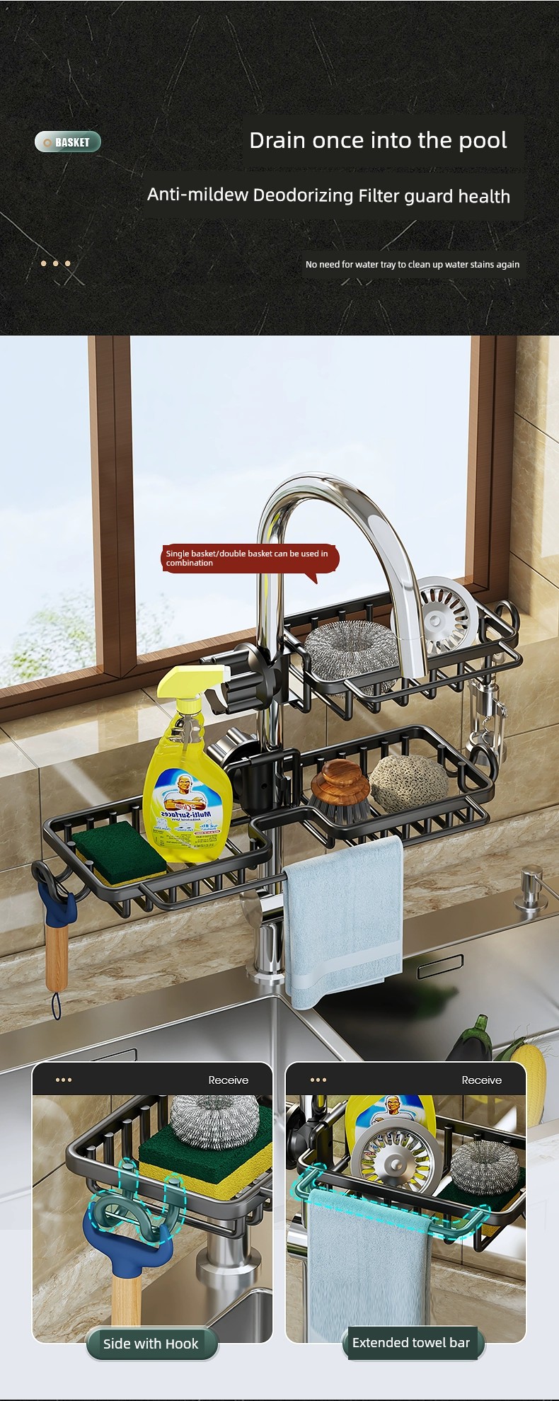 Kitchen Racks Hanging on a Faucet Domestic Sink Dishwashing Cloth Draining Storage Rack Sink Hanging Colander Tool