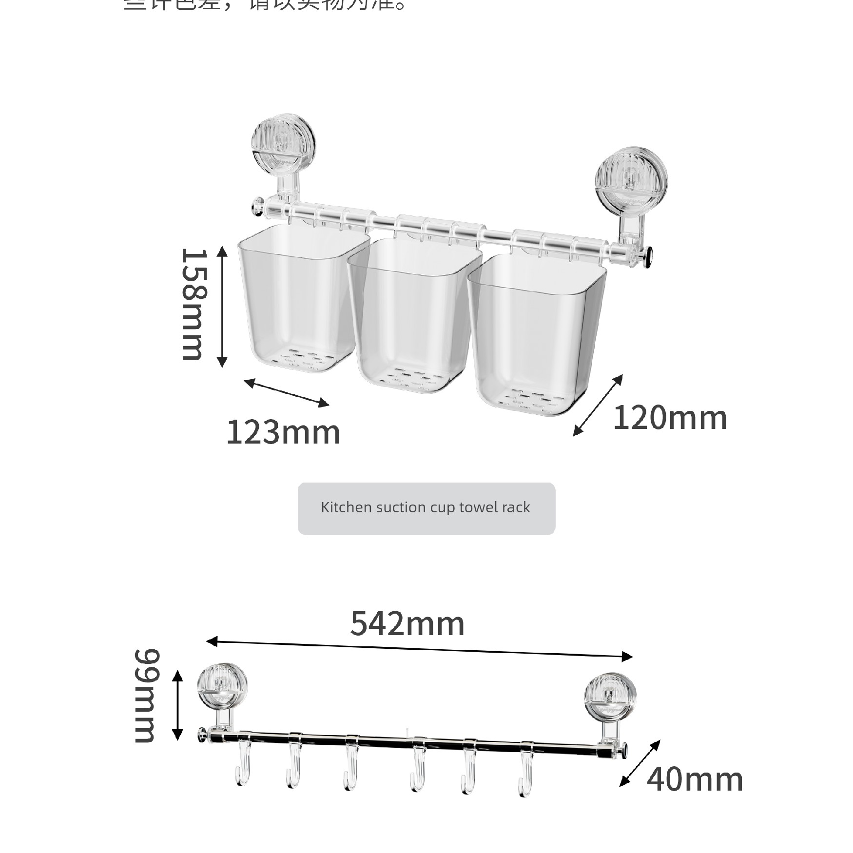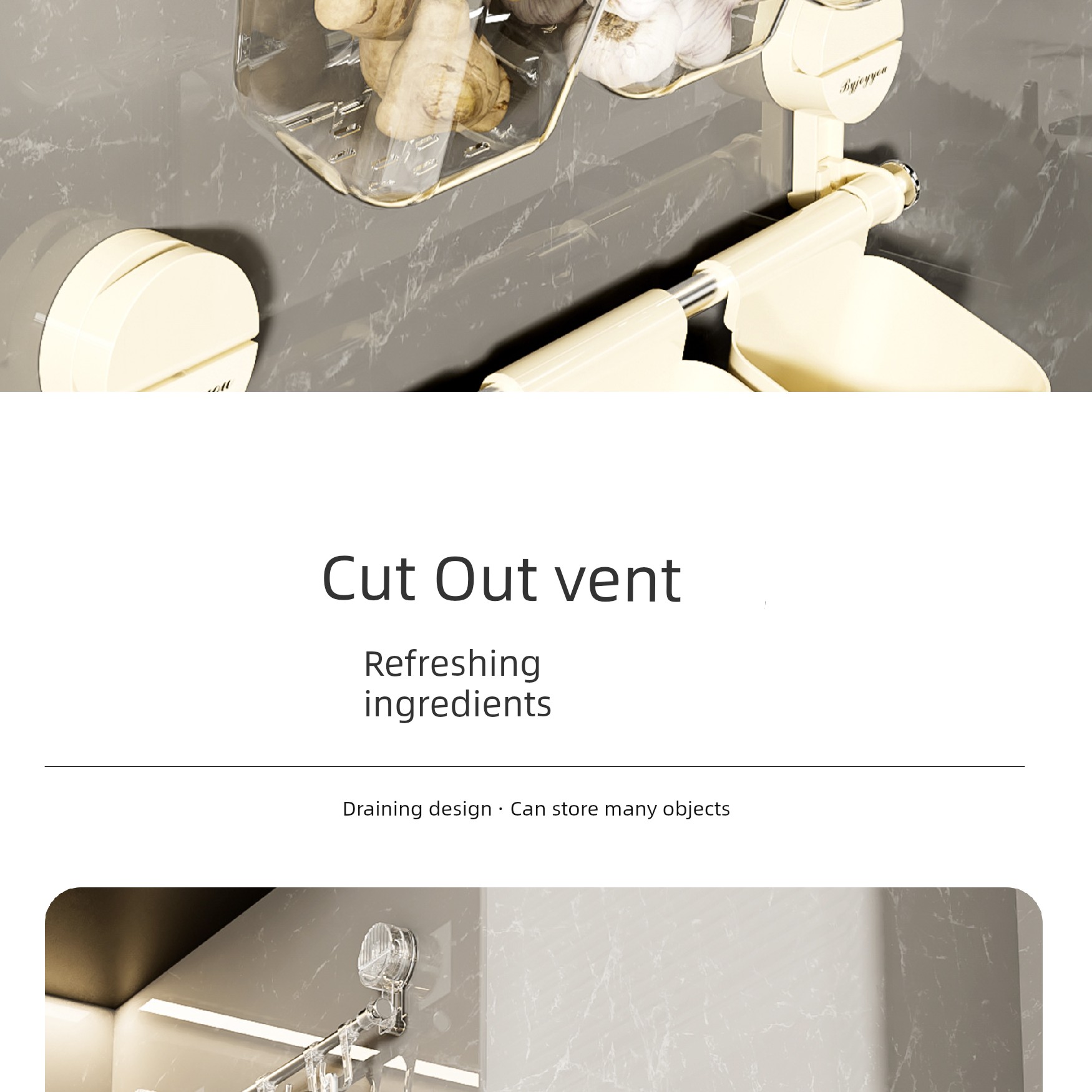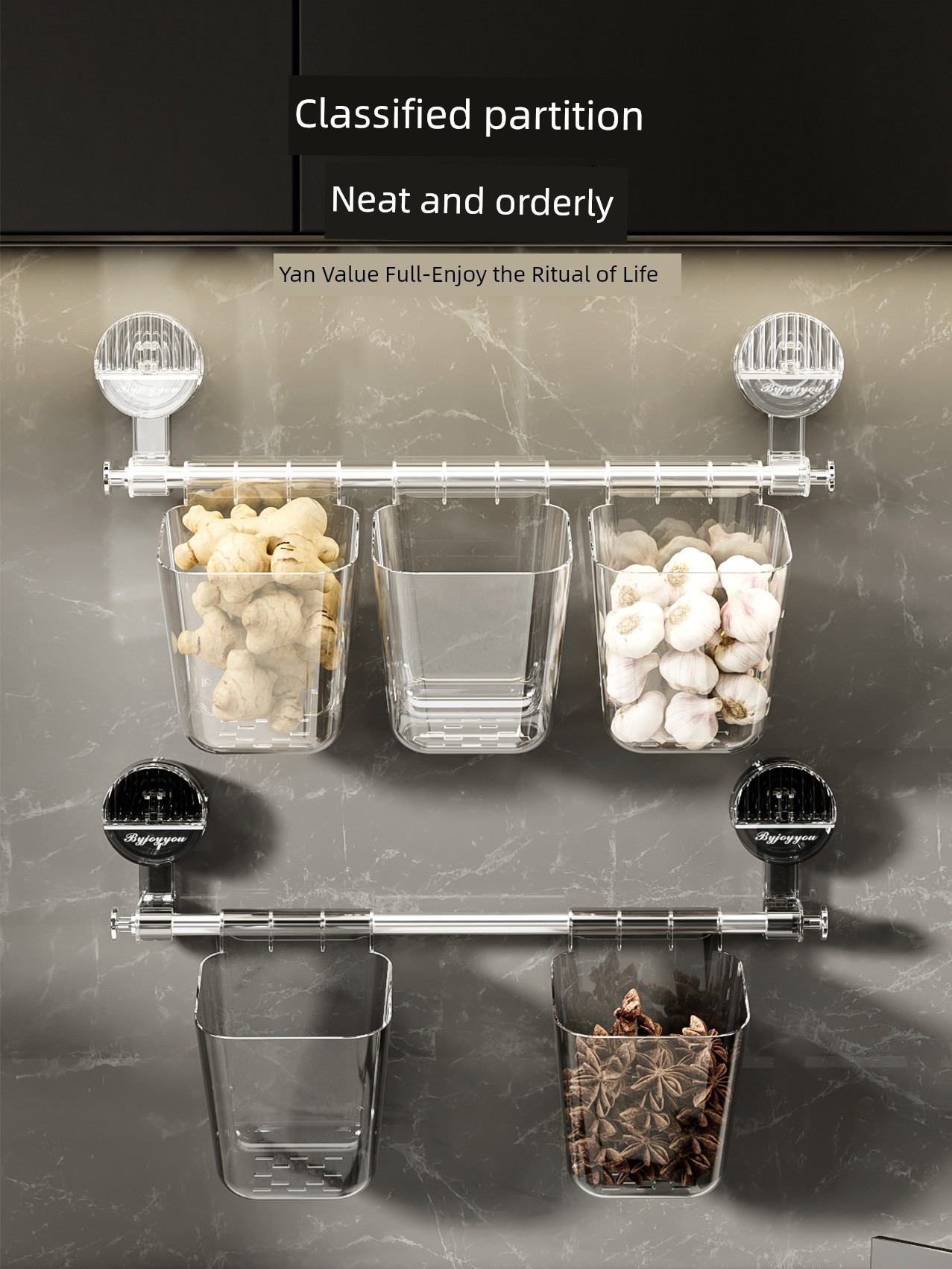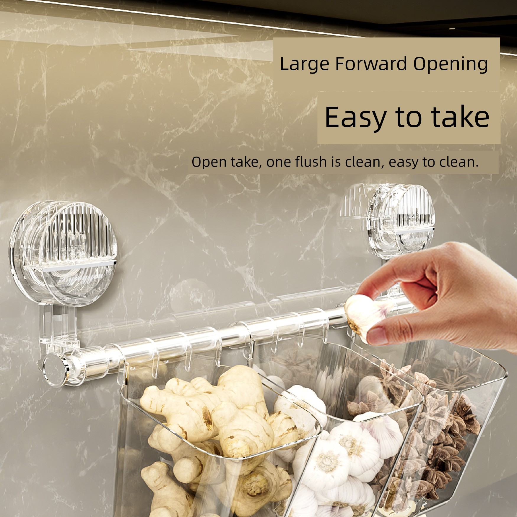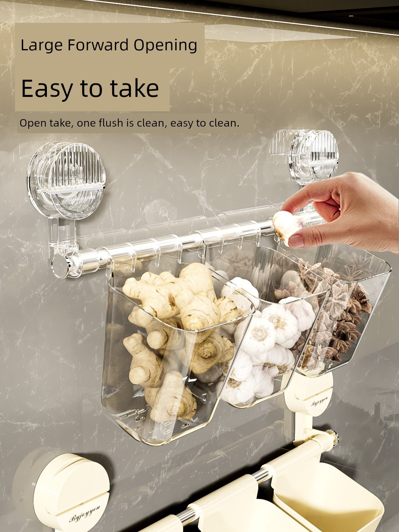 Kitchen Suction Cup Hook Punch-Free Storage Rack Hanging Spoon and Spatula Rack Multi-Functional Onion, Ginger and Garlic Hanging Basket Storage Rack