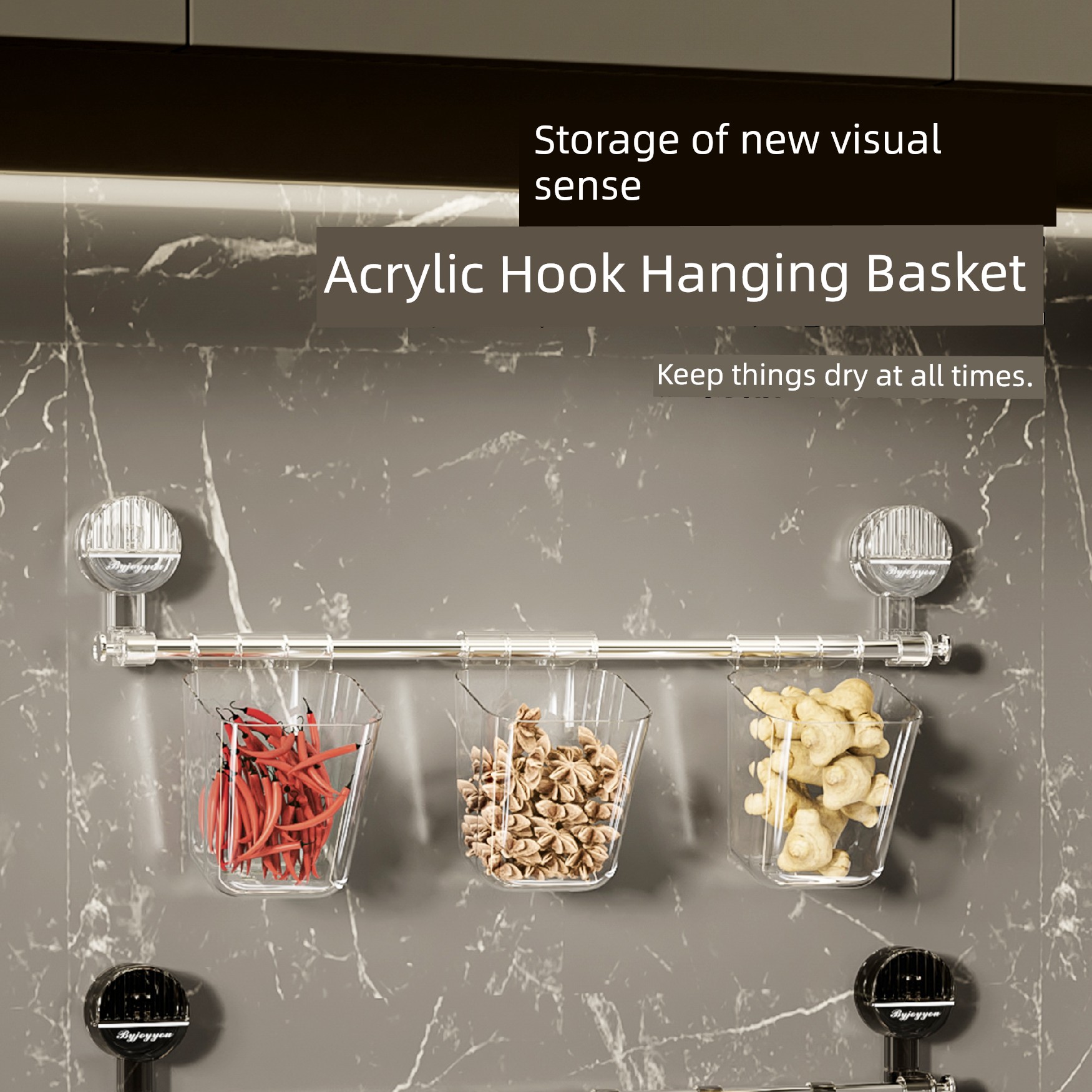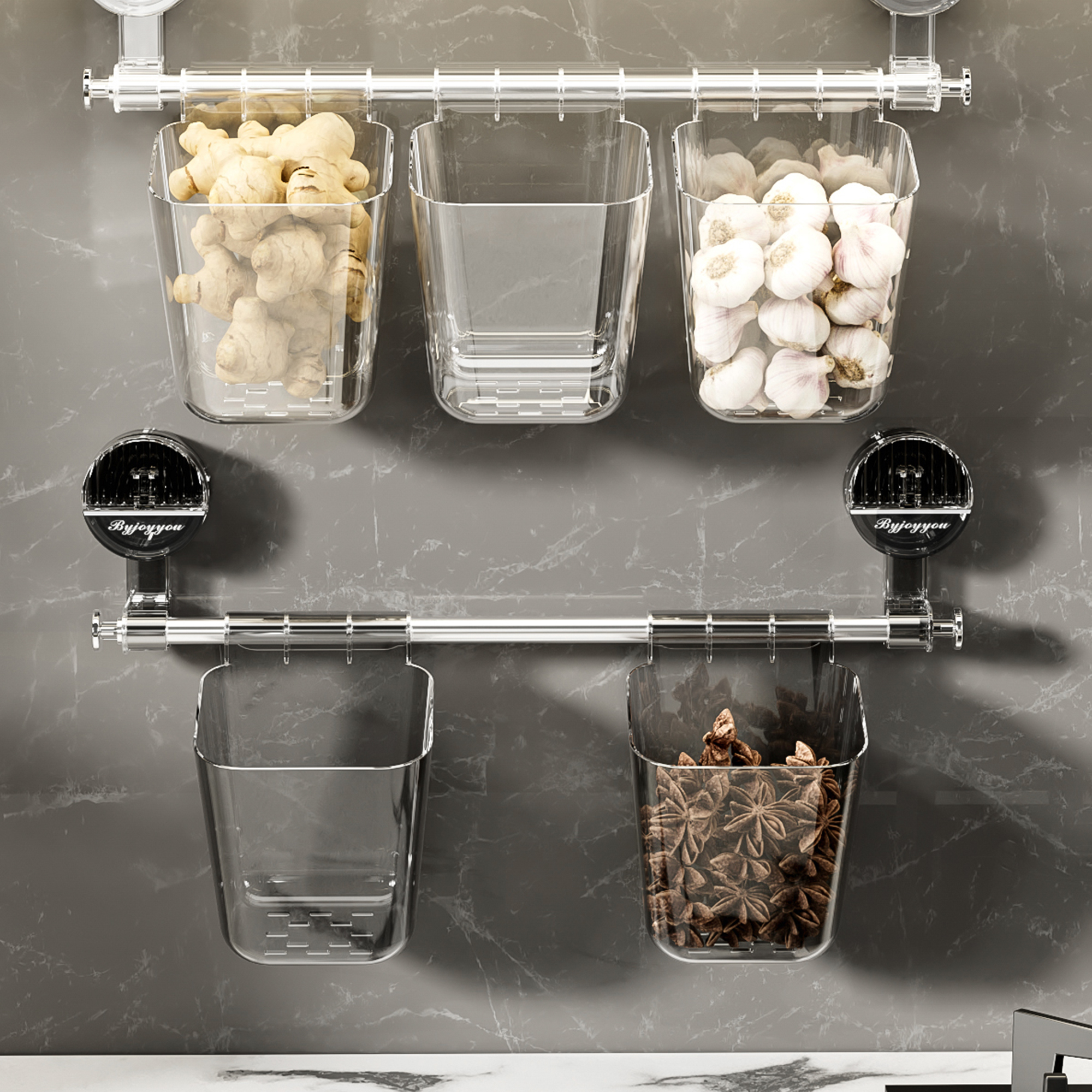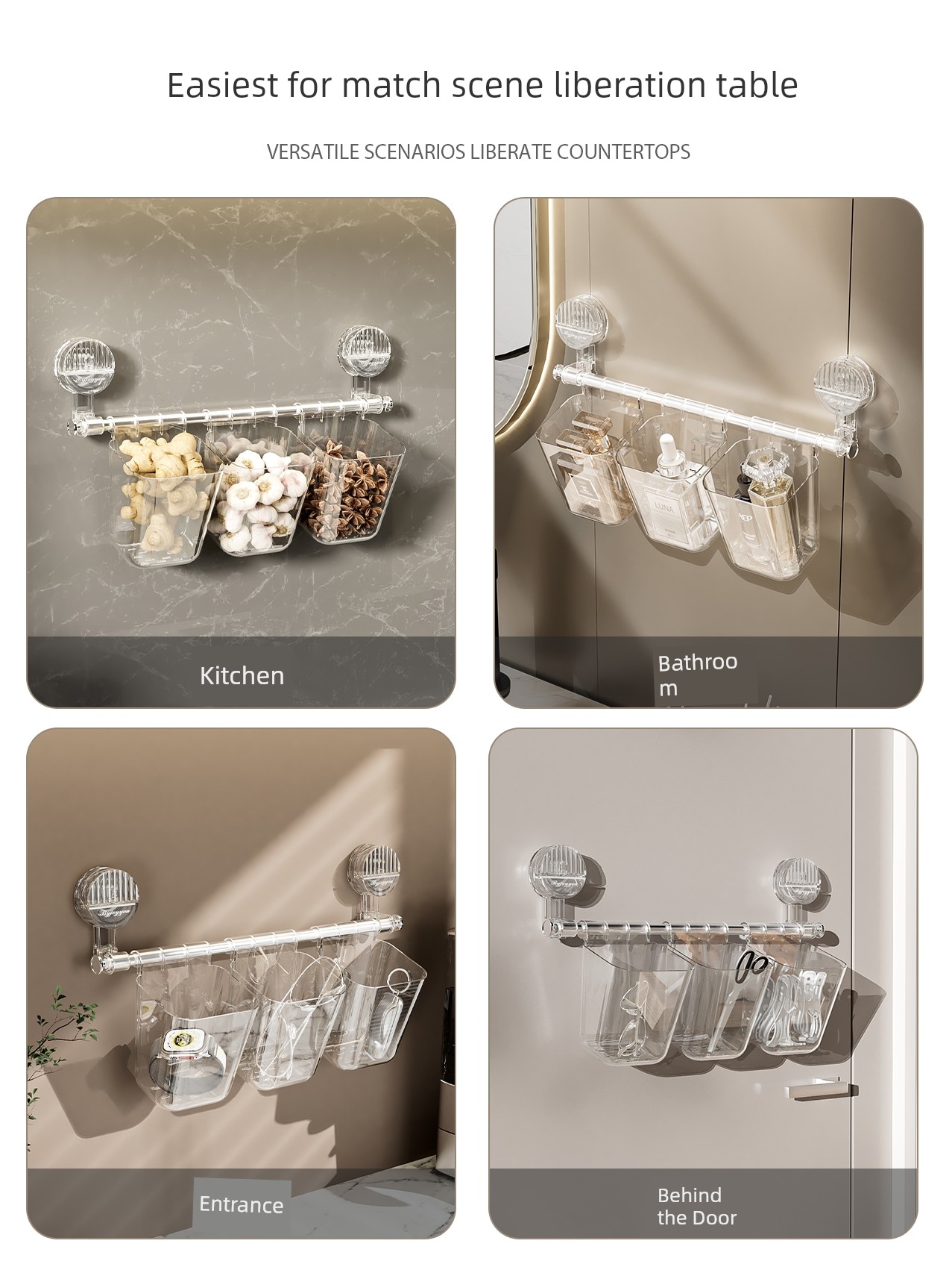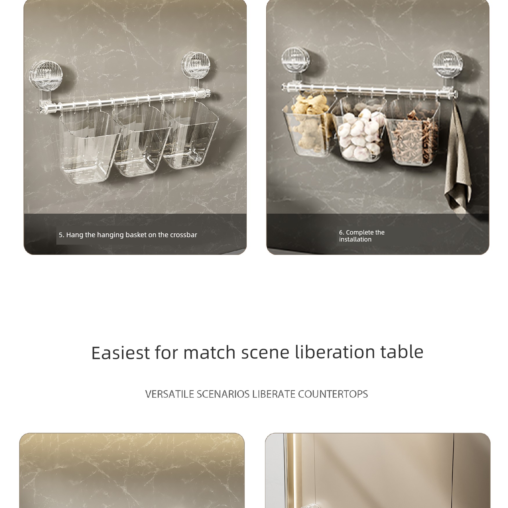 Kitchen Suction Cup Hook Punch-Free Storage Rack Hanging Spoon and Spatula Rack Multi-Functional Onion, Ginger and Garlic Hanging Basket Storage Rack