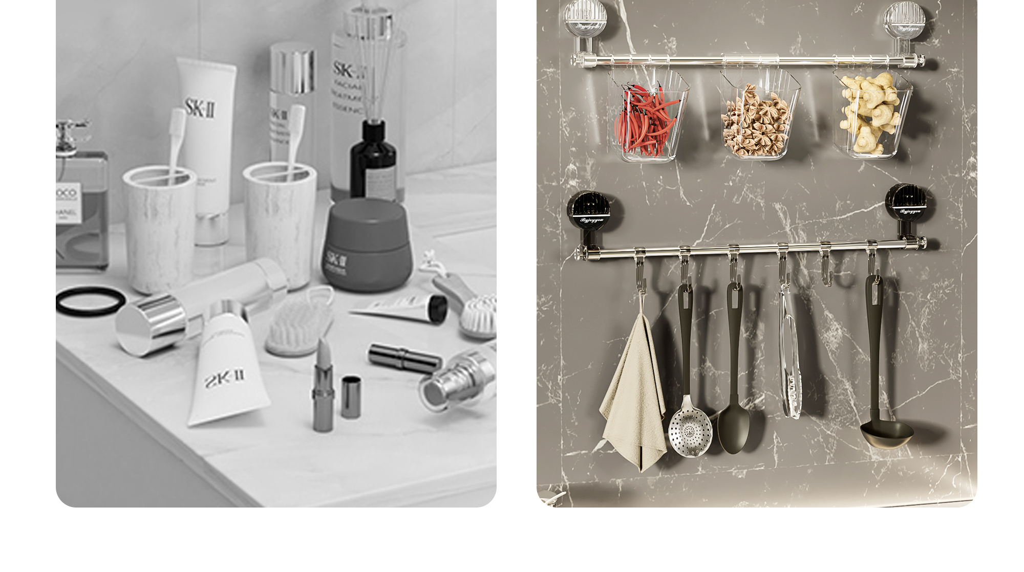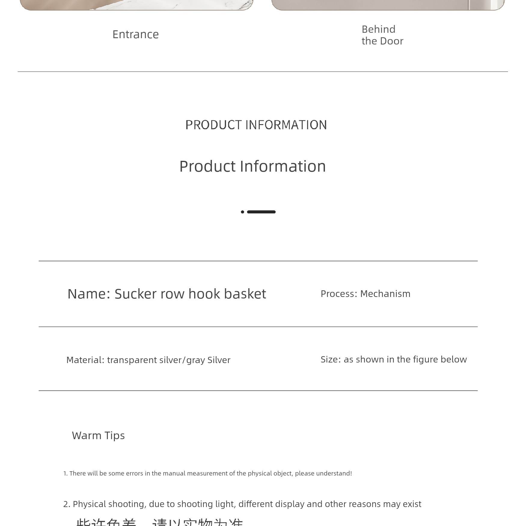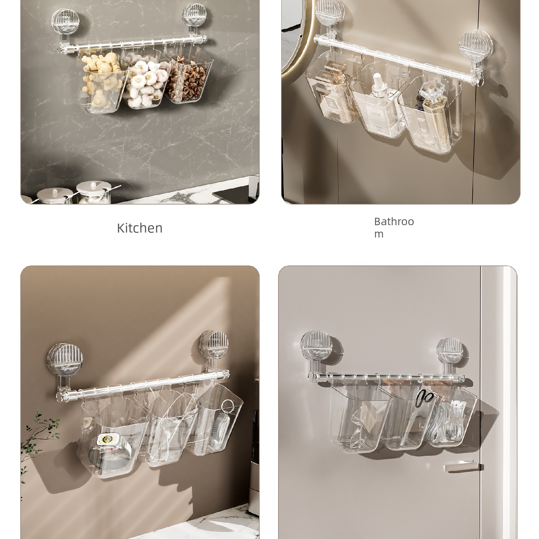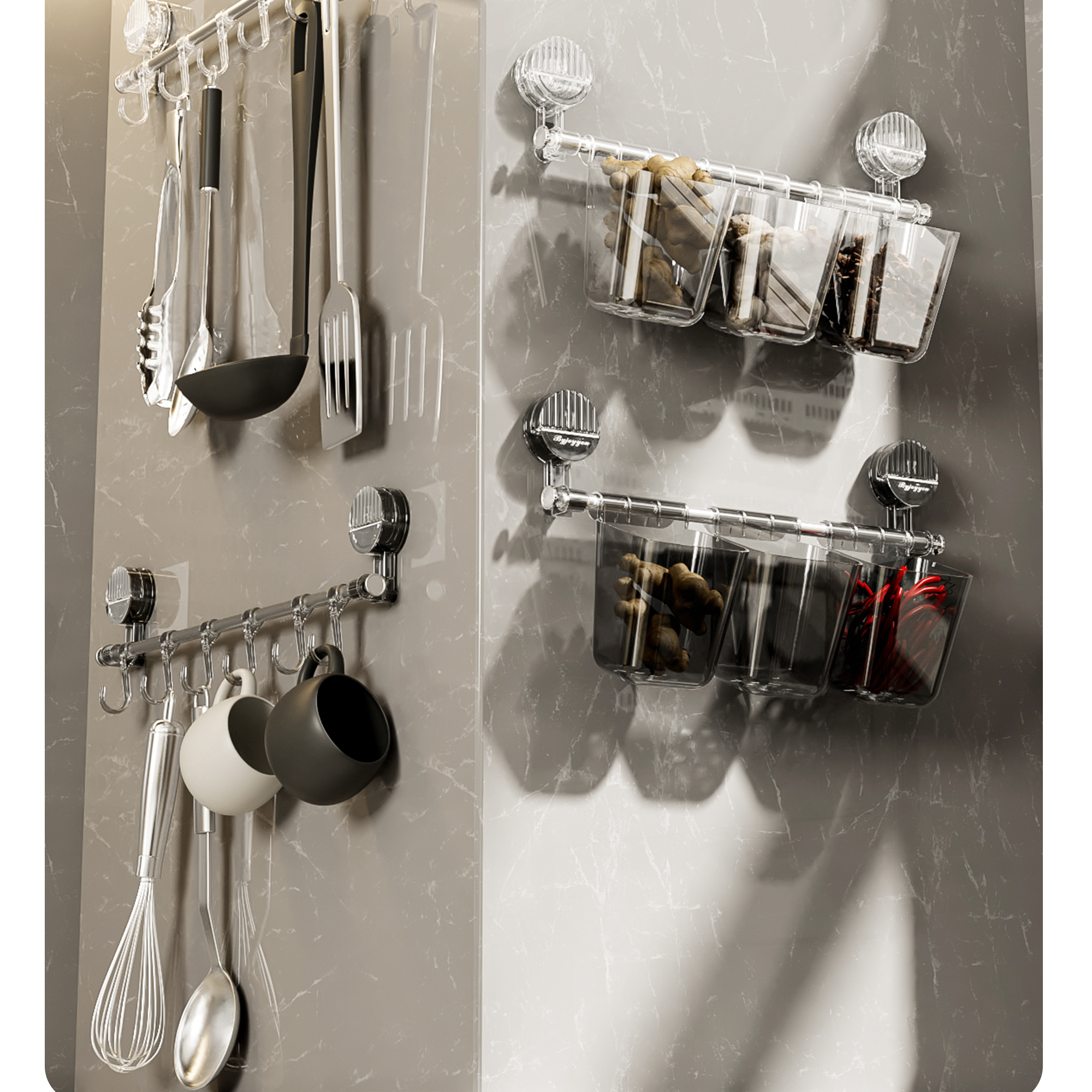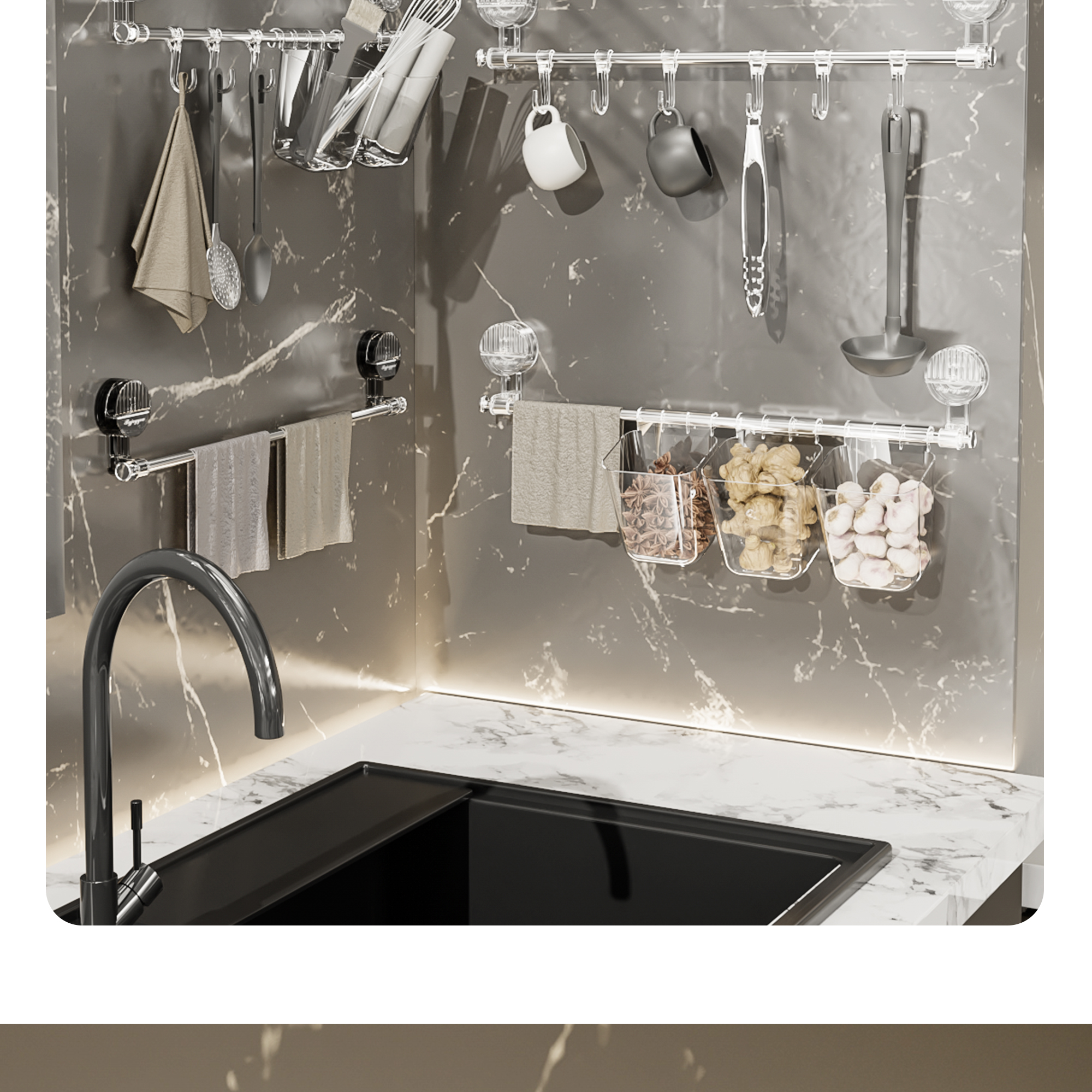 Kitchen Suction Cup Hook Punch-Free Storage Rack Hanging Spoon and Spatula Rack Multi-Functional Onion, Ginger and Garlic Hanging Basket Storage Rack