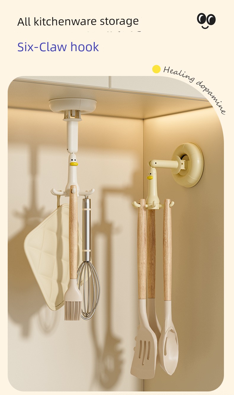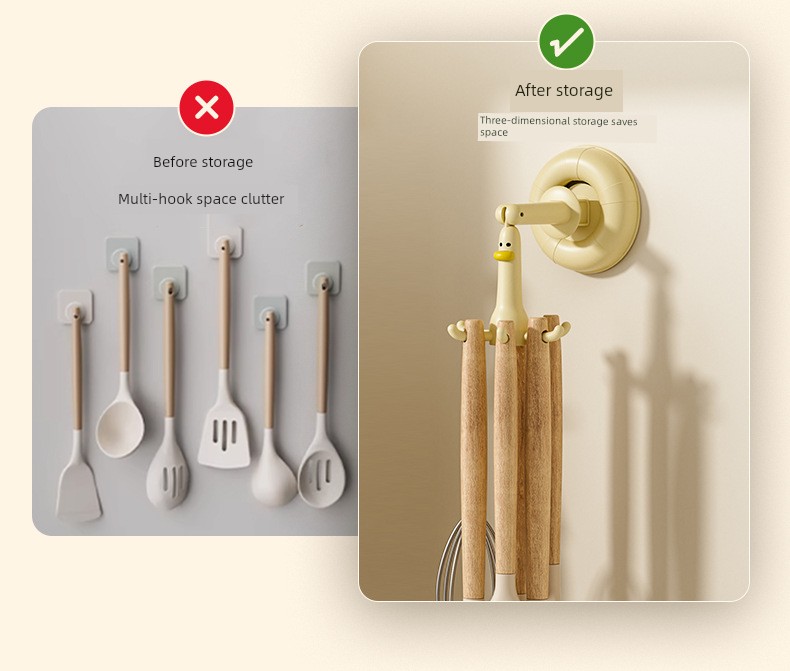 Kitchen Suction Cup Octopus Rotating Hook Punch-Free Kitchen Spatula Rack Spatula/Spoon Storage Rack