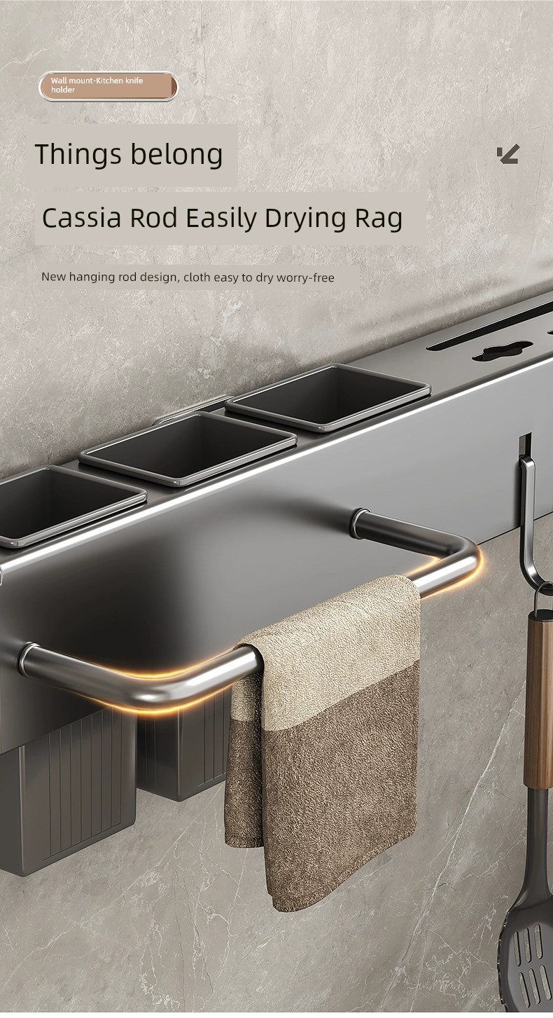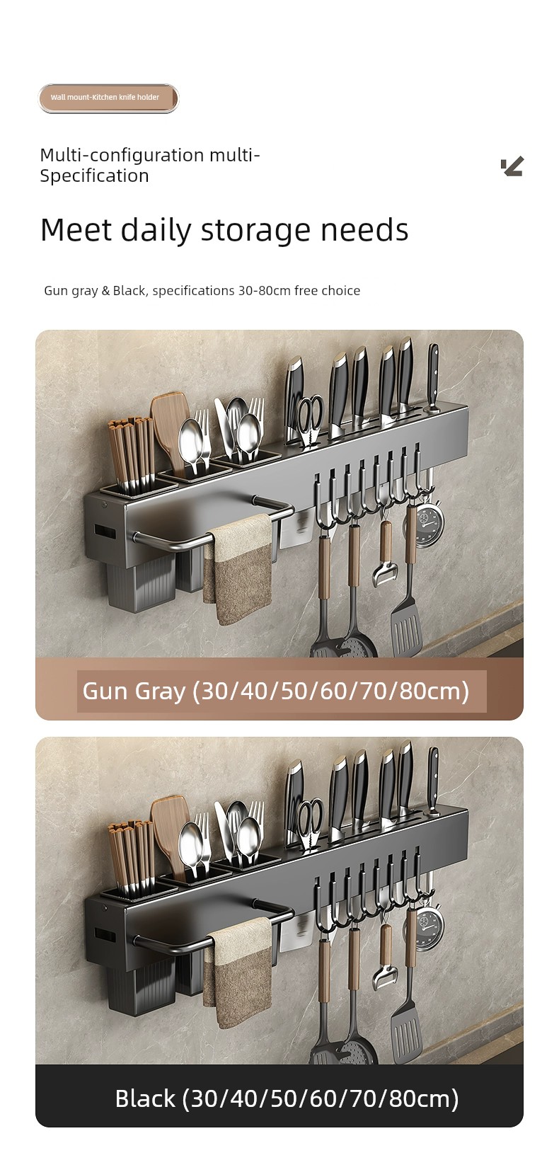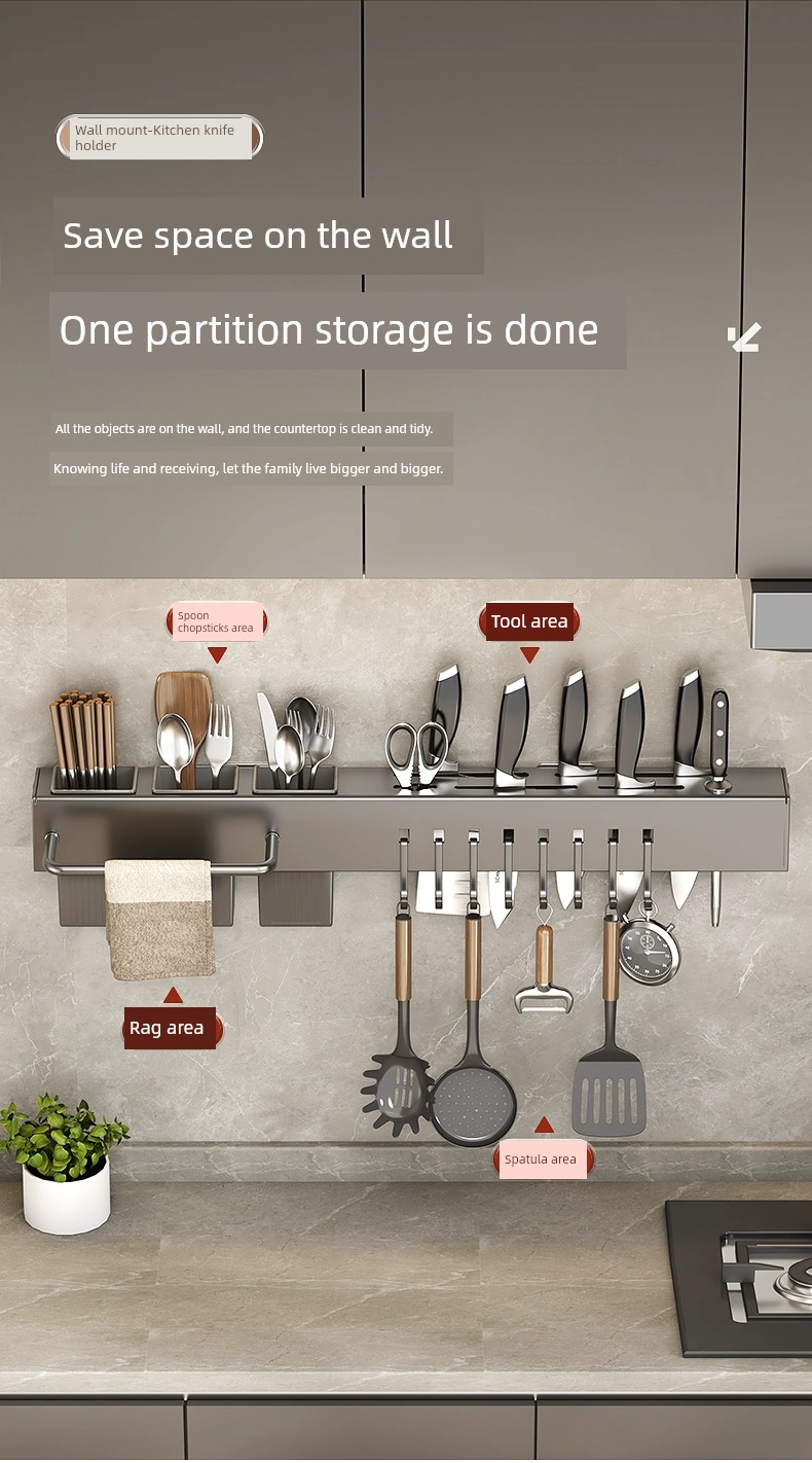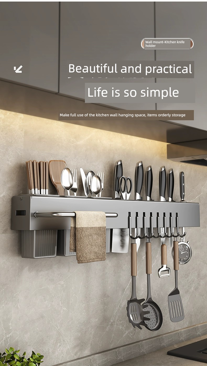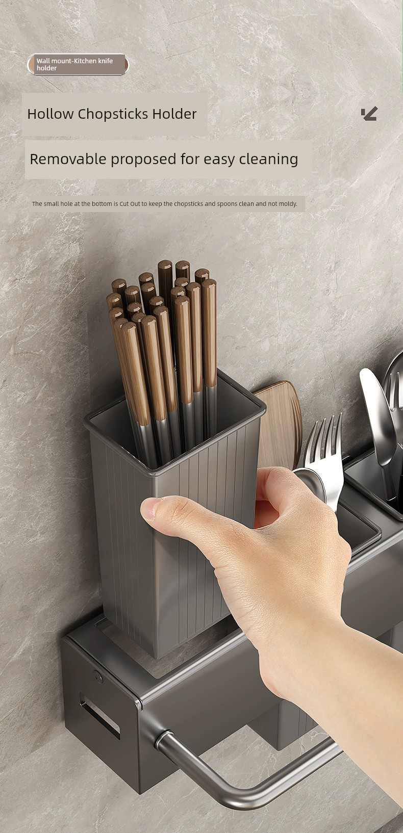 Knife Rack Wall-Mounted Punch-Free Kitchen Supplies Multi-Functional Kitchen Knife Storage Rack Knife Chopsticks Holder Integrated Storage Rack