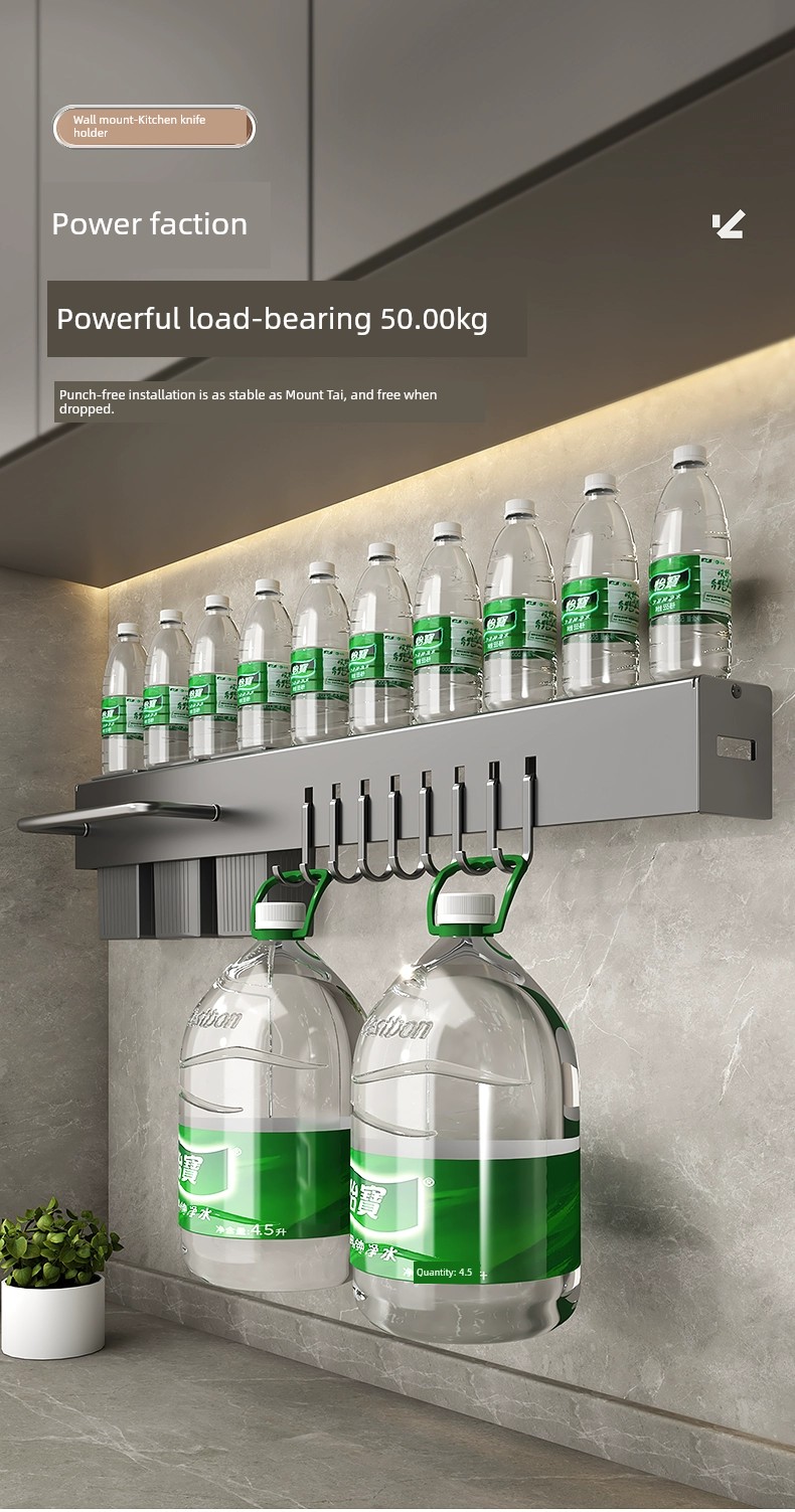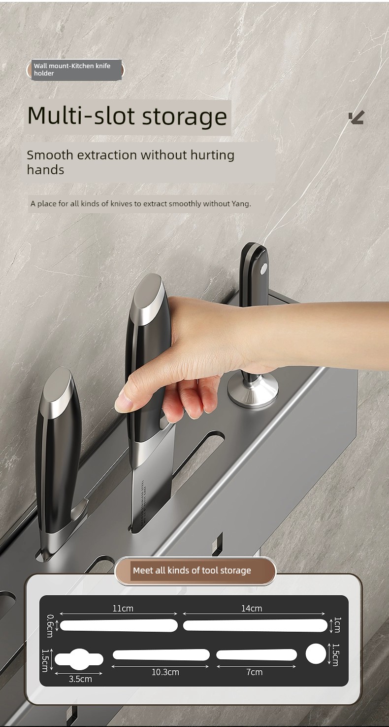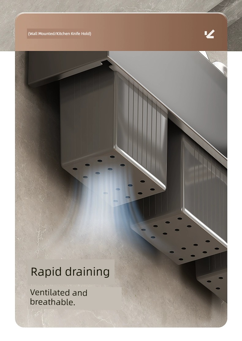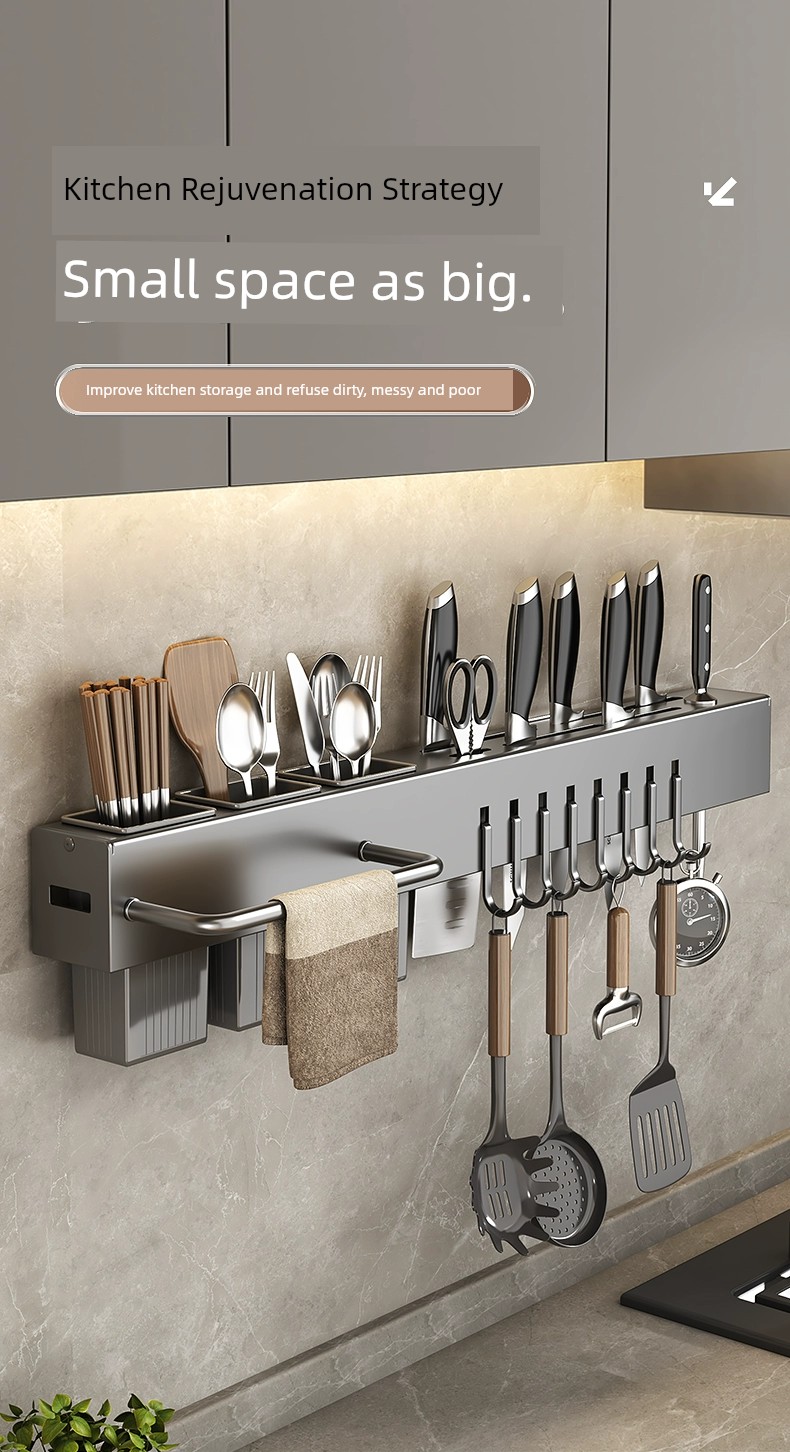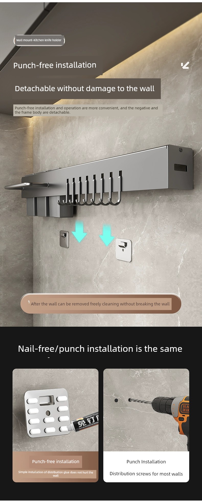 Knife Rack Wall-Mounted Punch-Free Kitchen Supplies Multi-Functional Kitchen Knife Storage Rack Knife Chopsticks Holder Integrated Storage Rack