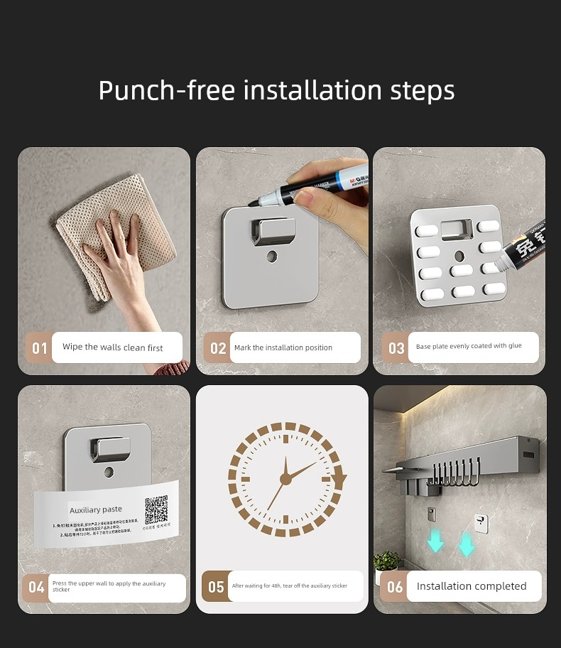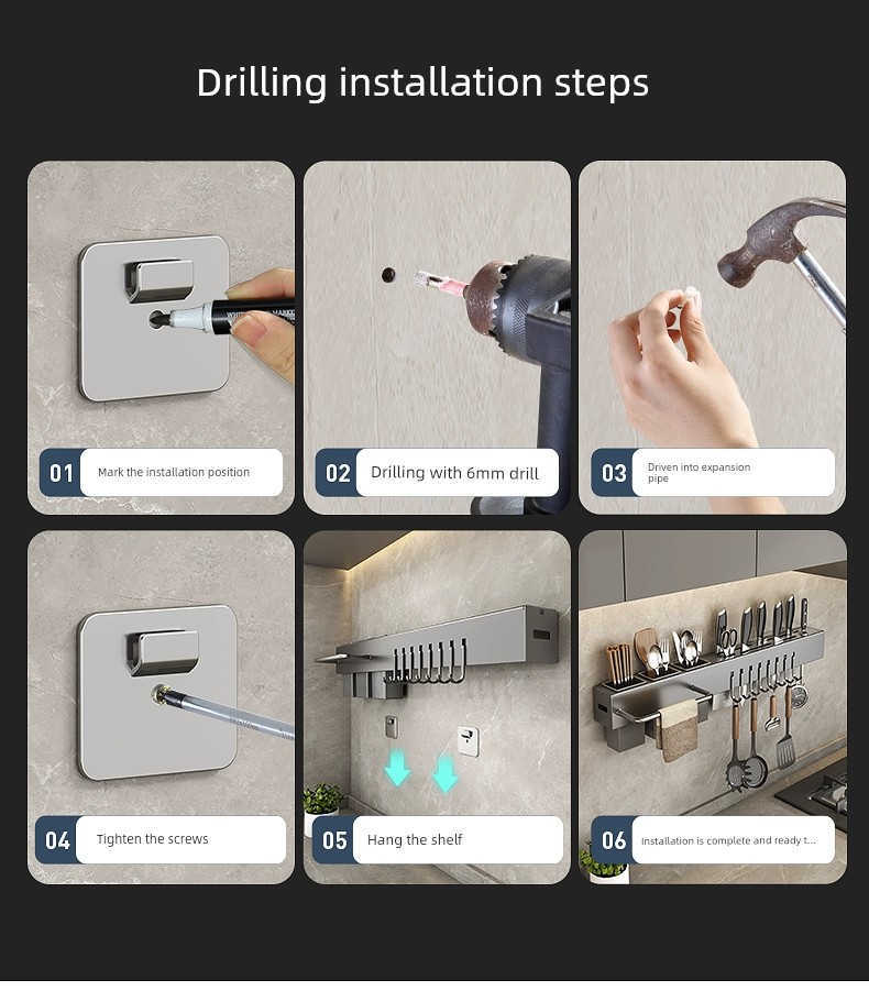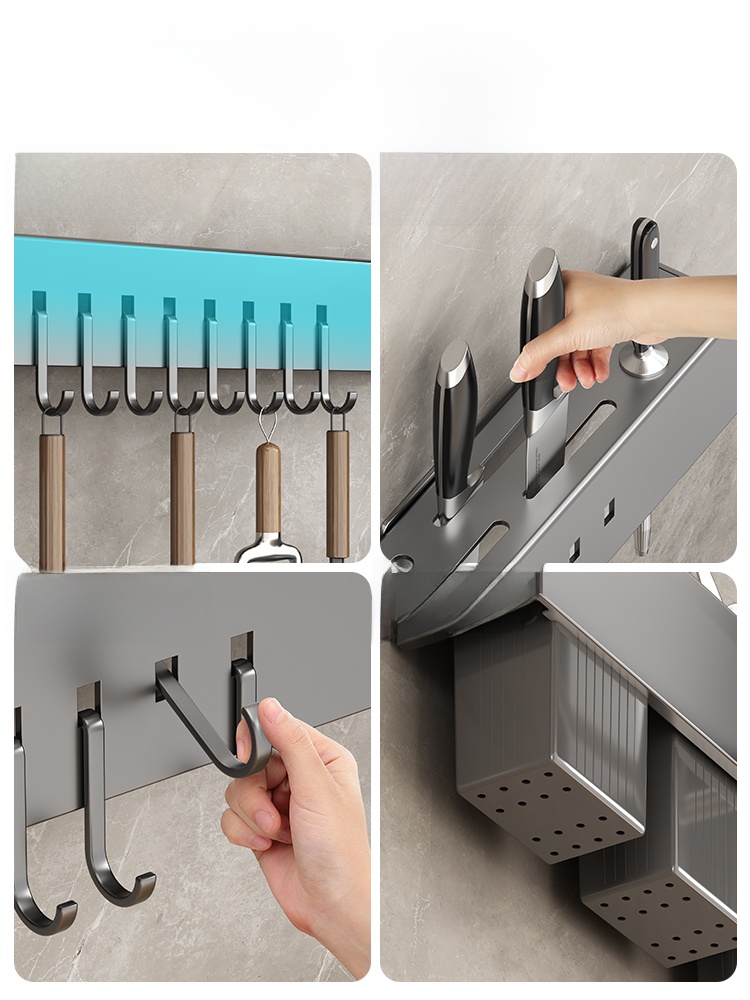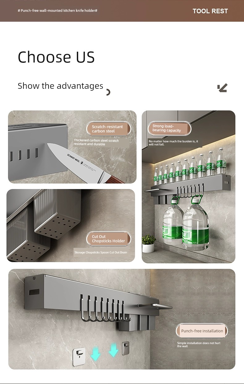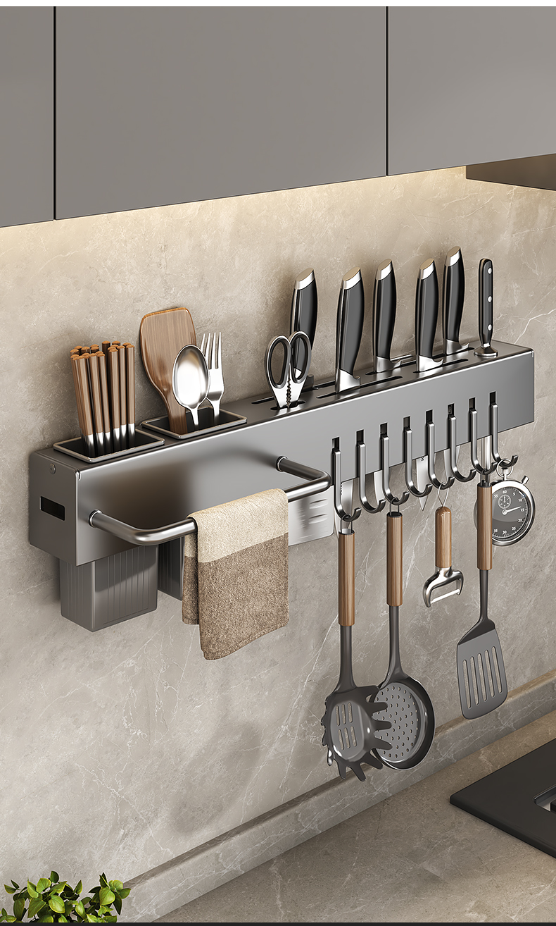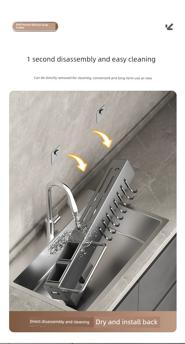 Knife Rack Wall-Mounted Punch-Free Kitchen Supplies Multi-Functional Kitchen Knife Storage Rack Knife Chopsticks Holder Integrated Storage Rack