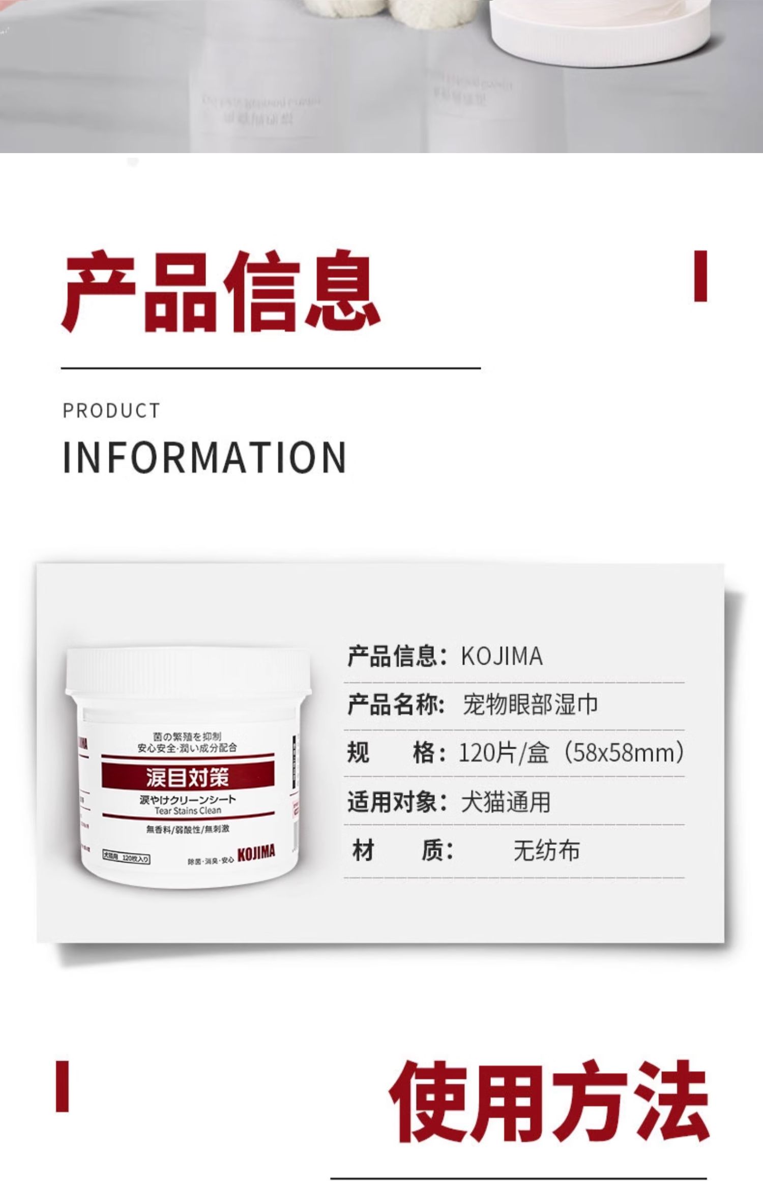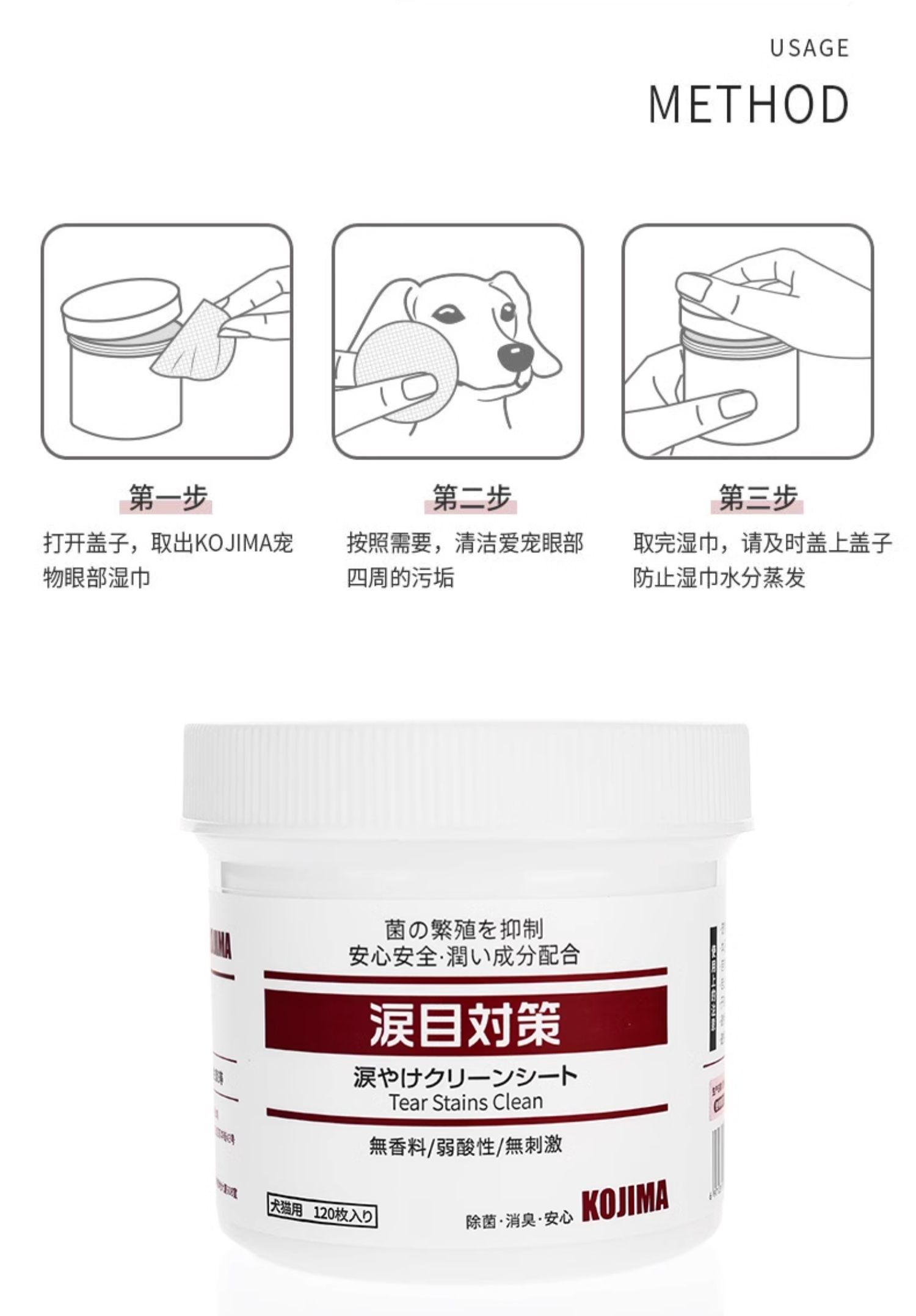 Kojima Pet Eyes Cleaning Wipes Cat and Dog Bichon Pomeranian Tear Removal Cat Eye Cleaning Supplies