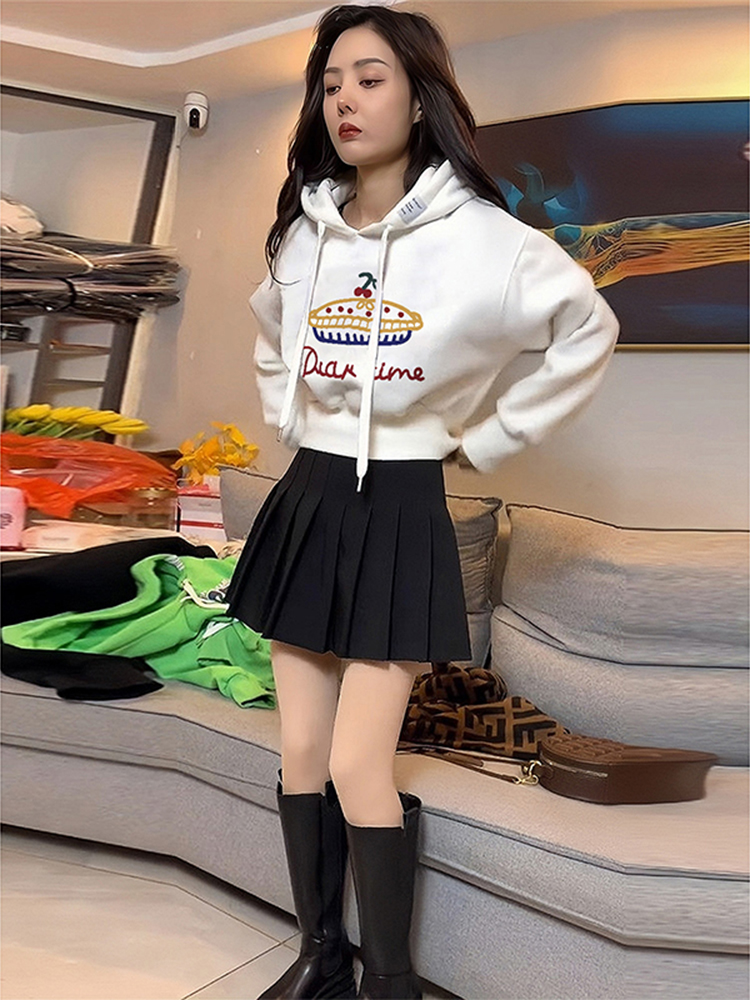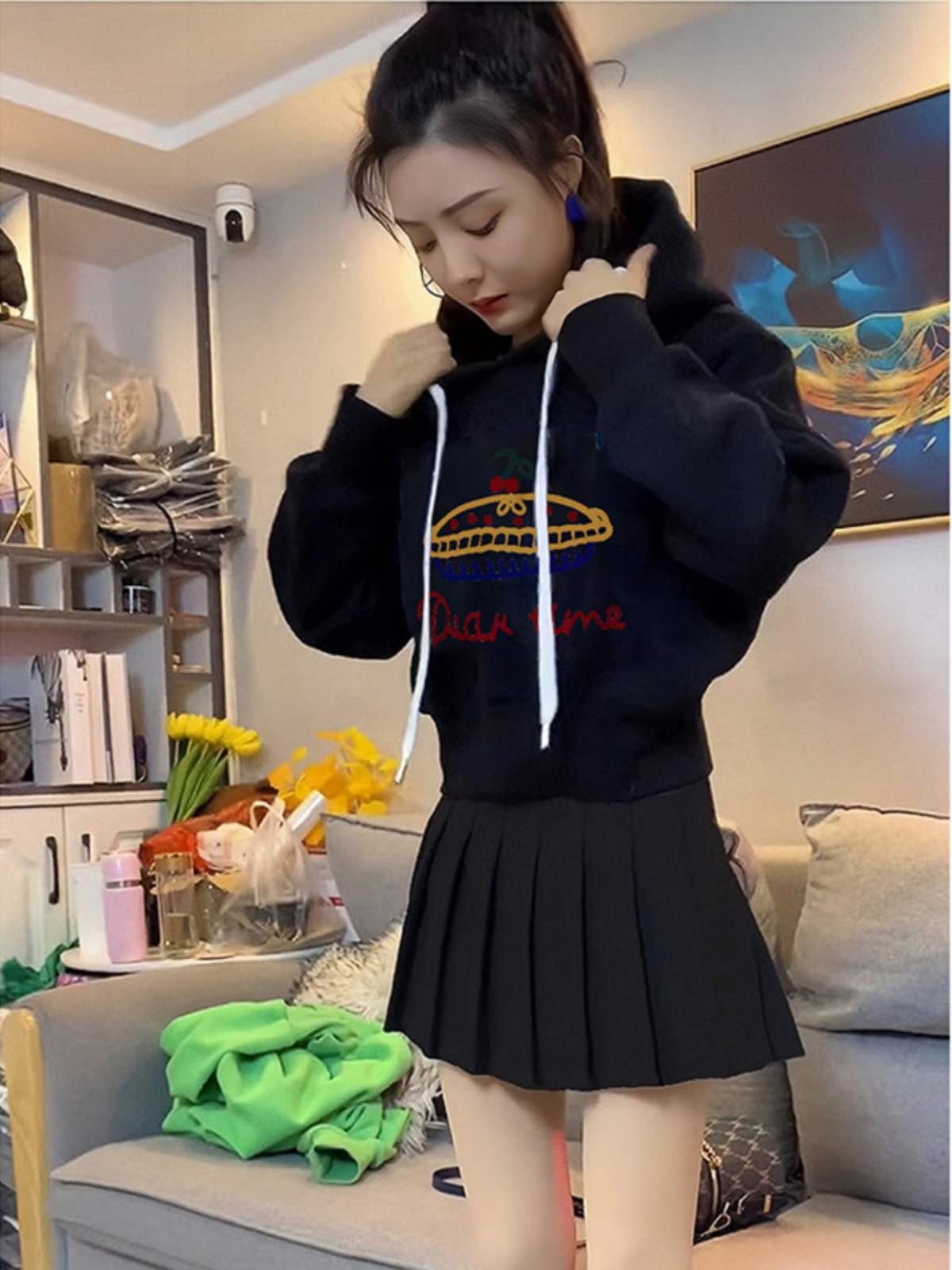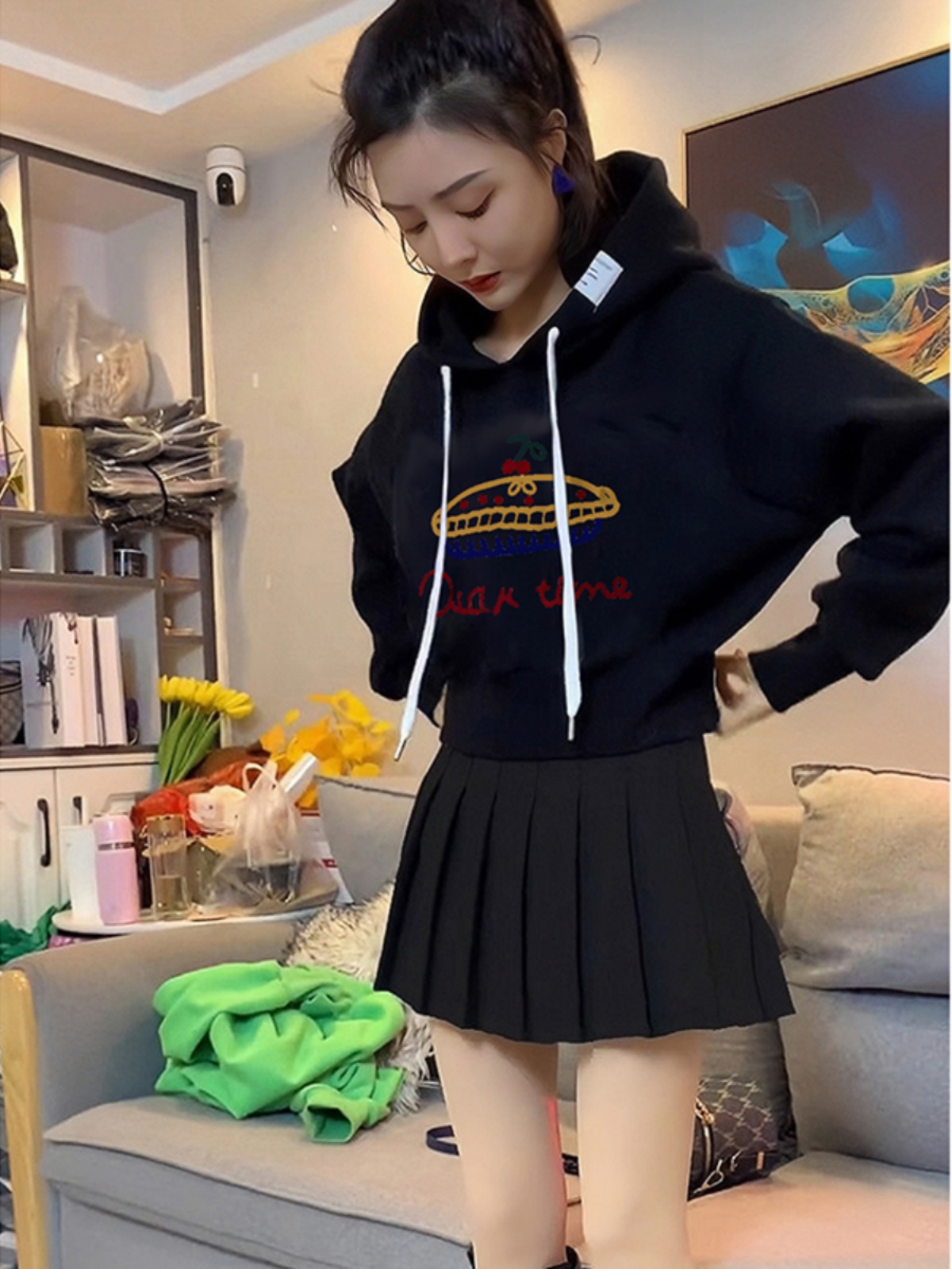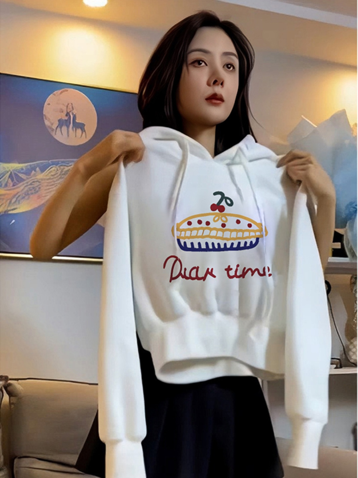 Korean Creative Cake Jacquard Hooded Sweatshirt Female Spring & Fall 2025 New Arrival Fashion Fancy Waist-Tight Anti-Aging Top