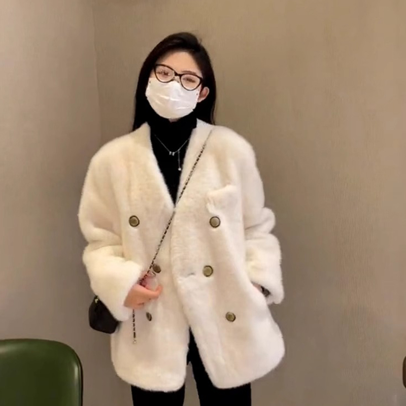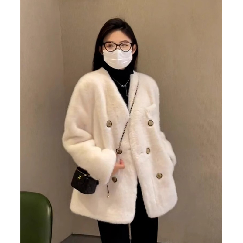 2024 Winter New Korean Fashion Plush Long Sleeve Outerwear - Fleece-Lined Thickened Warm High-Grade Top