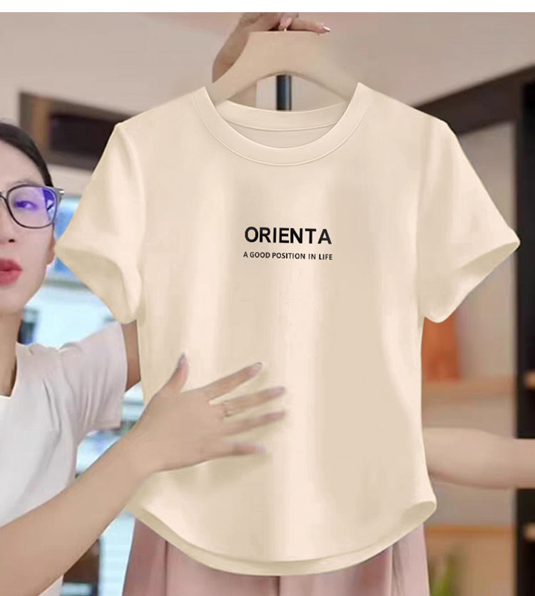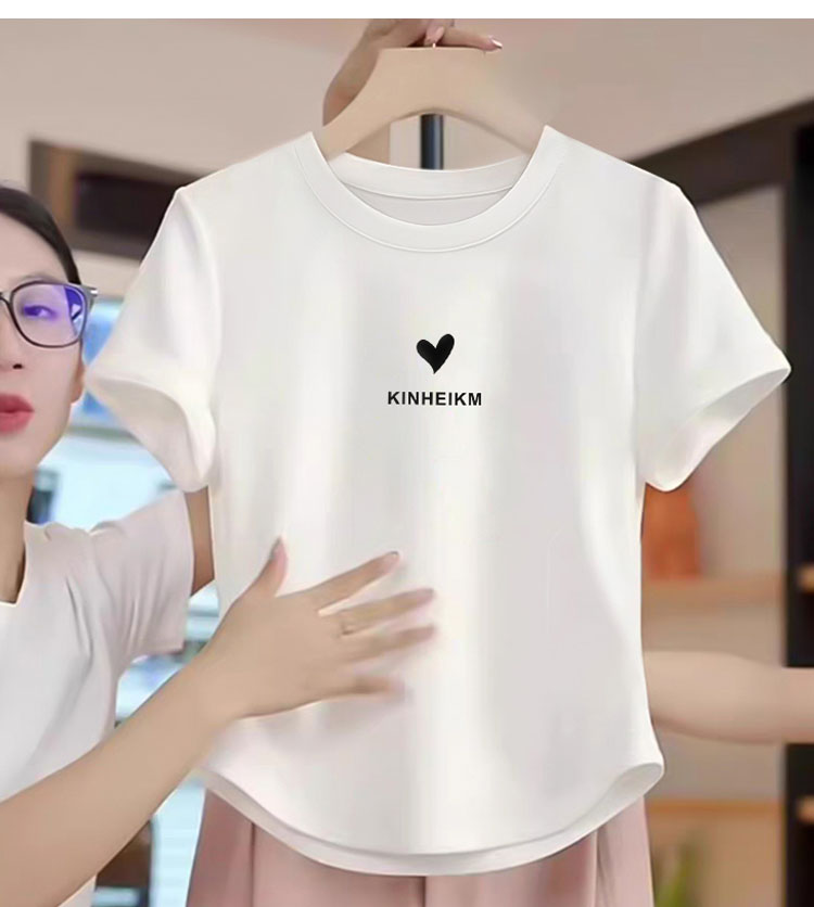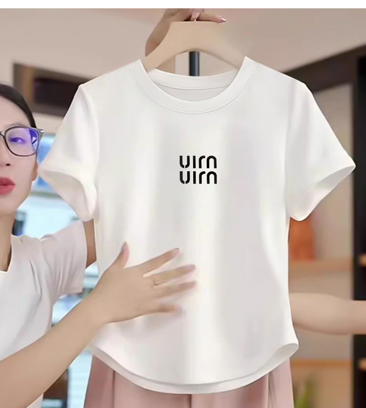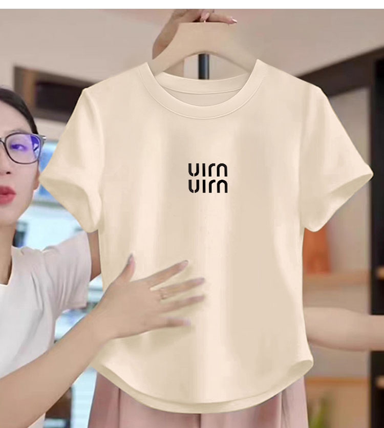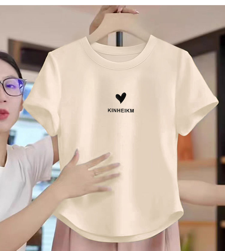 Korean Style Arc Design Slimming round Neck Fancy Short Pure Cotton T-shirt Women's Summer Niche Style Short Sleeve Tops Fashion