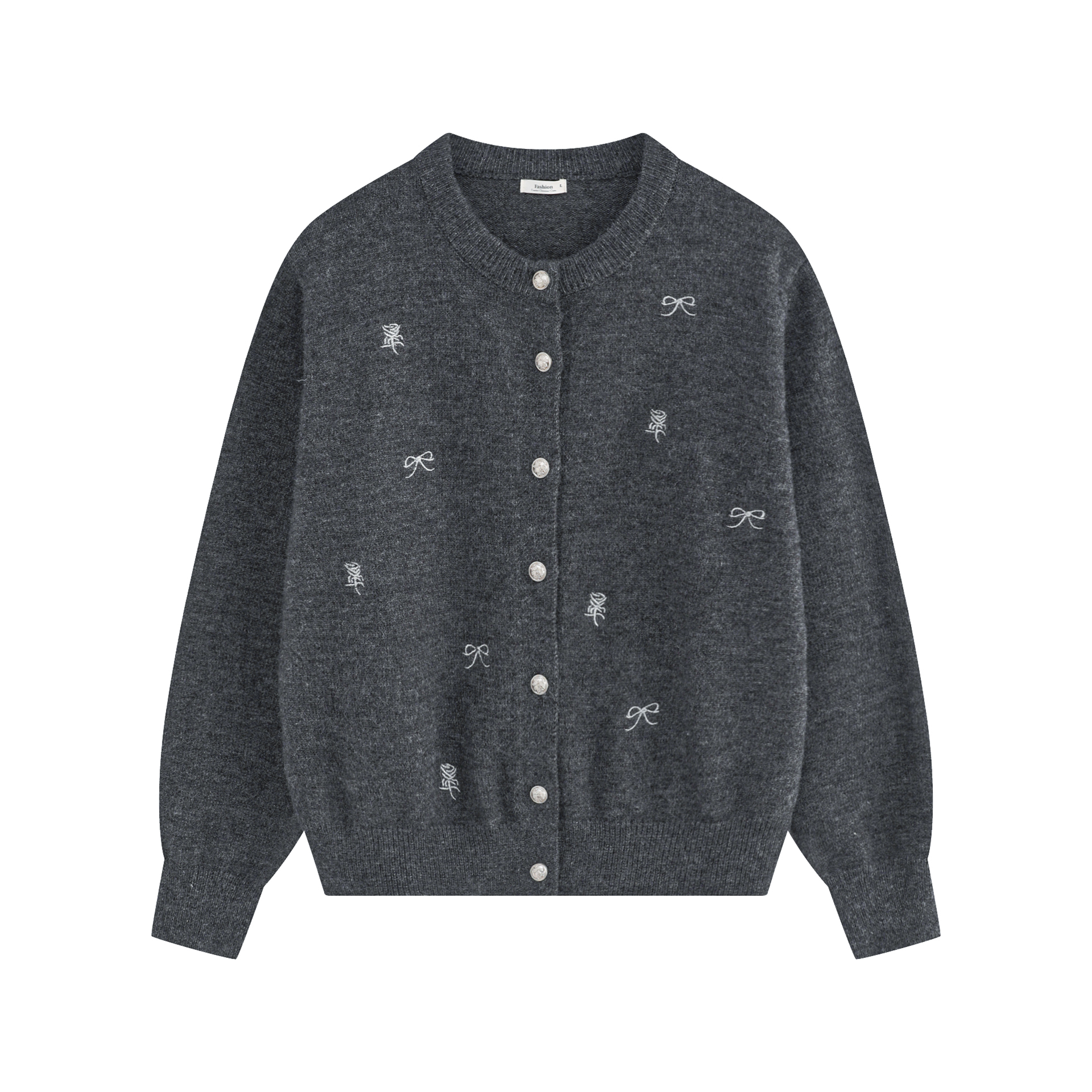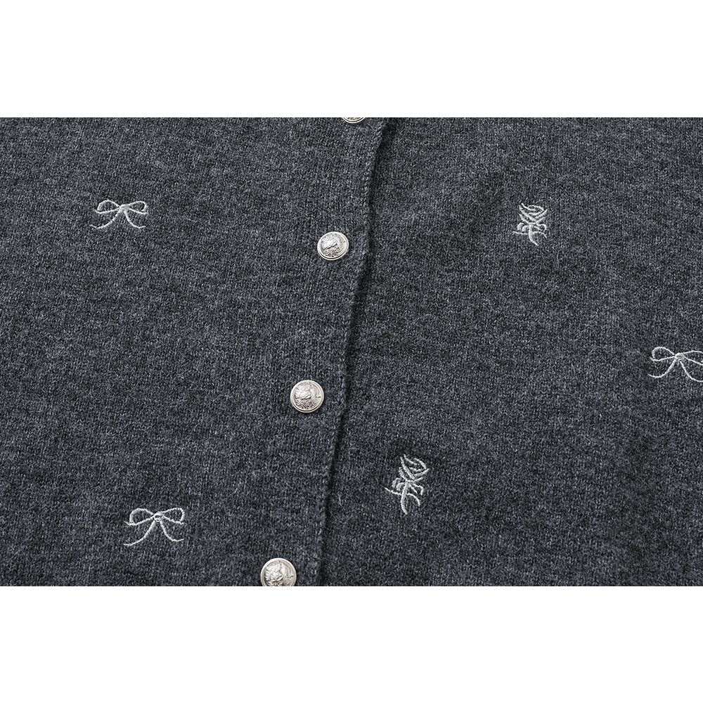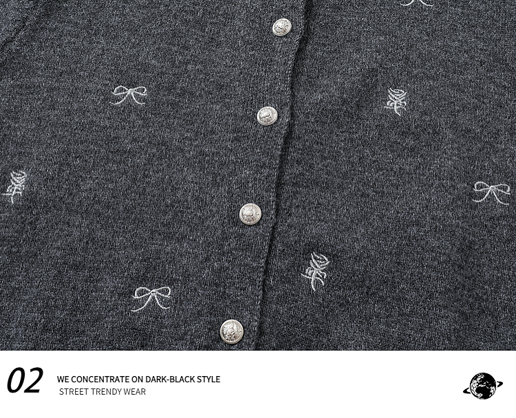 Korean Style Chic Bows Embroider Knitting Cardigan Women's Autumn Idle Style Loose Slim Looking Unique Super Nice Tops