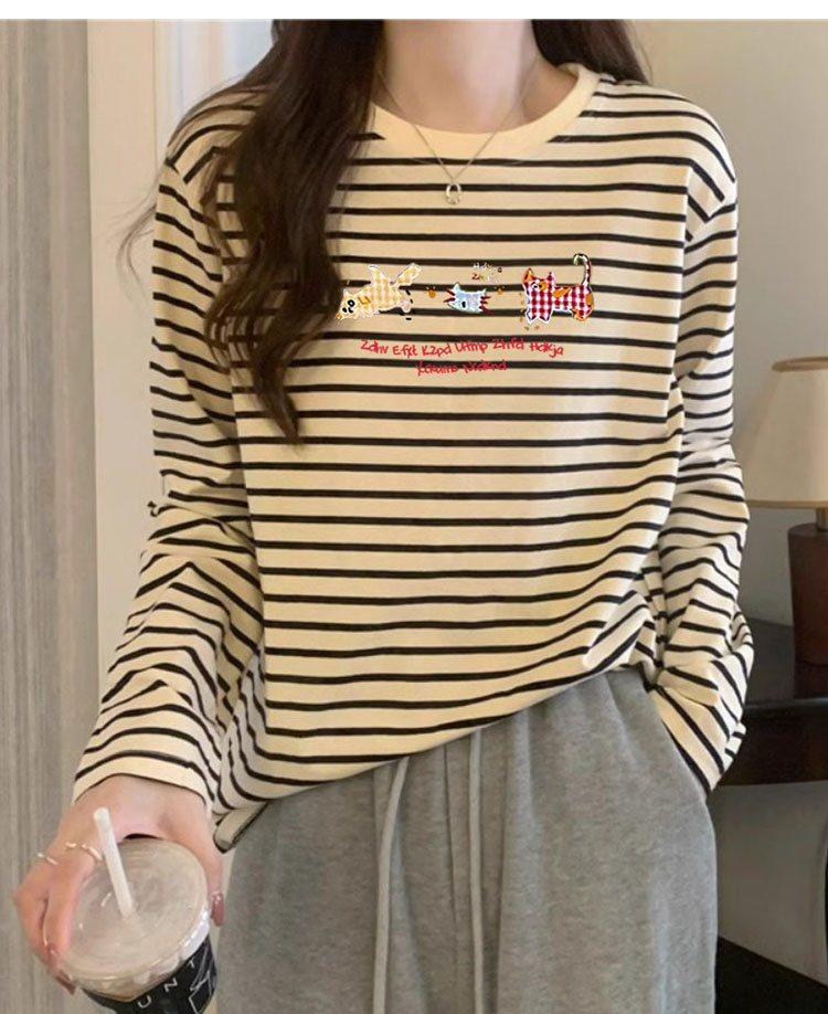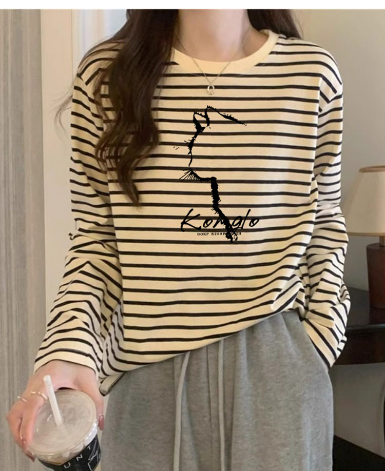 Korean Style Contrast Color Striped Crew Neck Long Sleeves T-shirt Bottoming Shirt Women's Fall and Winter Double-Sided Dralon Inner Wear Heattech T-shirt Top