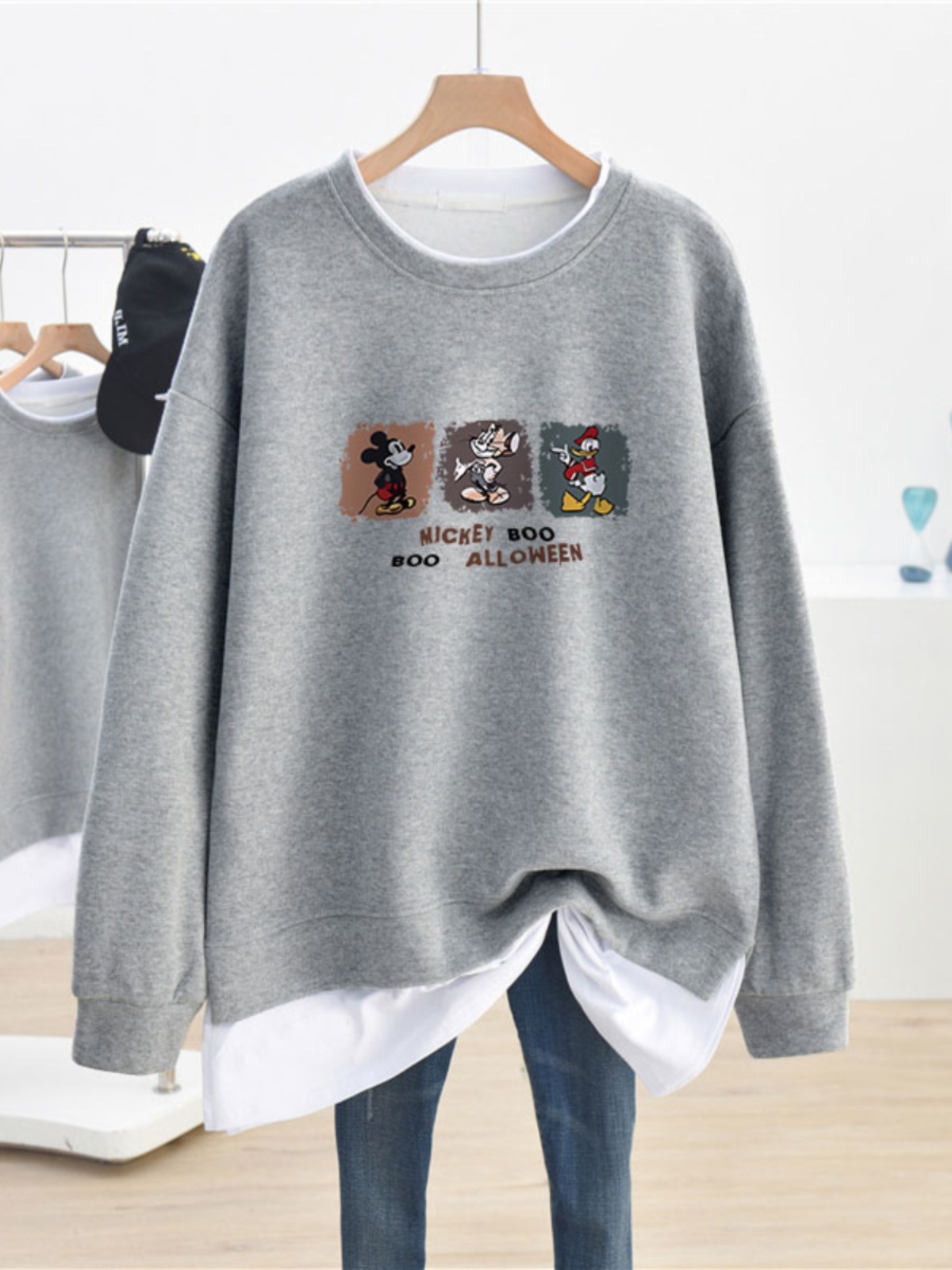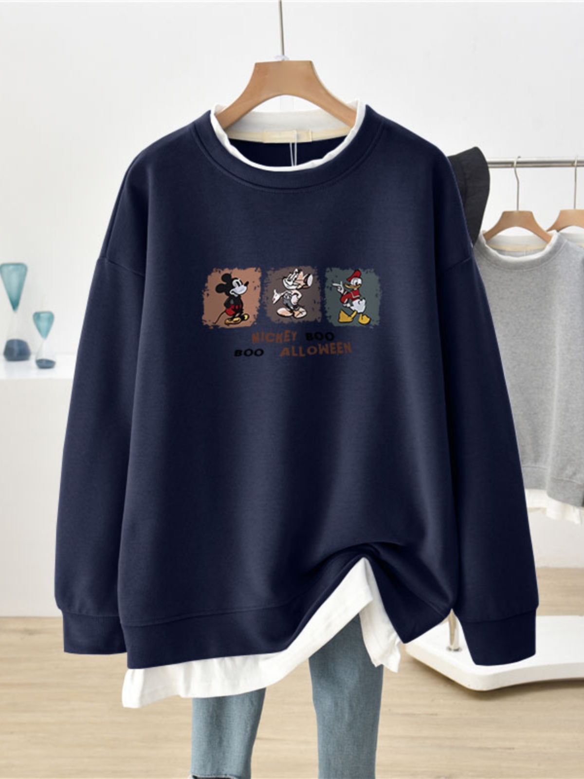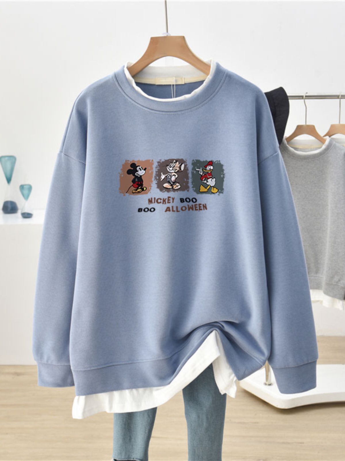 Korean Style Idle Style round Neck False Two Pieces Autumn and Winter Fleece Sweater Women's 2025 New Arrival Plus Size Plus Size Ladies Hooded Top Clothes