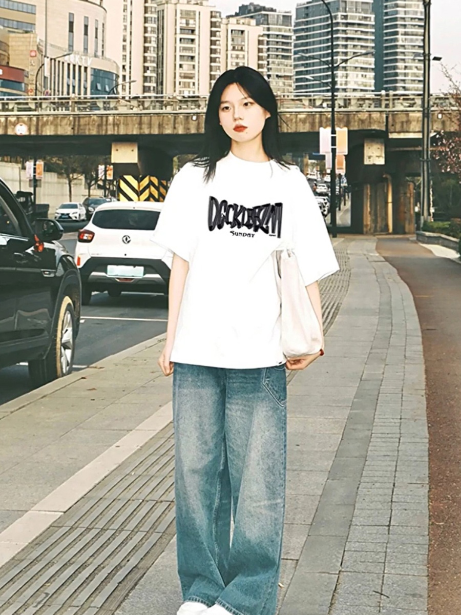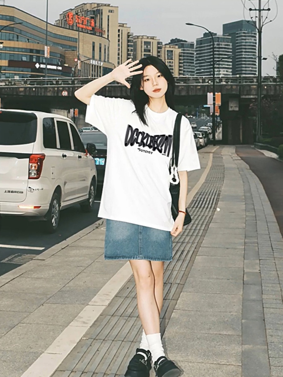 Korean Style White Short Sleeve T-shirt Top Women 2025 New Arrival Summer Niche Style Unique Loose Design Pure Cotton Half Sleeve