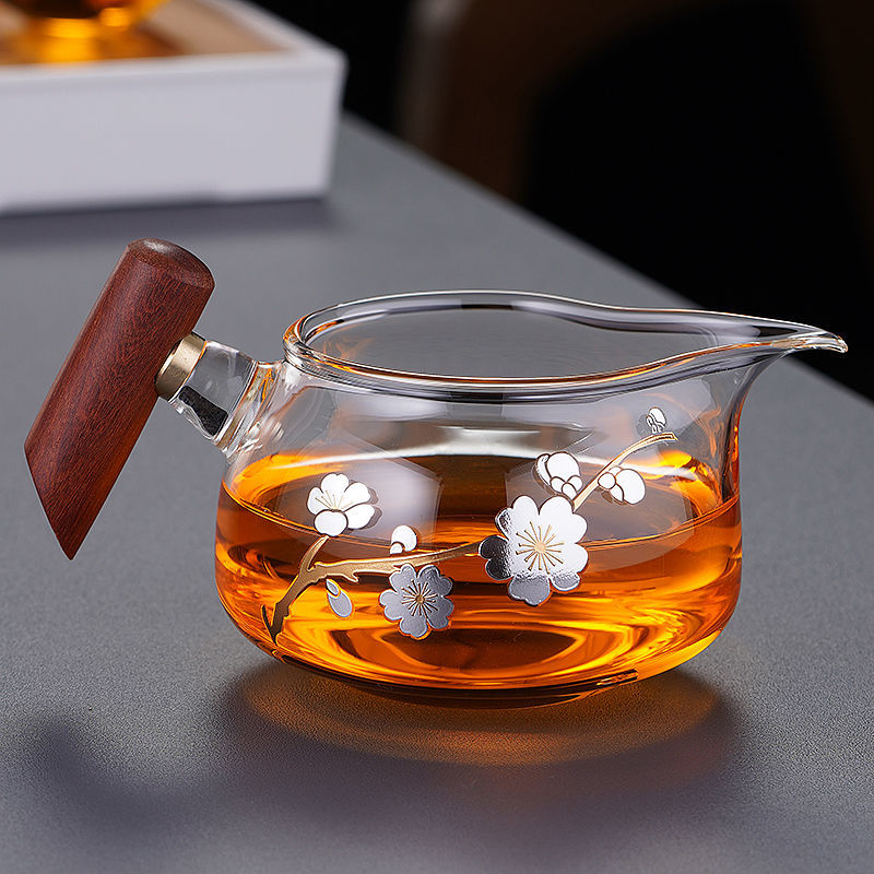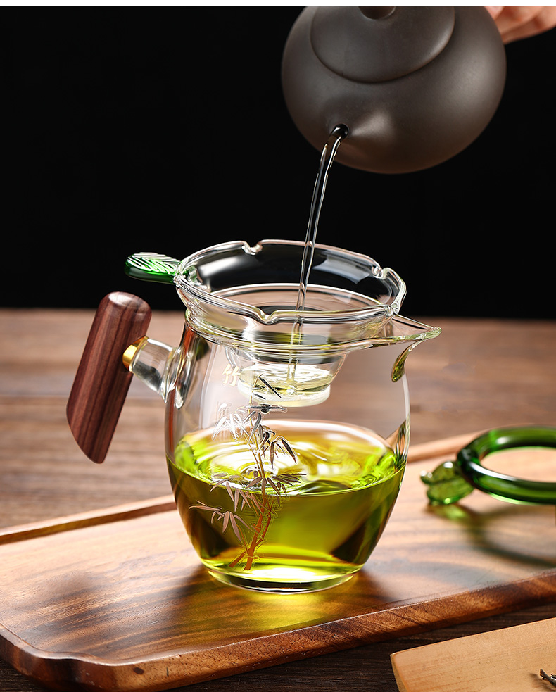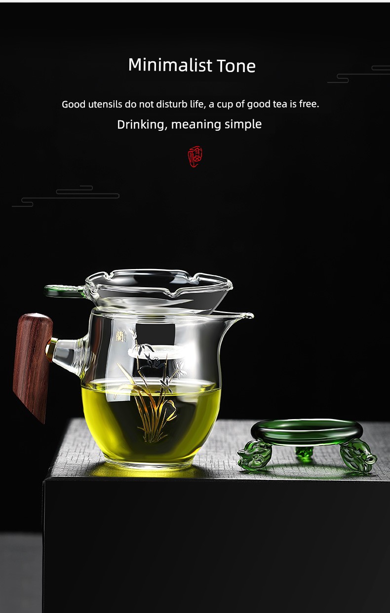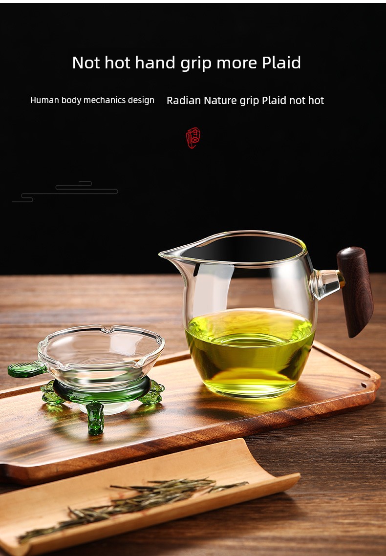 Kung Fu Tea Teaware Tea Pitcher Temperature Borosilicate Glass Fair Cup Tea Funnel Filter Net Tea Pot Side Handle Good-looking Crescent Moon