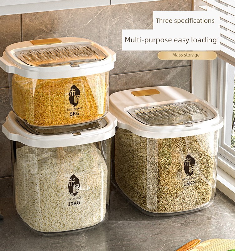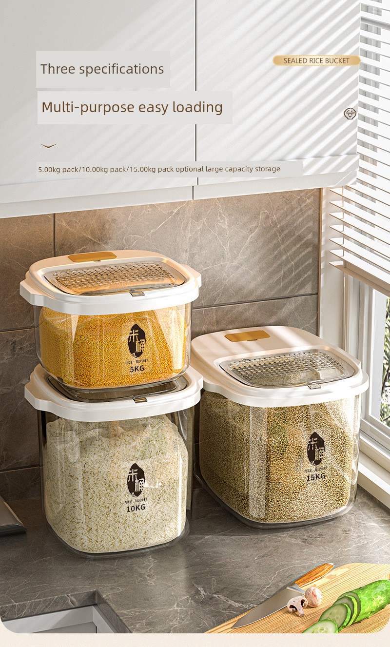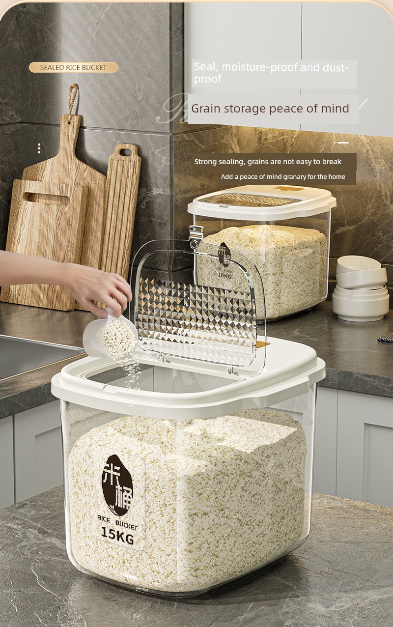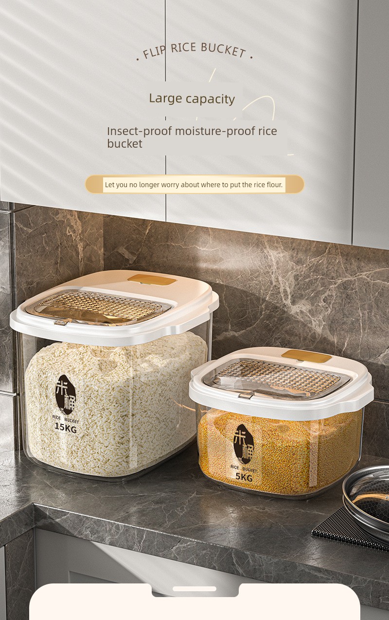 Large Capacity Household Rice Bucket Insect-Proof Moisture-Proof Sealed Flip Quantitative Rice Box Rice Pot Rice Noodles Collection and Storage Container