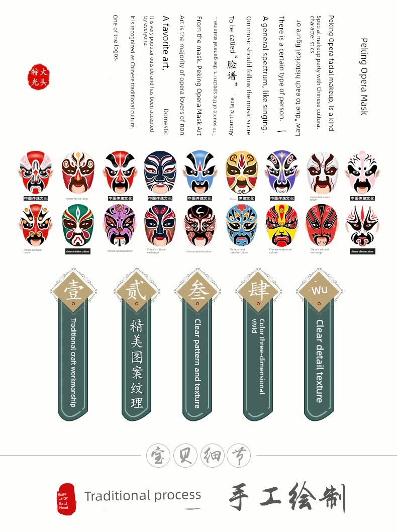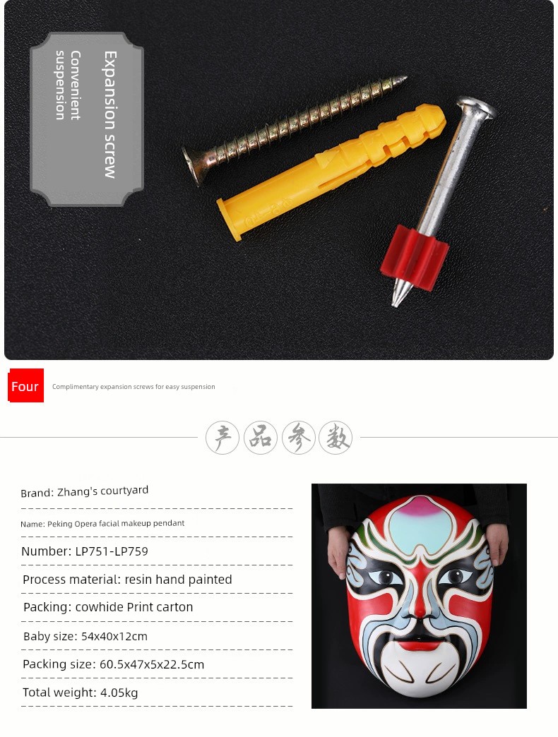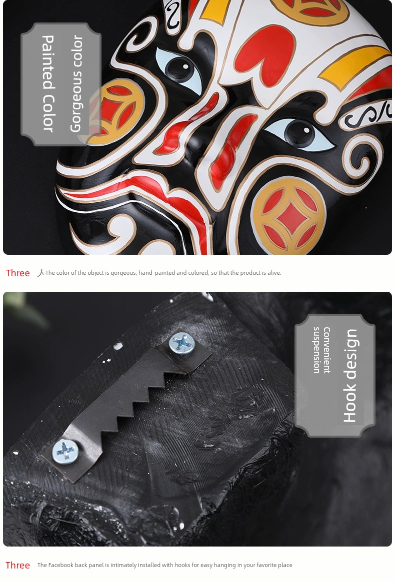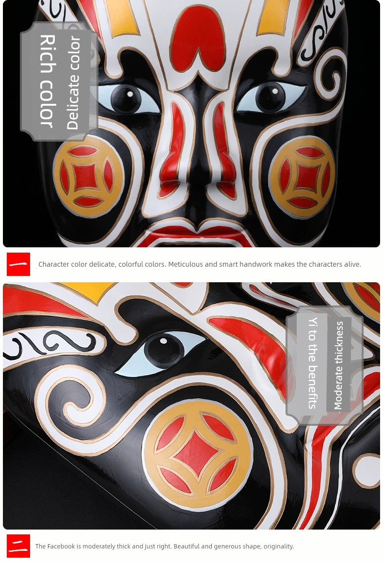 Large Peking Opera Sichuan Opera Facial Makeup Pendant Mask Hot Pot Shop Decoration God of Wealth Wall Hanging Chinese Characteristic Classical Decoration