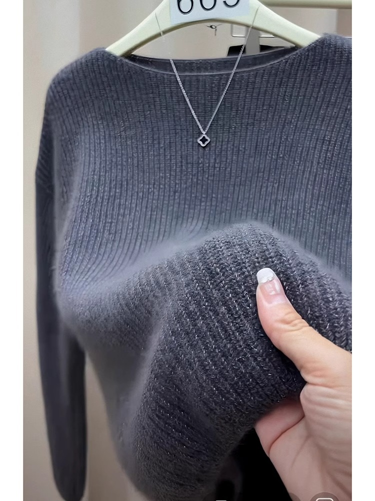 Lazy Fashion Pure Color round Neck Soft Glutinous Sweater Female 2025 Spring New Arrival Elegant Slim Looking Casual Versatile Long Sleeves