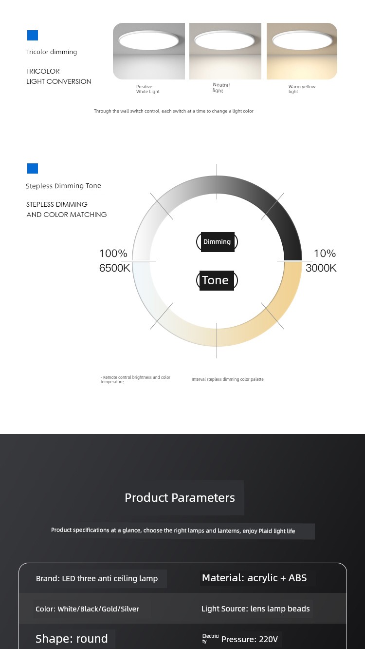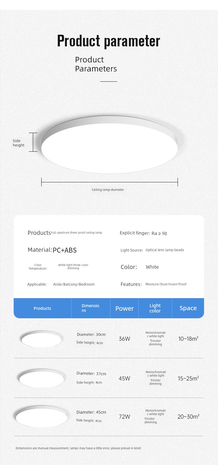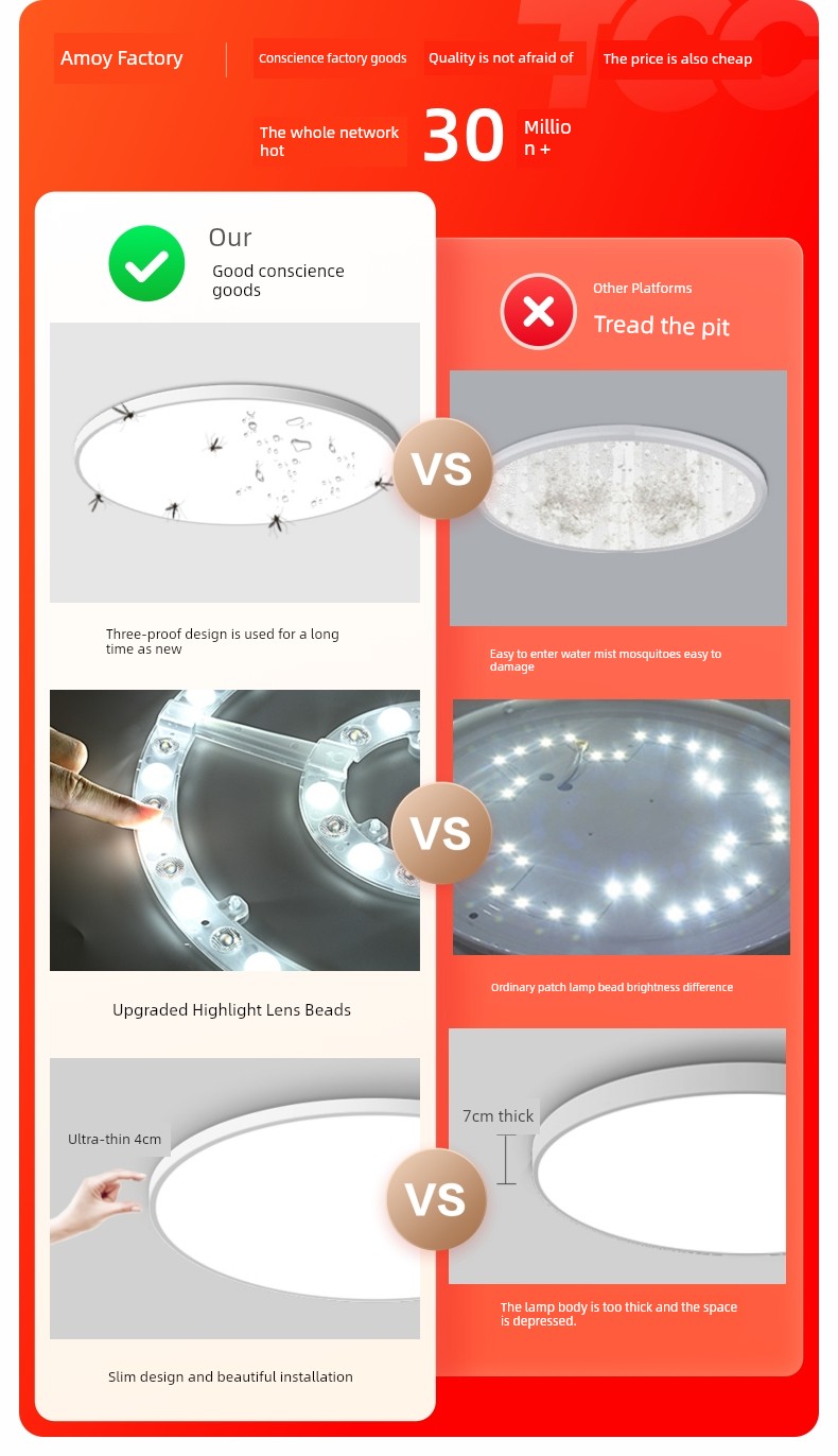LED Living Room Bedroom Kitchen Super Bright Three-Proof Ceiling Light