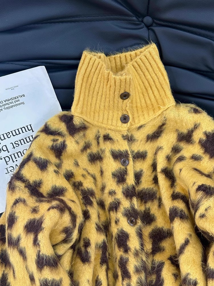 Leopard Print Turtleneck Sweater Female Knitting Cardigan Women's Clothes 2025 Spring Season New Fashionable Classy Western Style Top Outwear