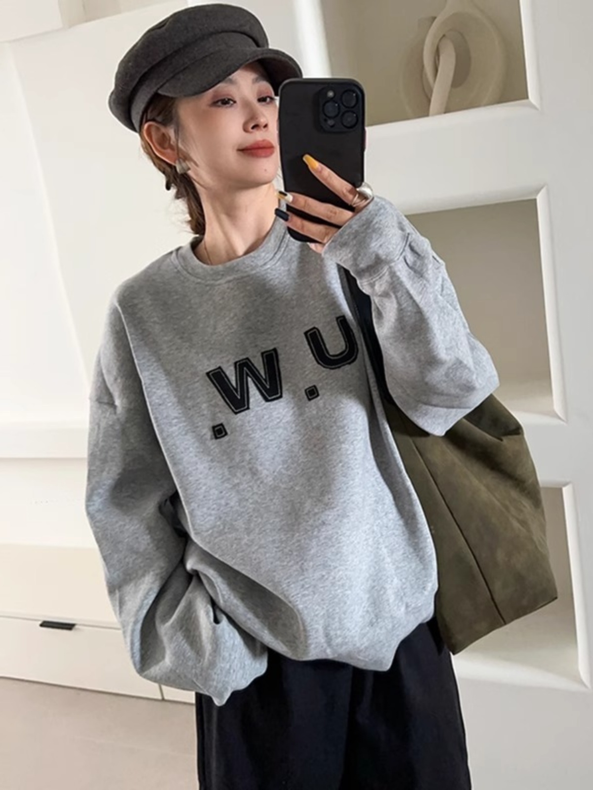 Letter Print Crew Neck Casual Sweatshirt Women's European Station 2025 Autumn Clothing New Arrival European Products Women's Clothes Design Blouse Tide