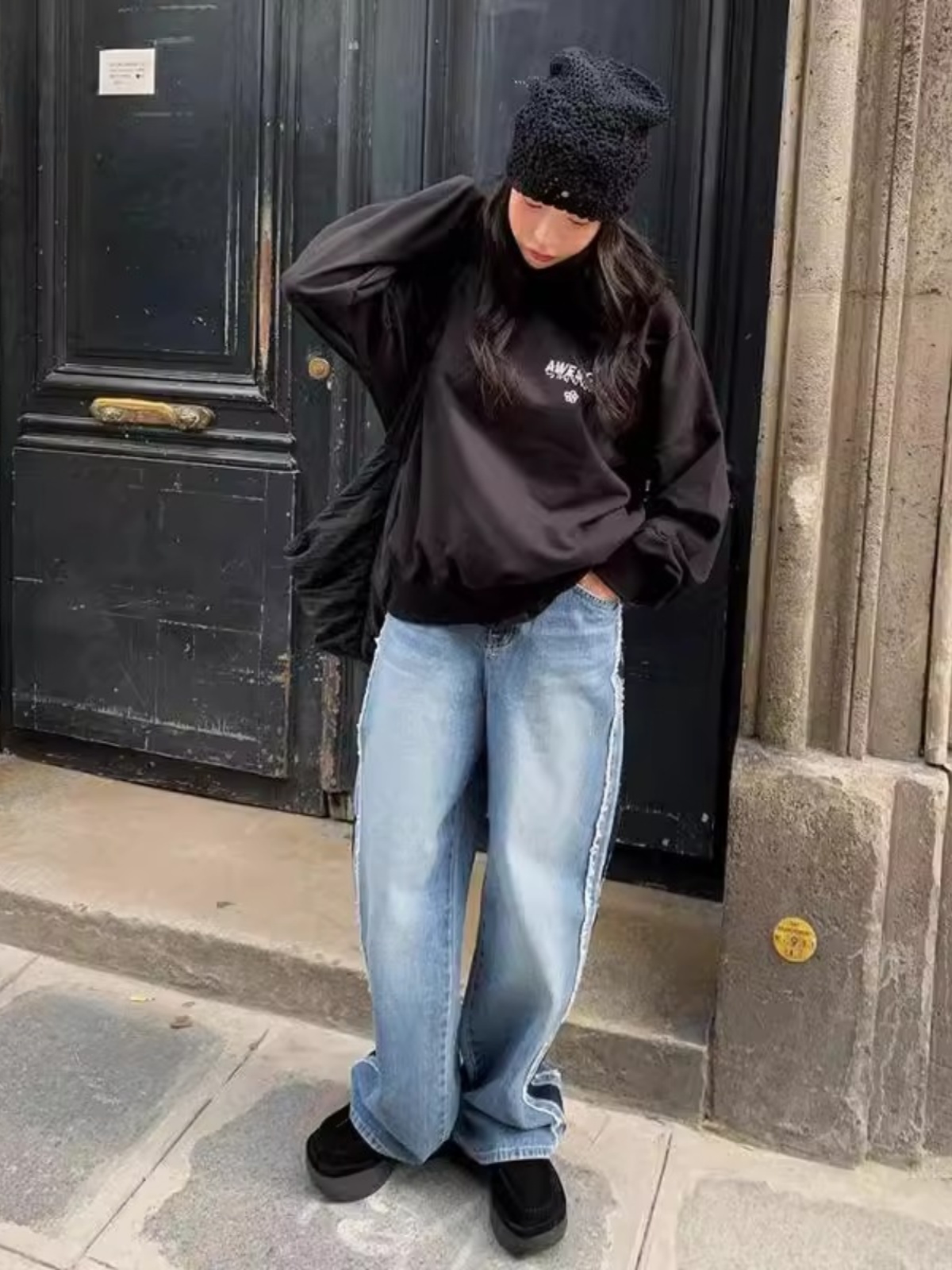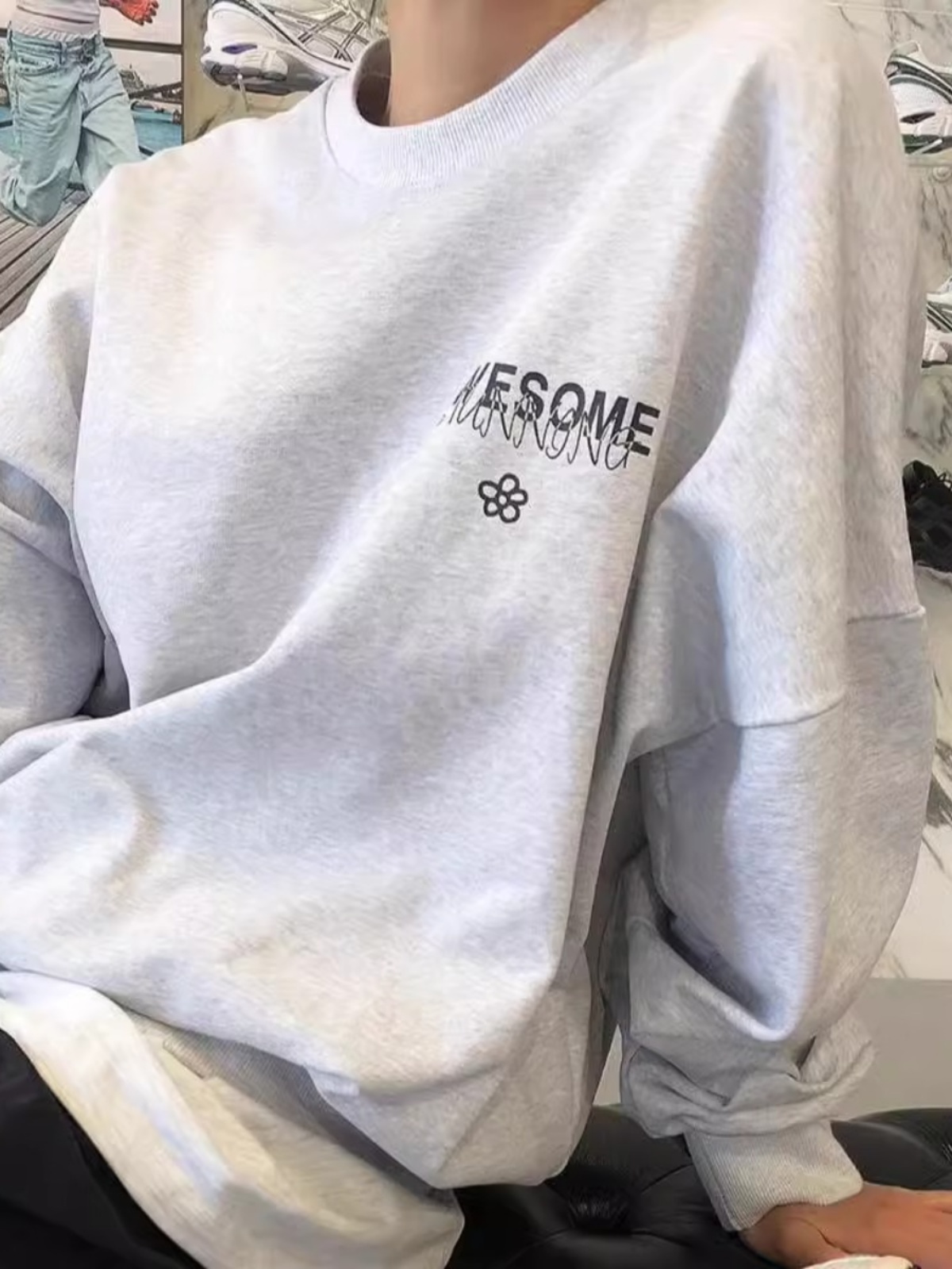 Letter Print Fleece-Lined Crew Neck Sweater Female Autumn 2025 New Arrival Casual Loose Slimming and All-Matching Lazy Style Top