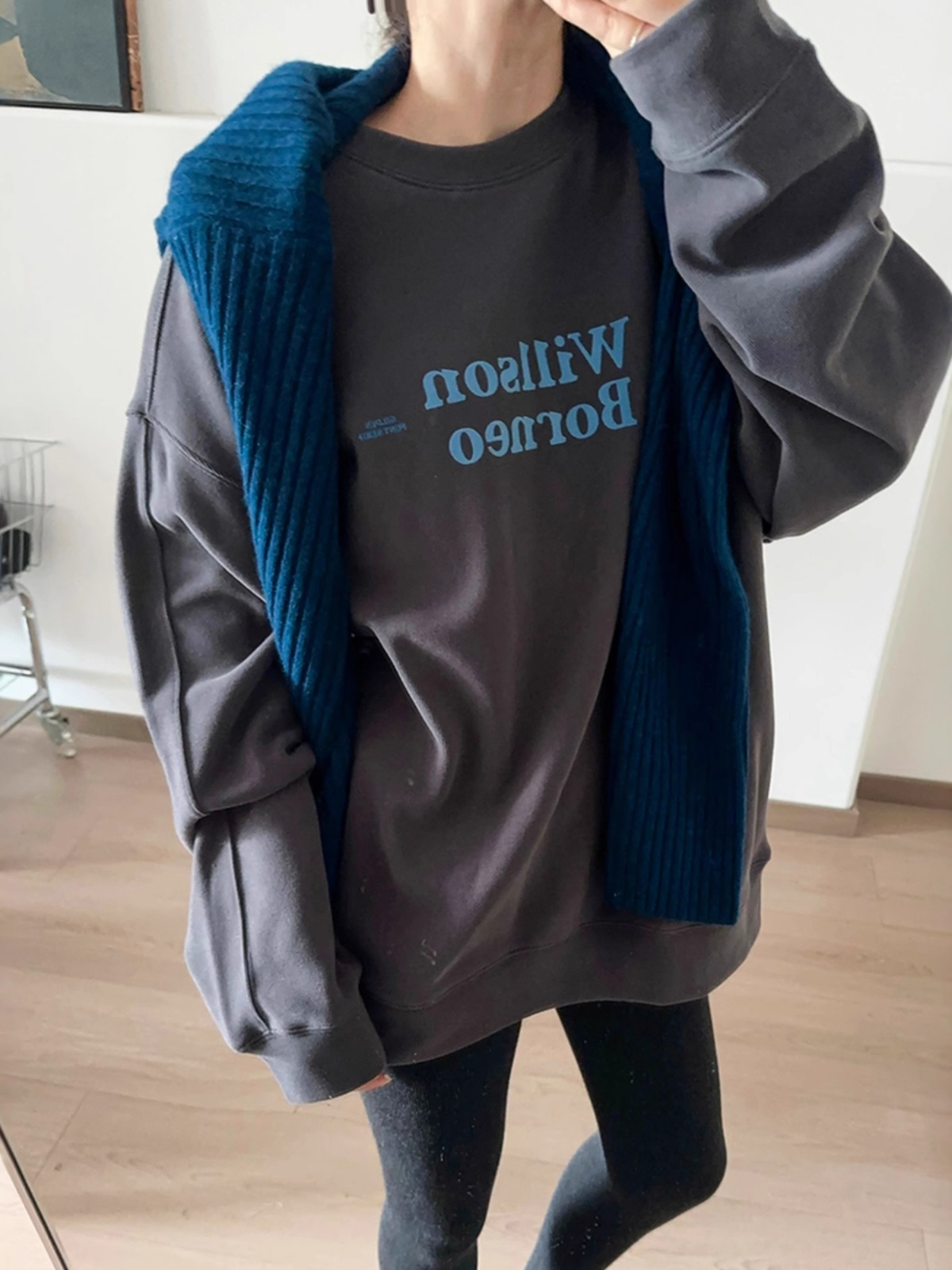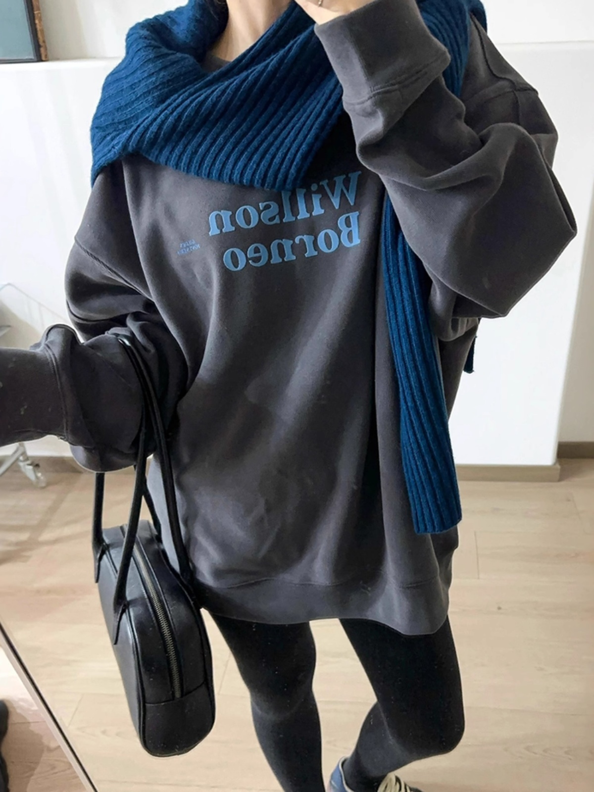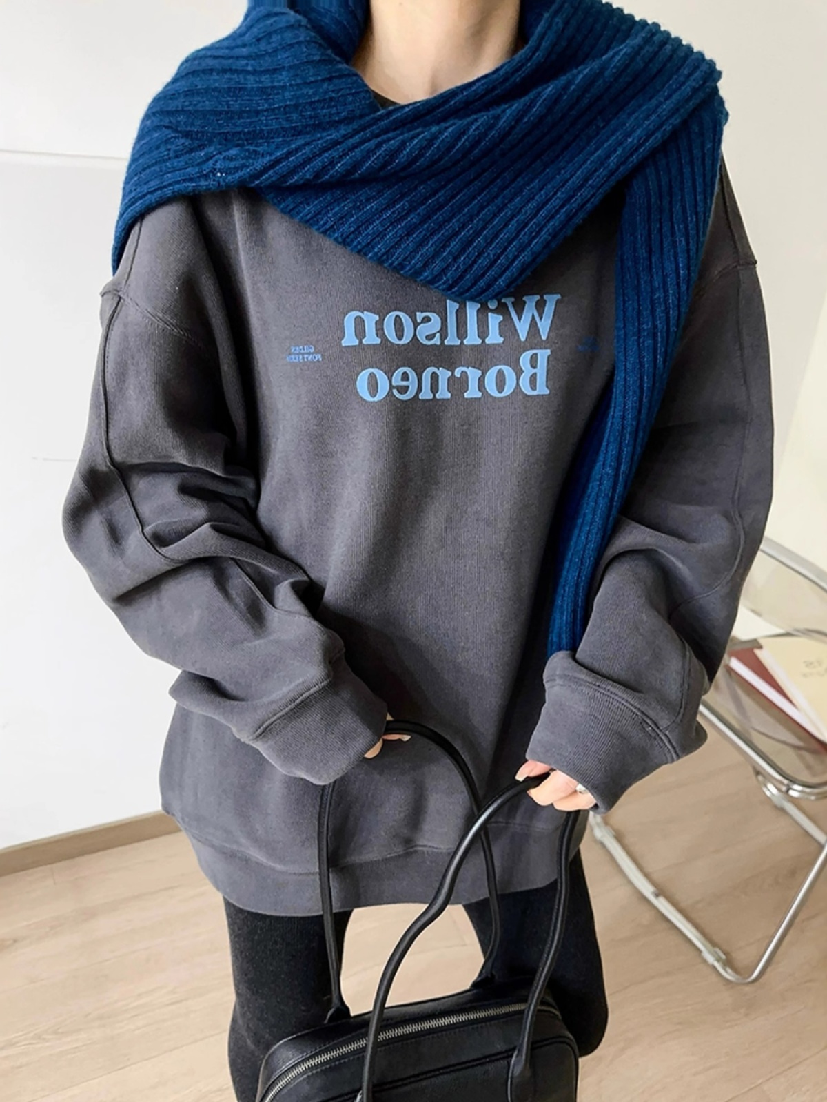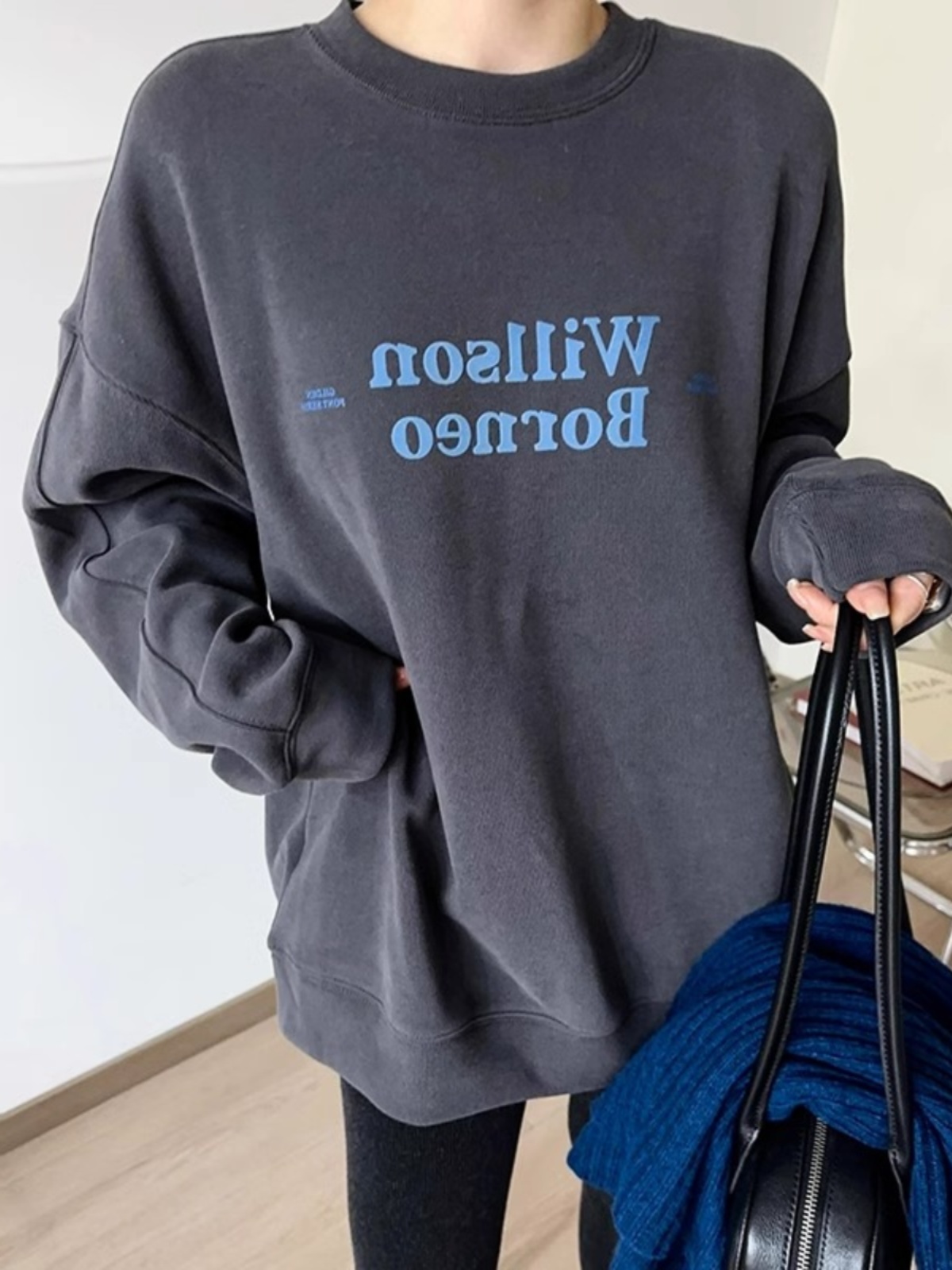 Letter Print round Neck Fleece-Lined Sweater Women's European Station Spring Clothes 2025 New Arrival European Products Women's Clothes Thickened Bottoming Shirt Fashion
