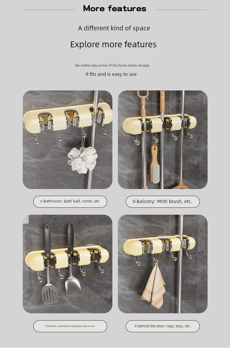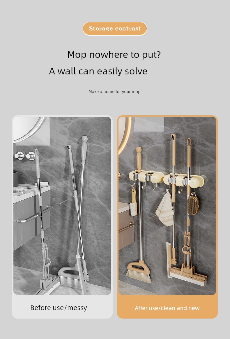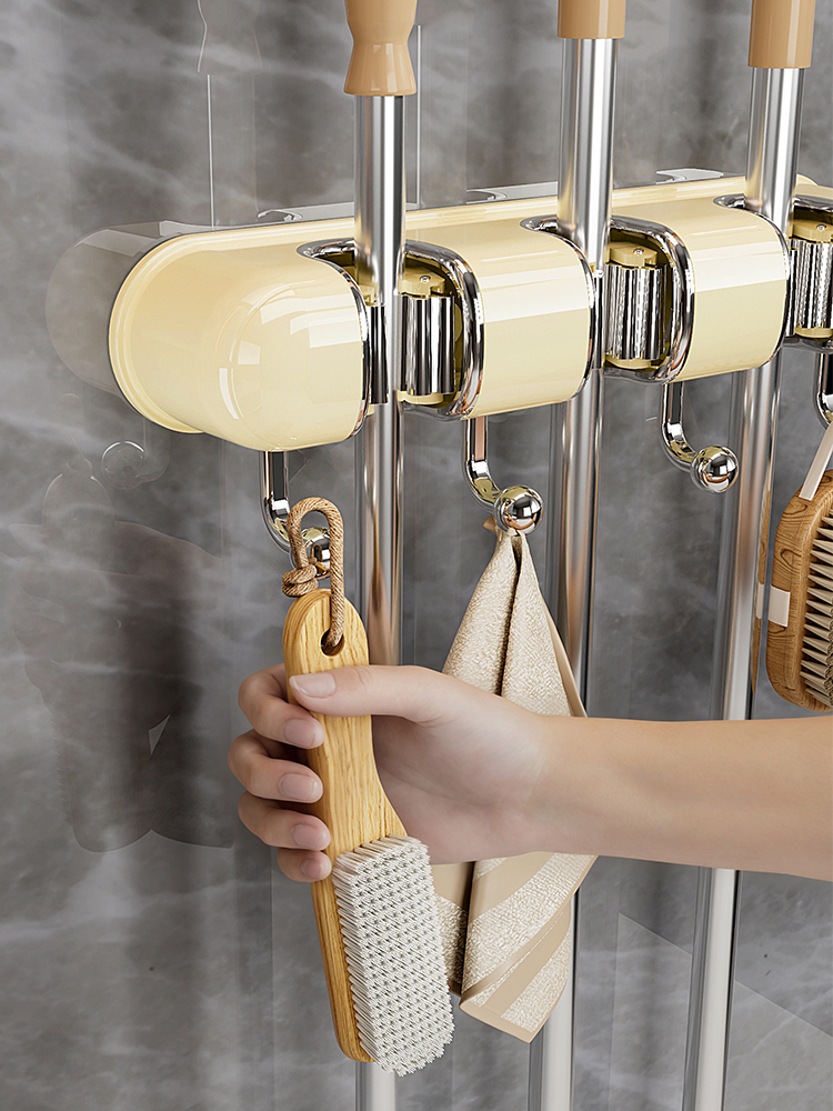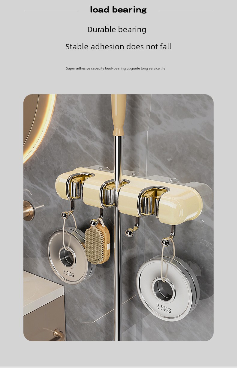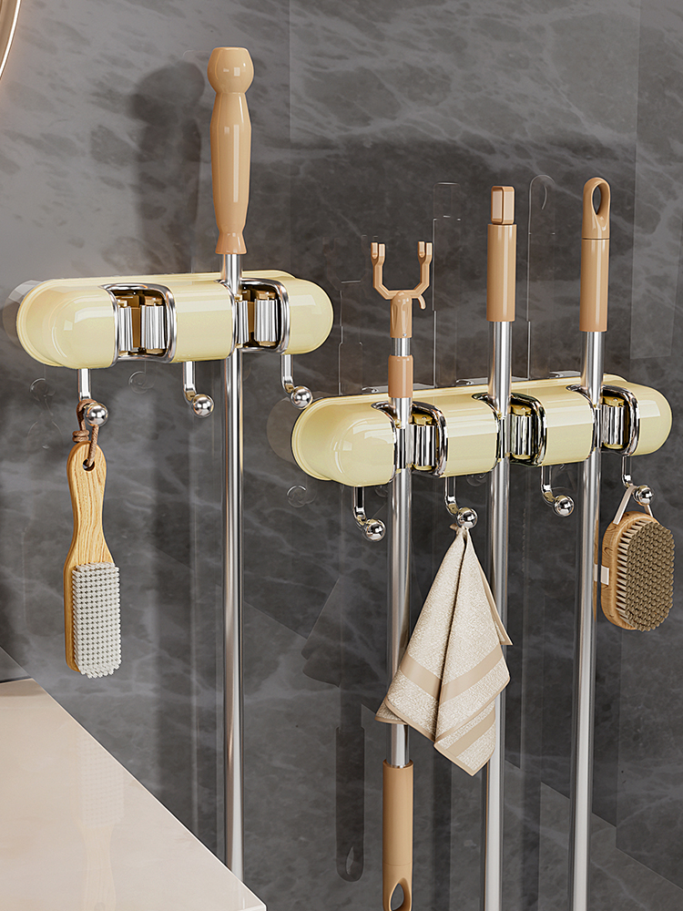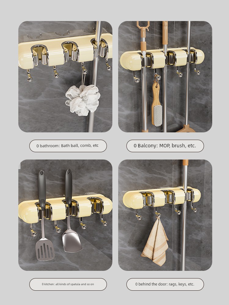Light Luxury Joint Mop Rack Wall Hanging Artifact Bathroom Punch-free Bathroom Strong Long Hook Storage Rack