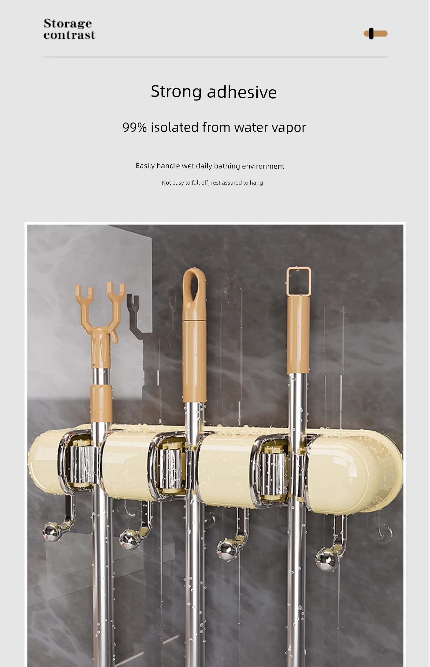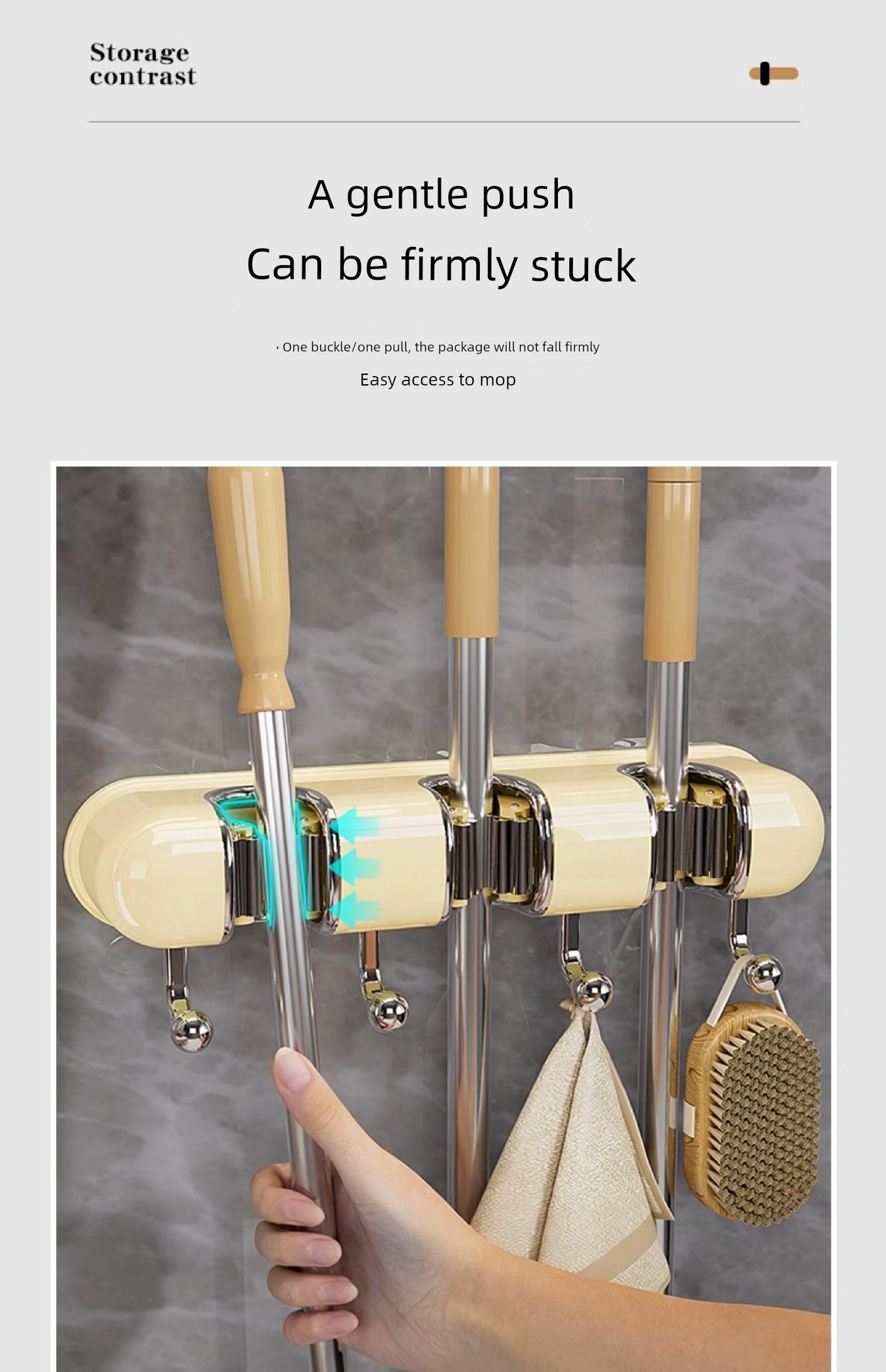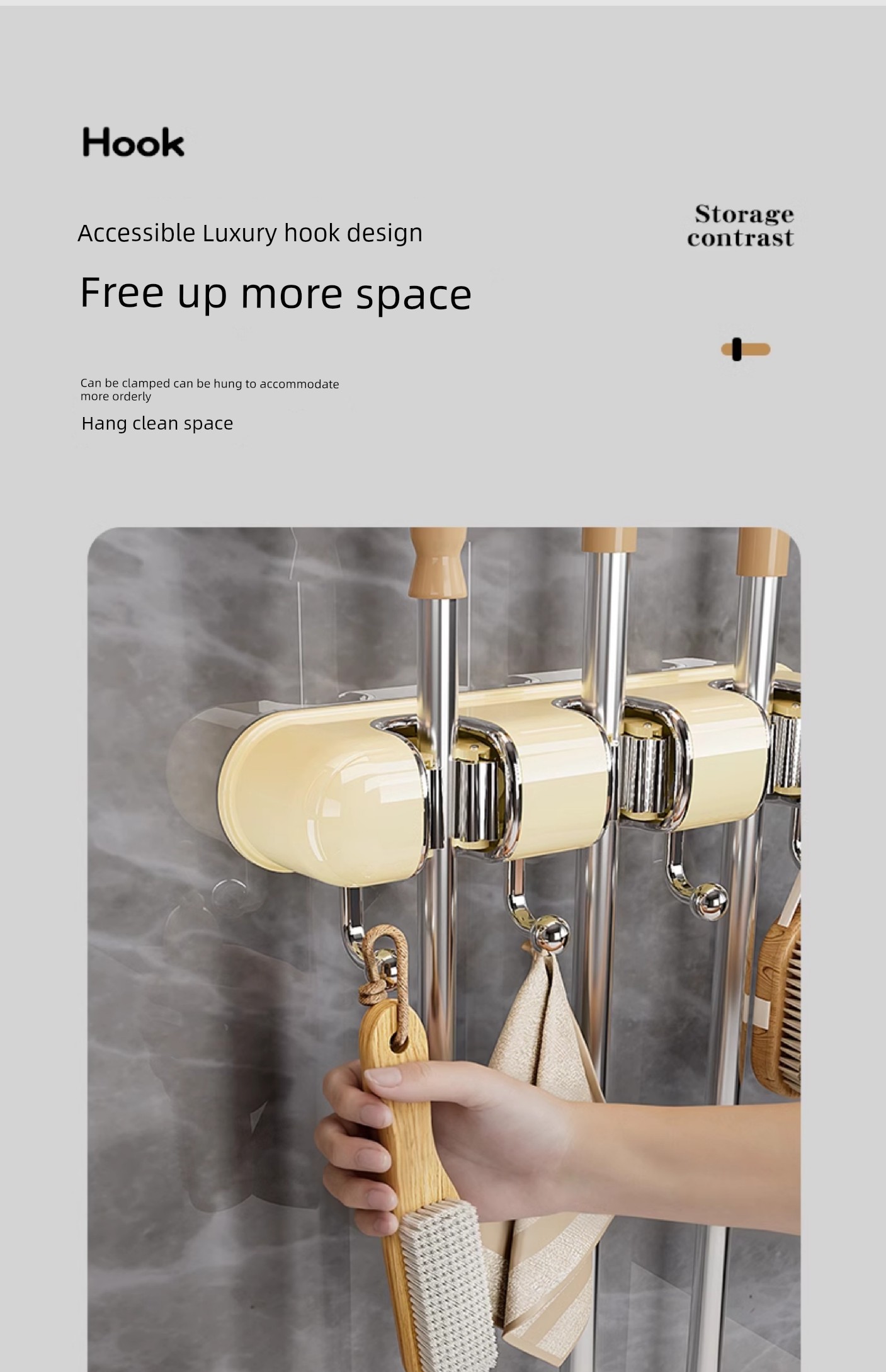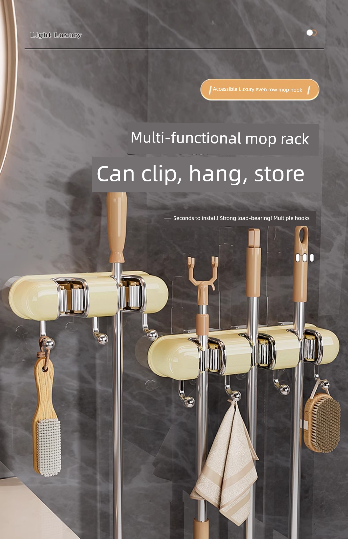 Light Luxury Joint Mop Rack Wall Hanging Artifact Bathroom Punch-free Bathroom Strong Long Hook Storage Rack