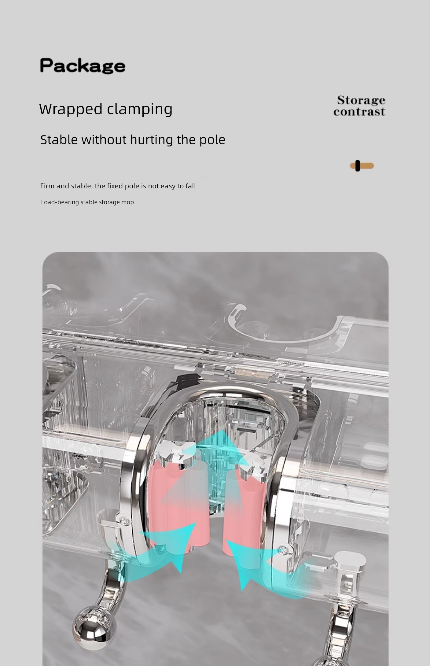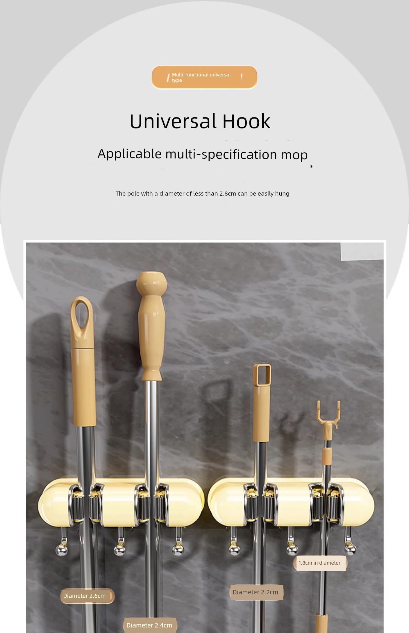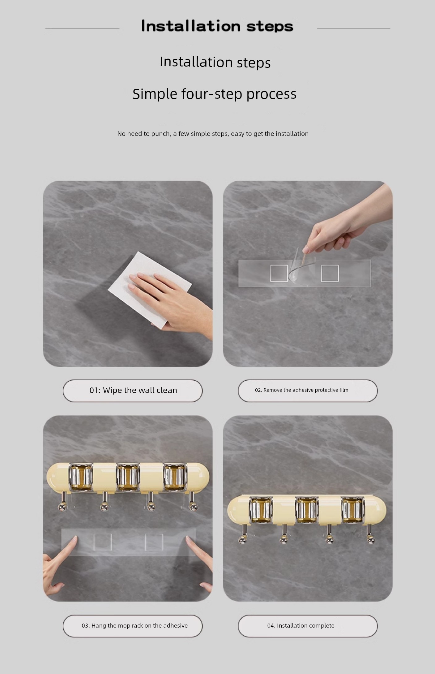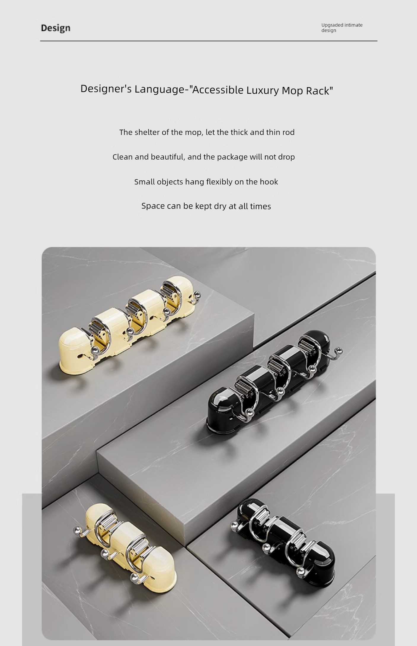 Light Luxury Joint Mop Rack Wall Hanging Artifact Bathroom Punch-free Bathroom Strong Long Hook Storage Rack