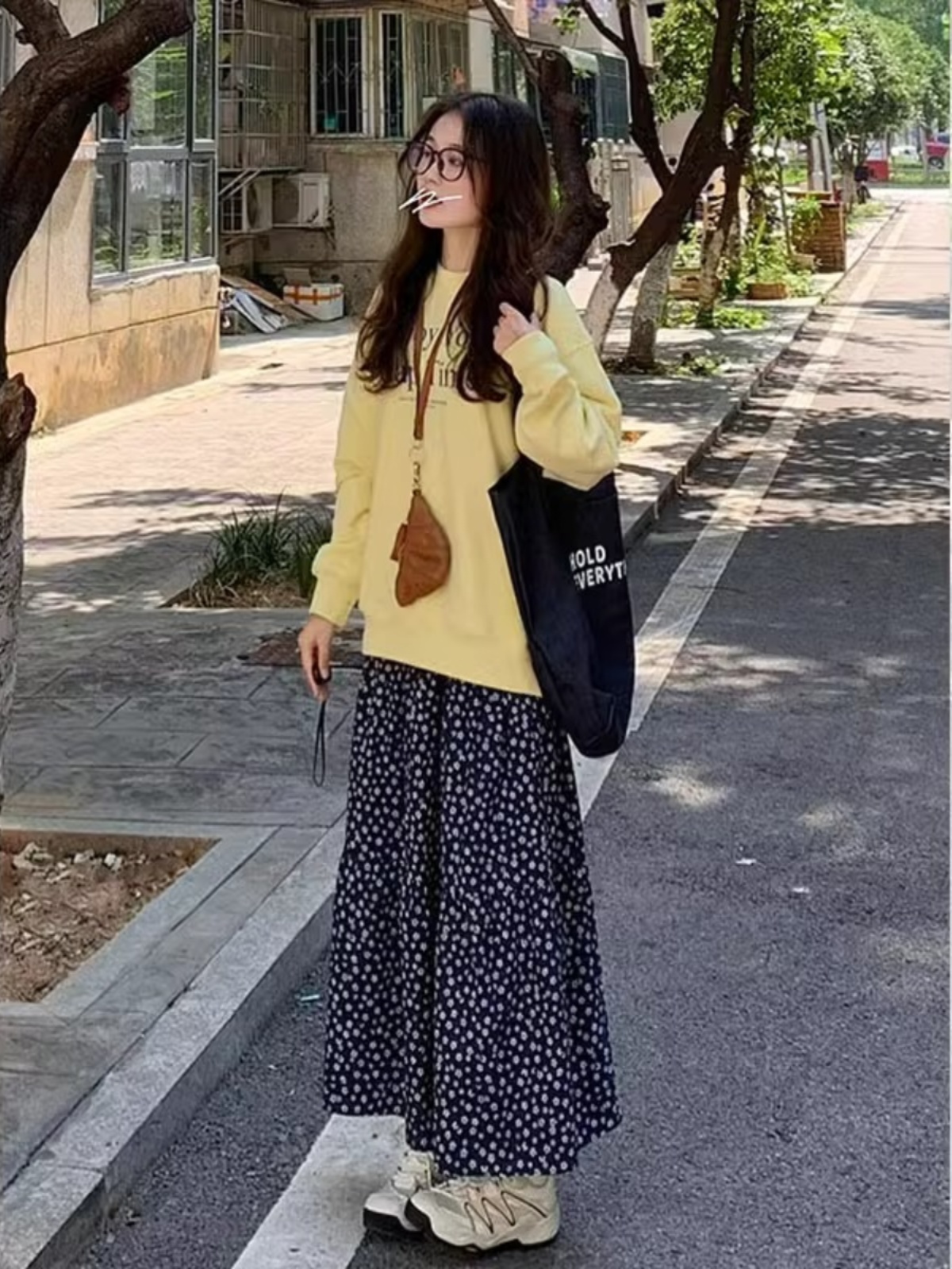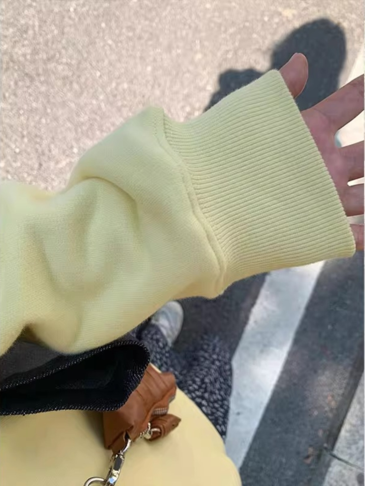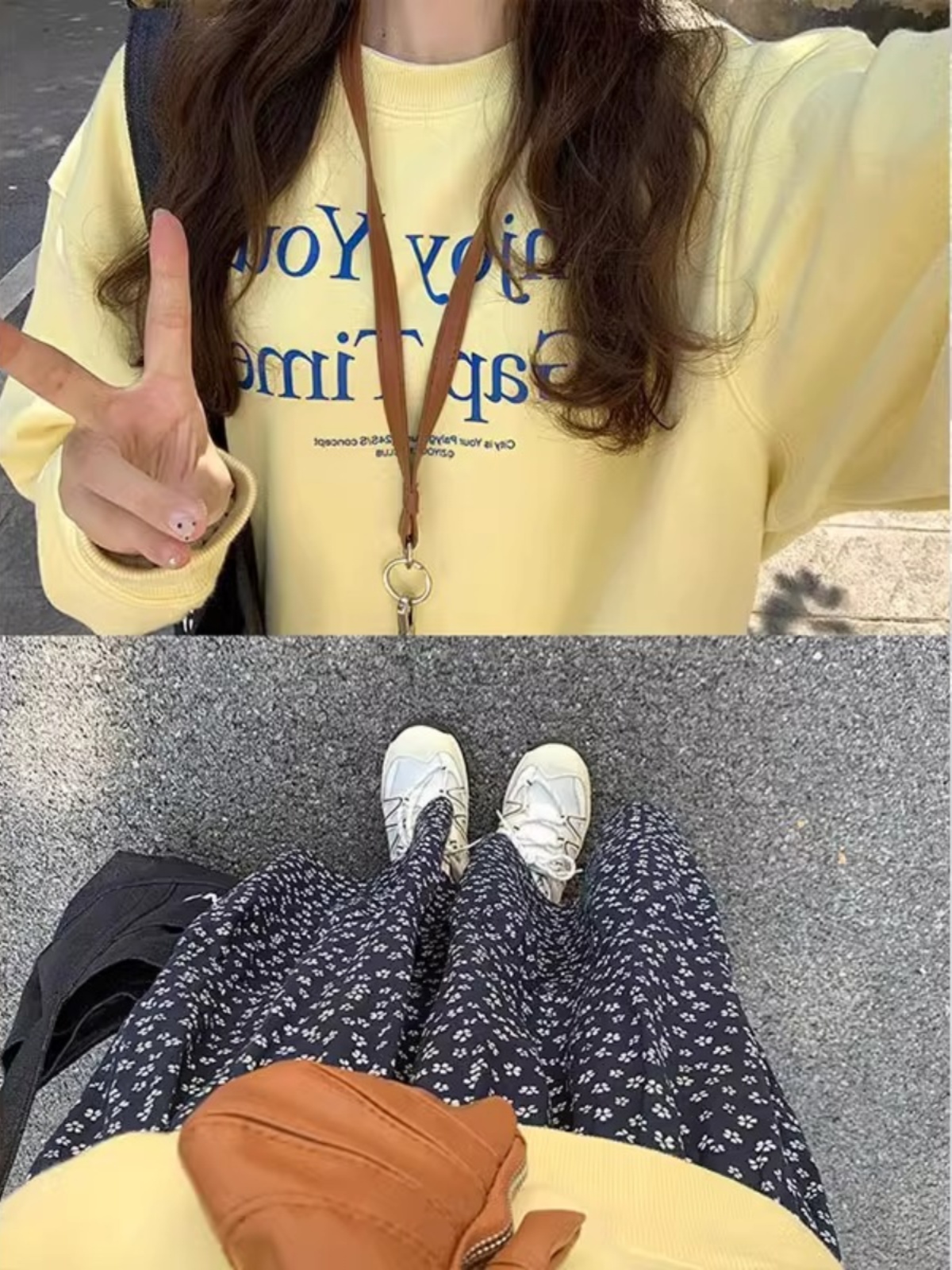 Light Yellow Letters Print Idle Style Korean Style Sweatshirt Women's Spring and Autumn Super Nice Small Shoulder Long Sleeves Tops